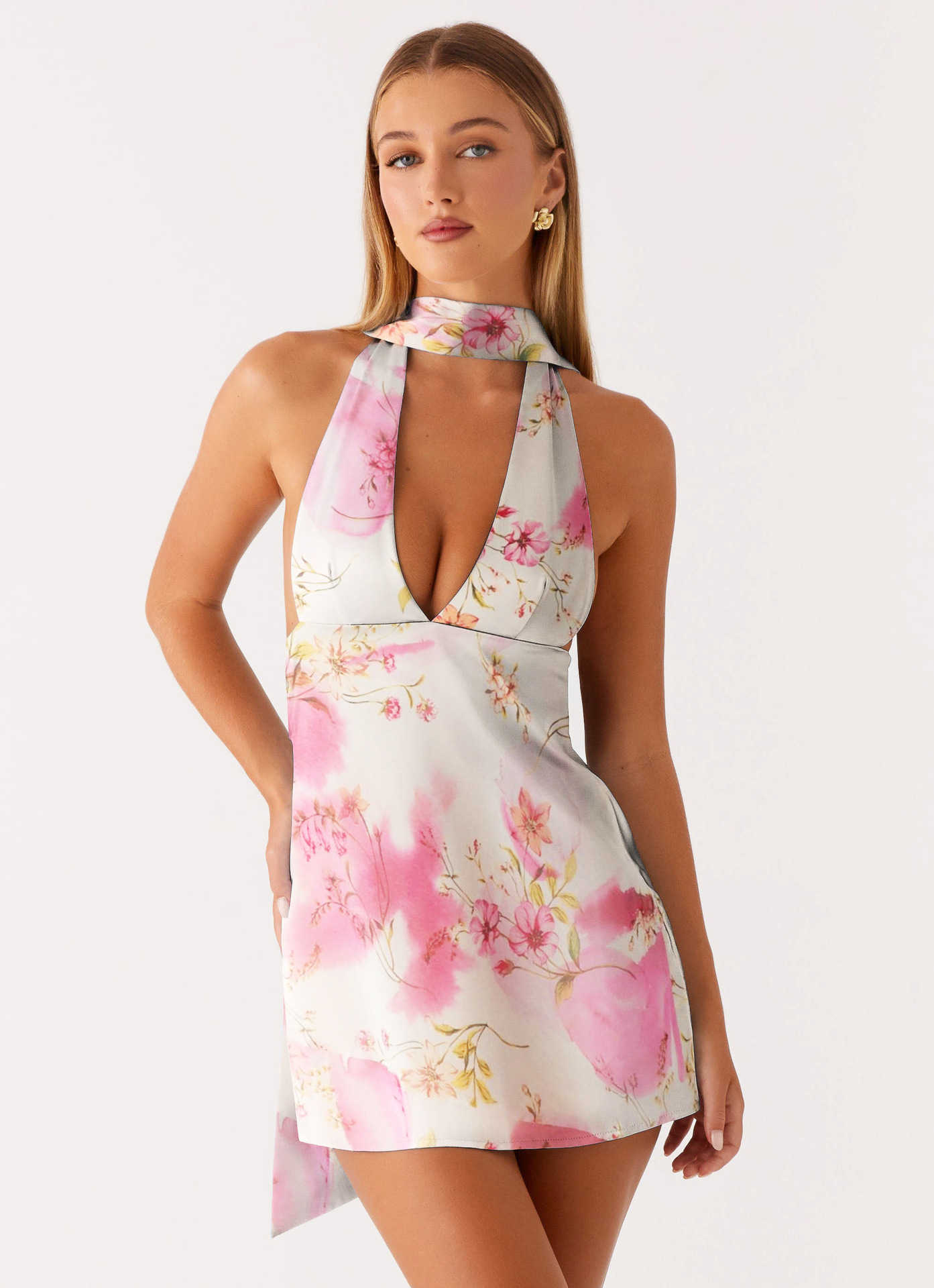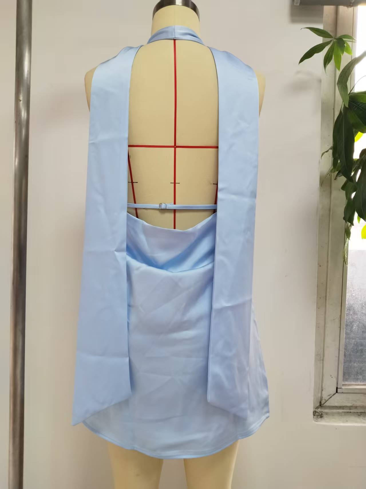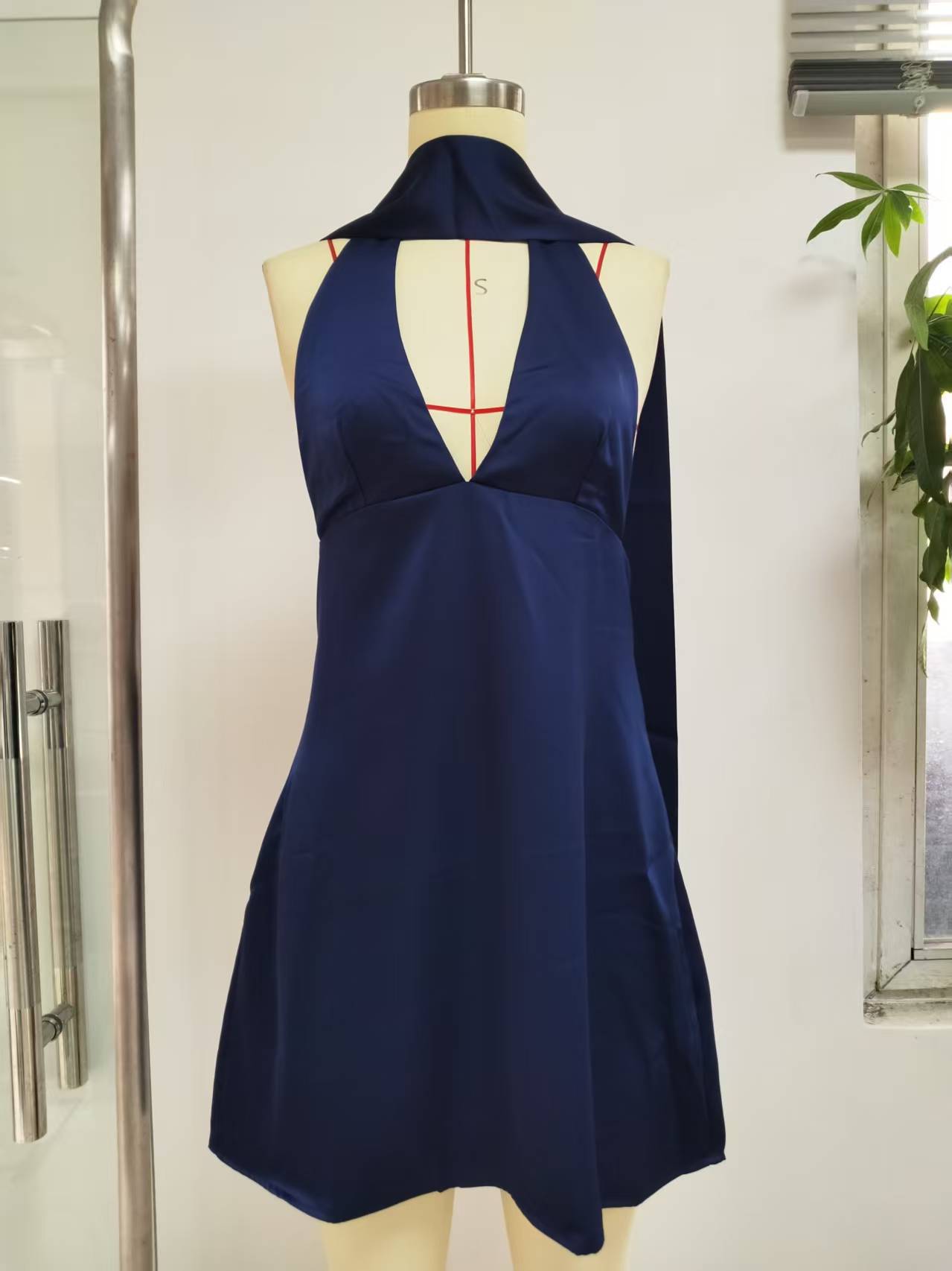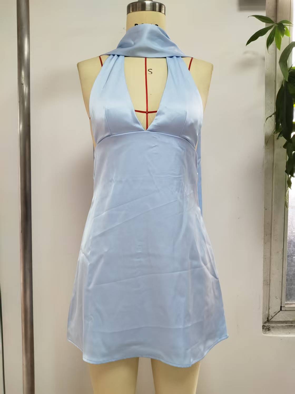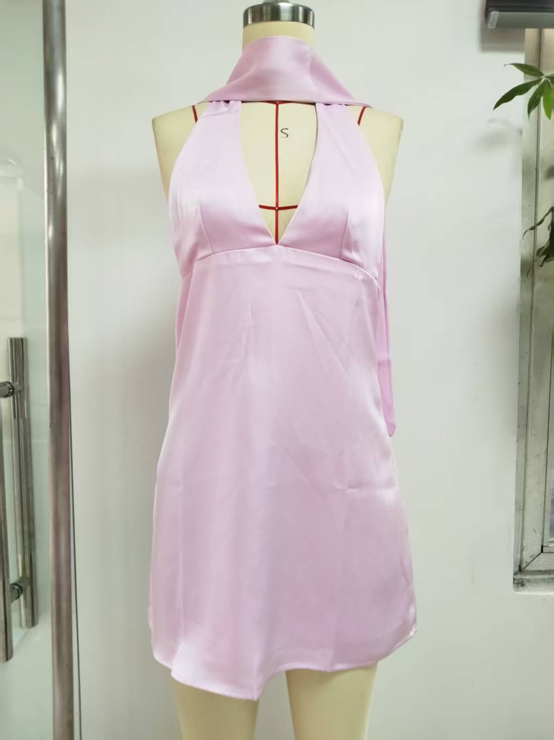 2025 섹시한 나이트 클럽 스파이스 소녀 대외 무역 여성복 유럽과 미국의 새로운 스타일 스트랩리스 대형 V 넥 백리스 미니 인쇄 원피스스토어 가기