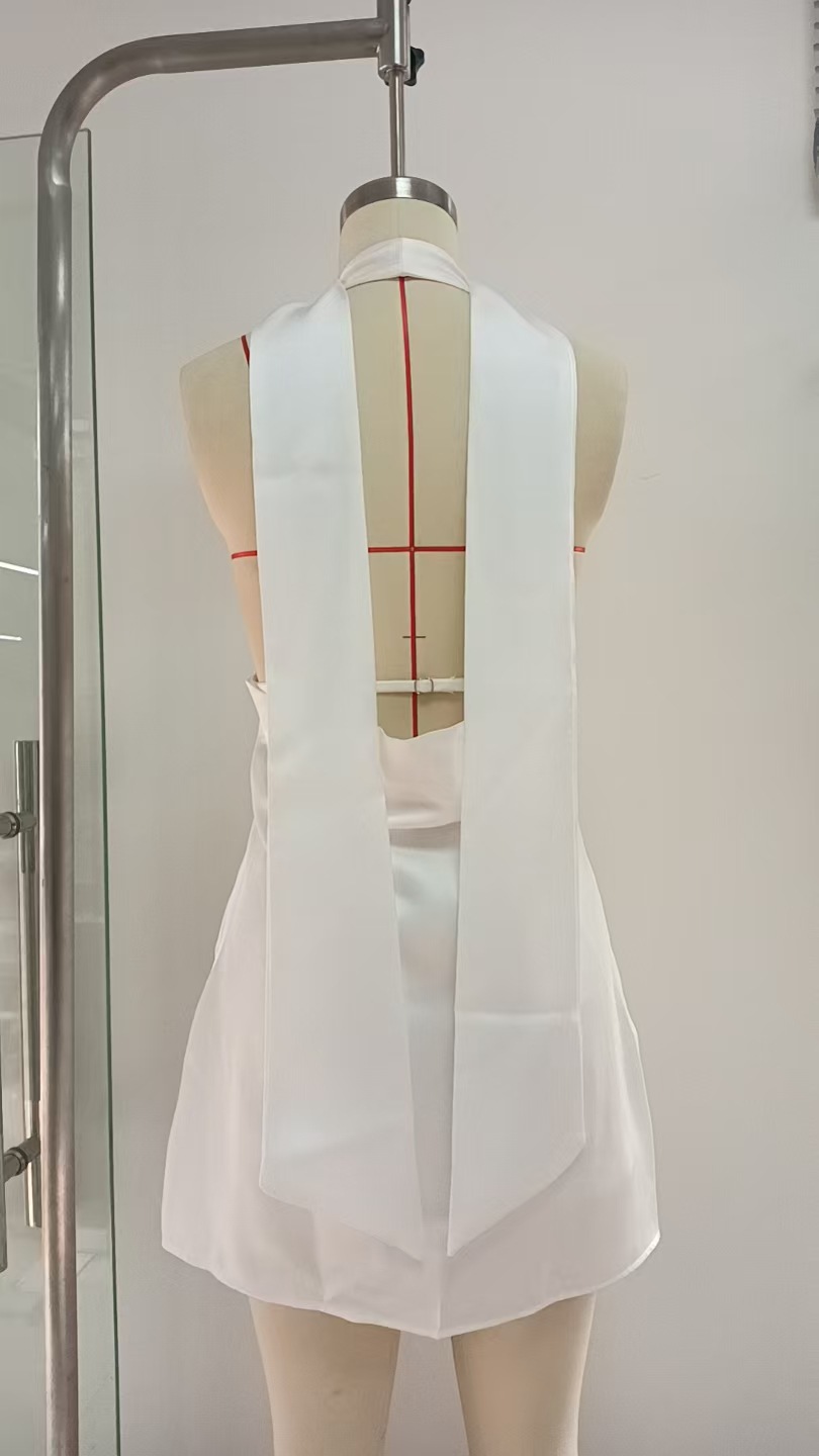 2025 섹시한 나이트 클럽 스파이스 소녀 대외 무역 여성복 유럽과 미국의 새로운 스타일 스트랩리스 대형 V 넥 백리스 미니 인쇄 원피스