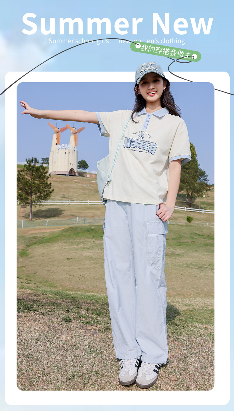 중학생 반팔 세트 여름 2025 새 여학생 느슨한 바지 티셔츠 고등학생 25337