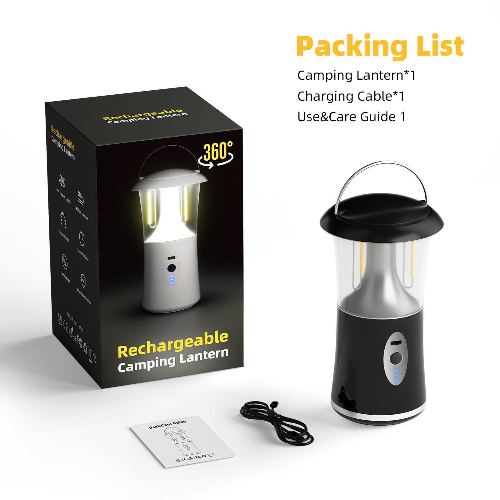 • 블랙 쉘 휴대용 캠핑 램프 [3가지 색상 + 디밍]