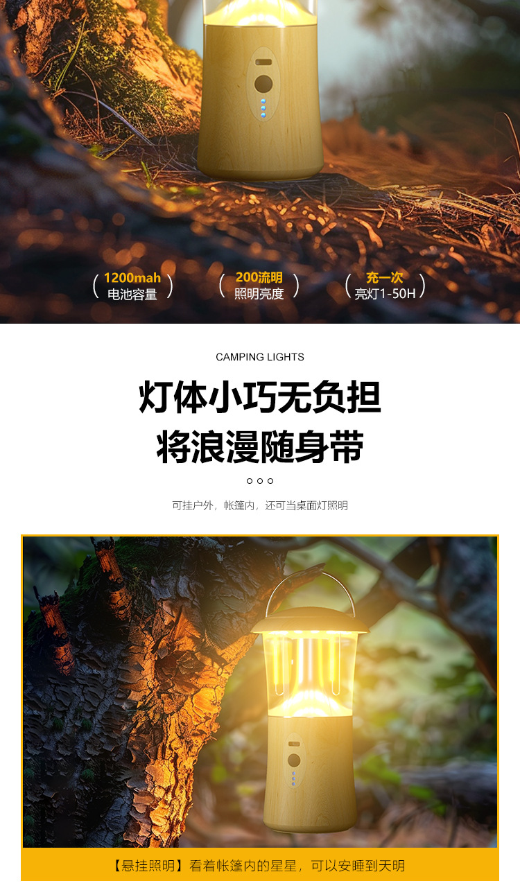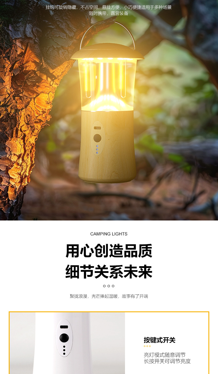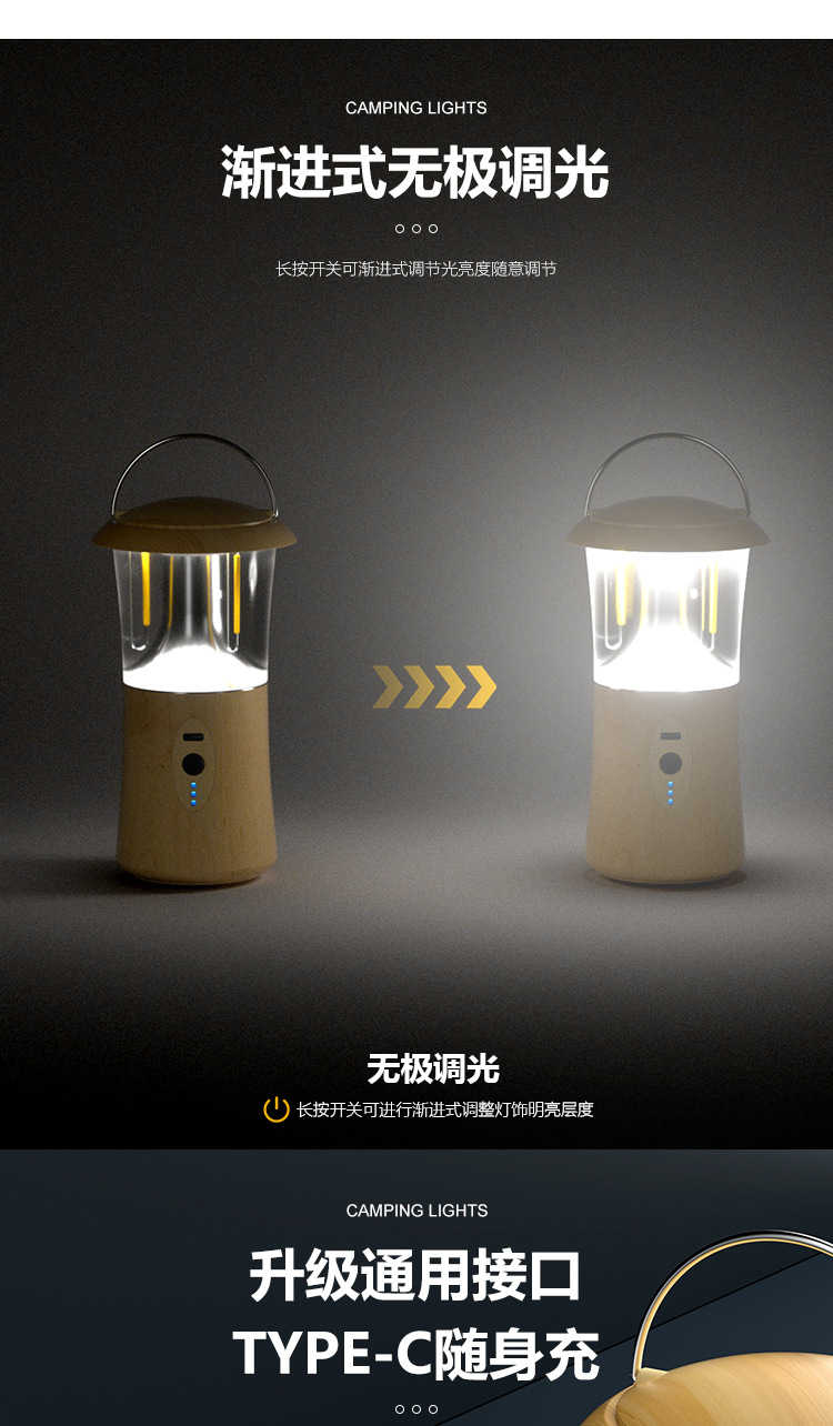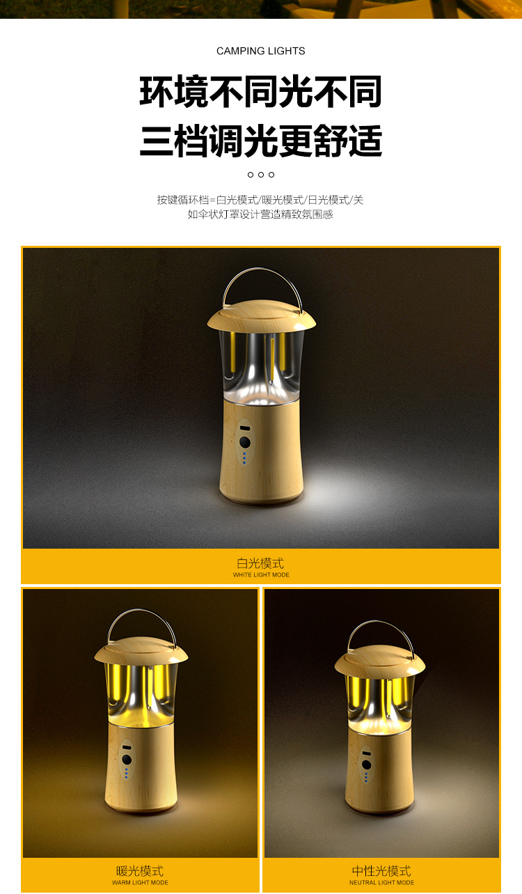• 나뭇결 휴대용 캠핑등 [3색+디밍]