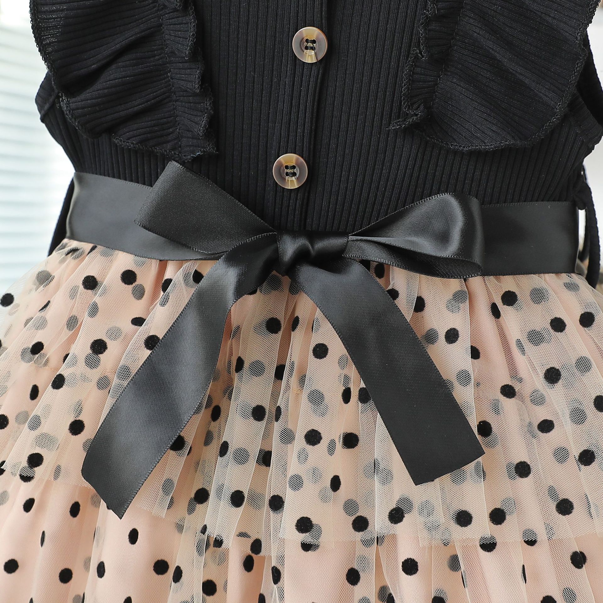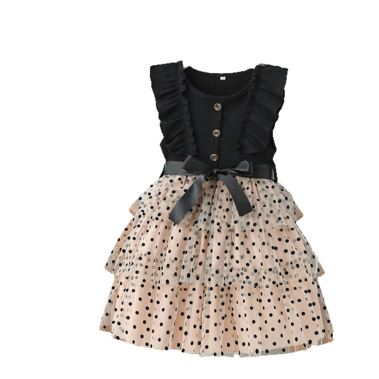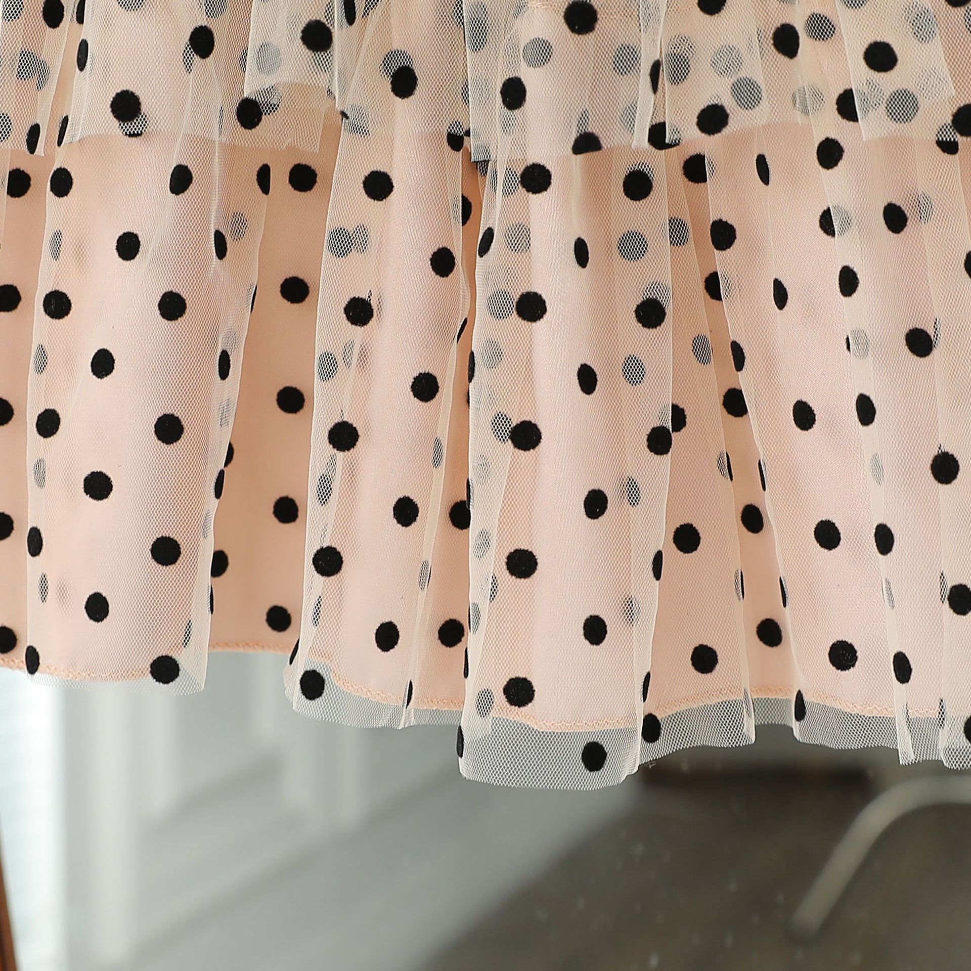 대외 무역 새로운 소녀 원피스 한국 스타일 비행 슬리브 도트 메쉬 공주 스커트 스타일 멀티 레이어 메쉬 케이크 스커트