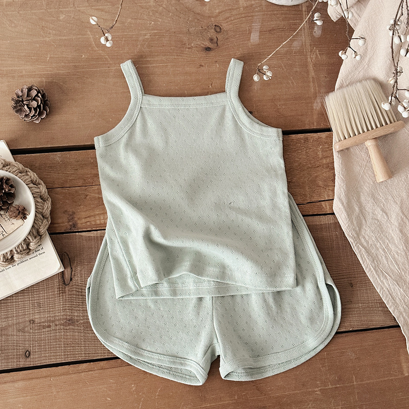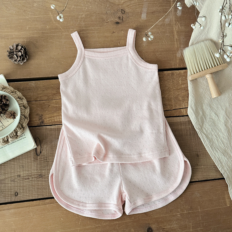 아기 잠옷 여름 순면 클래스 A 어린이 홈 의류 한국 순면 아기 슬링 세트 얇은 여자