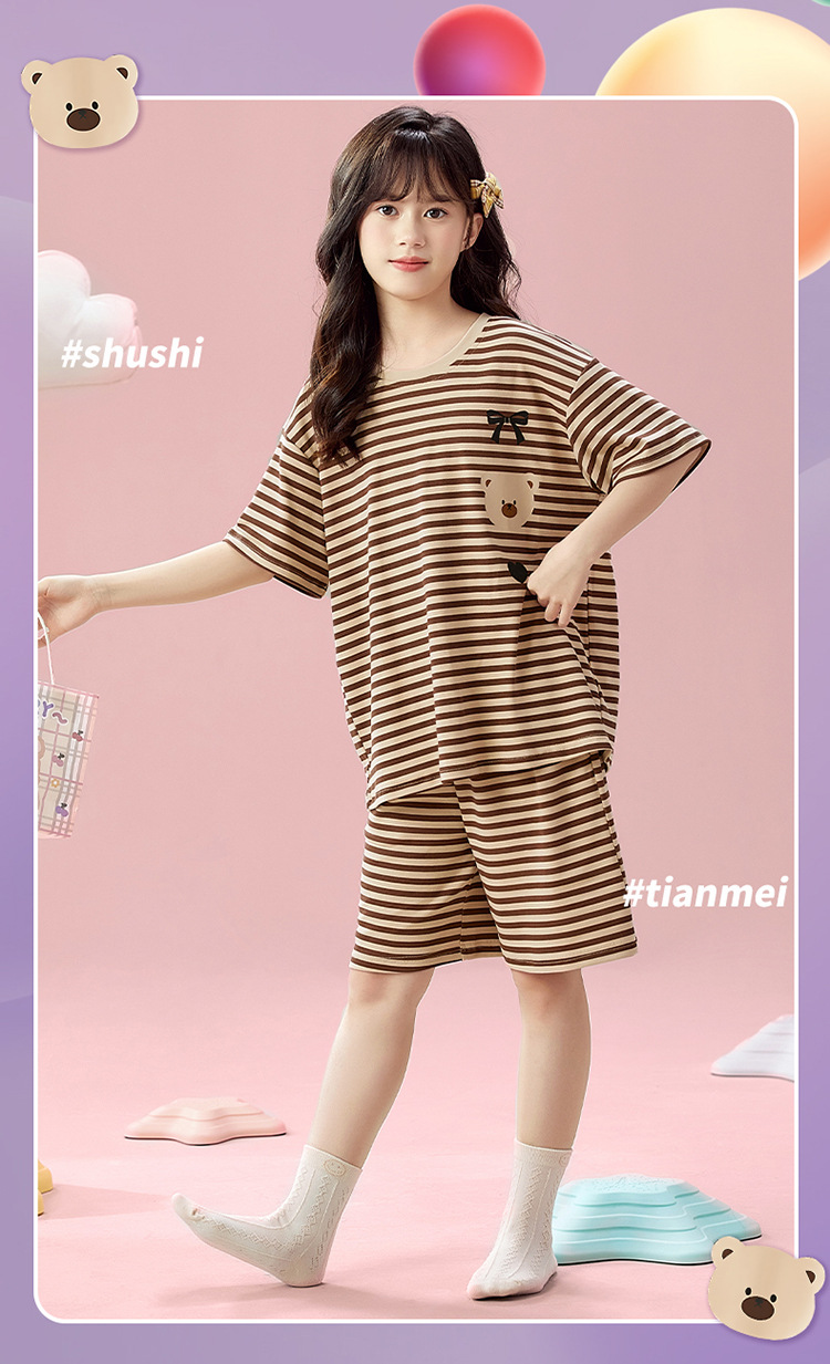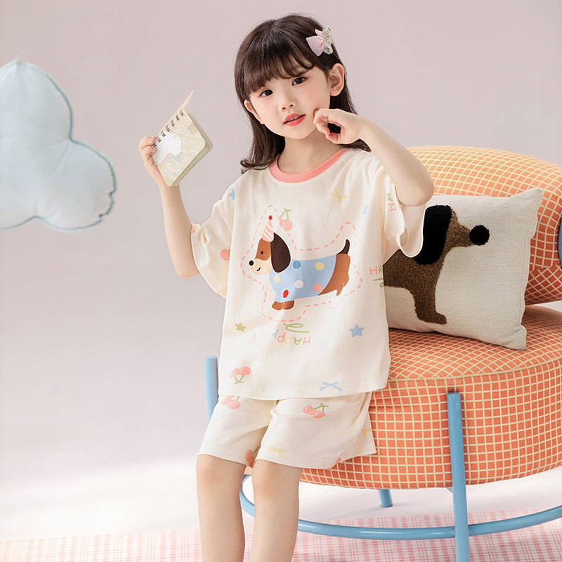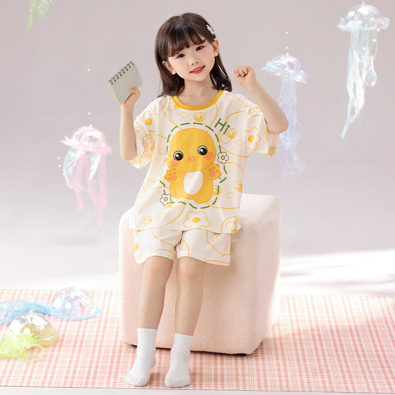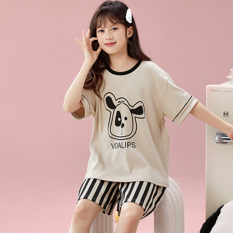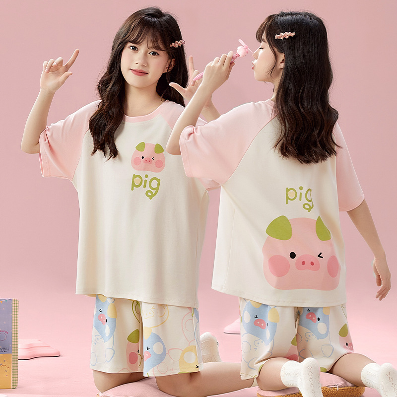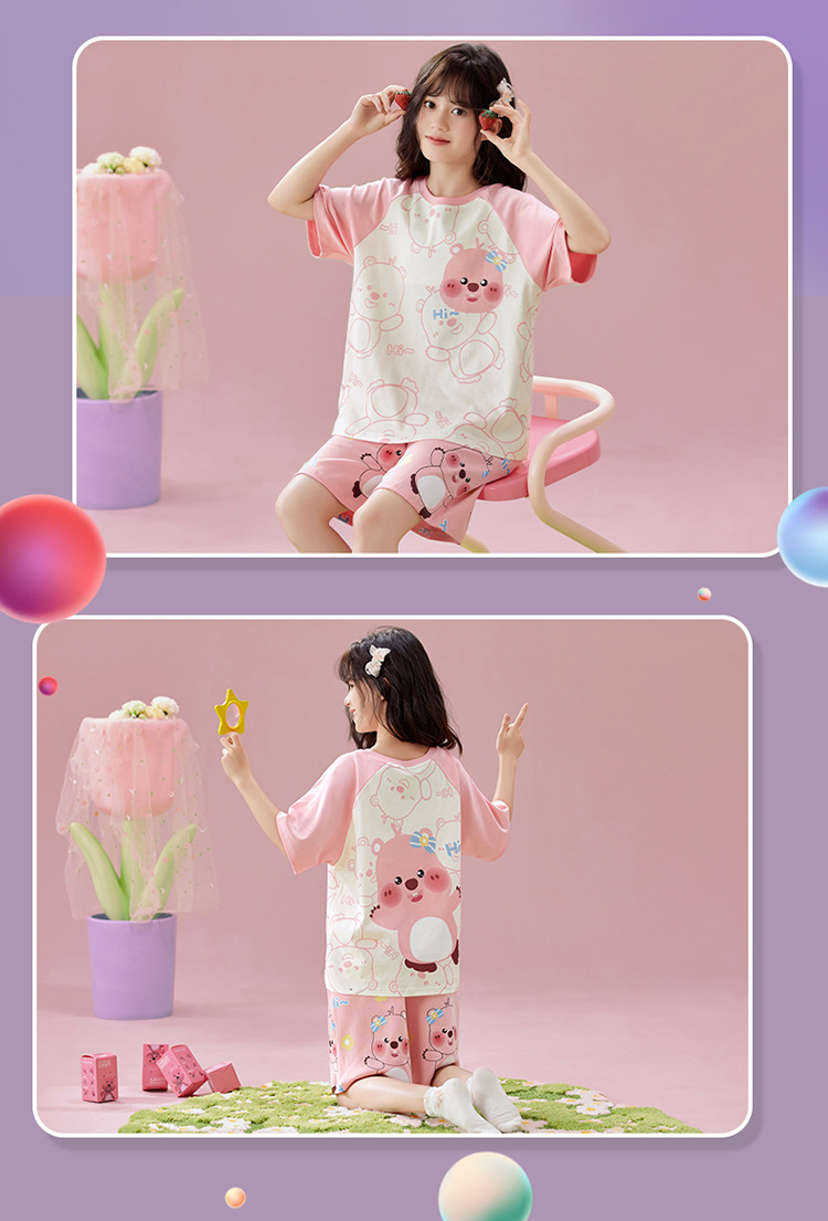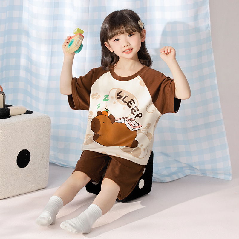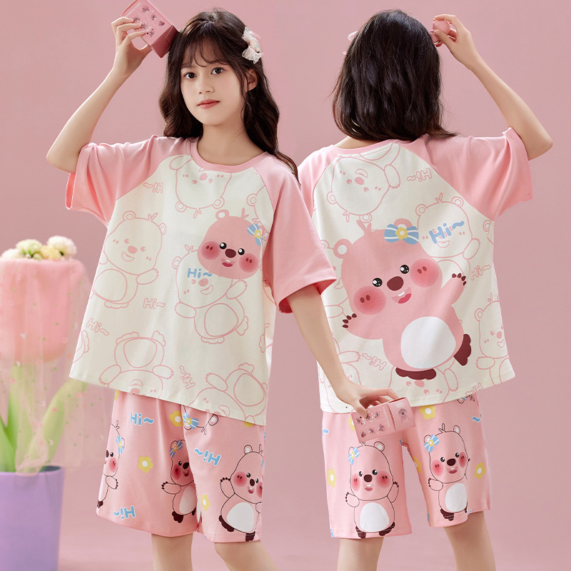 2025 새로운 어린이 잠옷 소녀 반팔 순수 코튼 여름 얇은 중대형 어린이 만화 비버 아기 가정 옷스토어 가기
