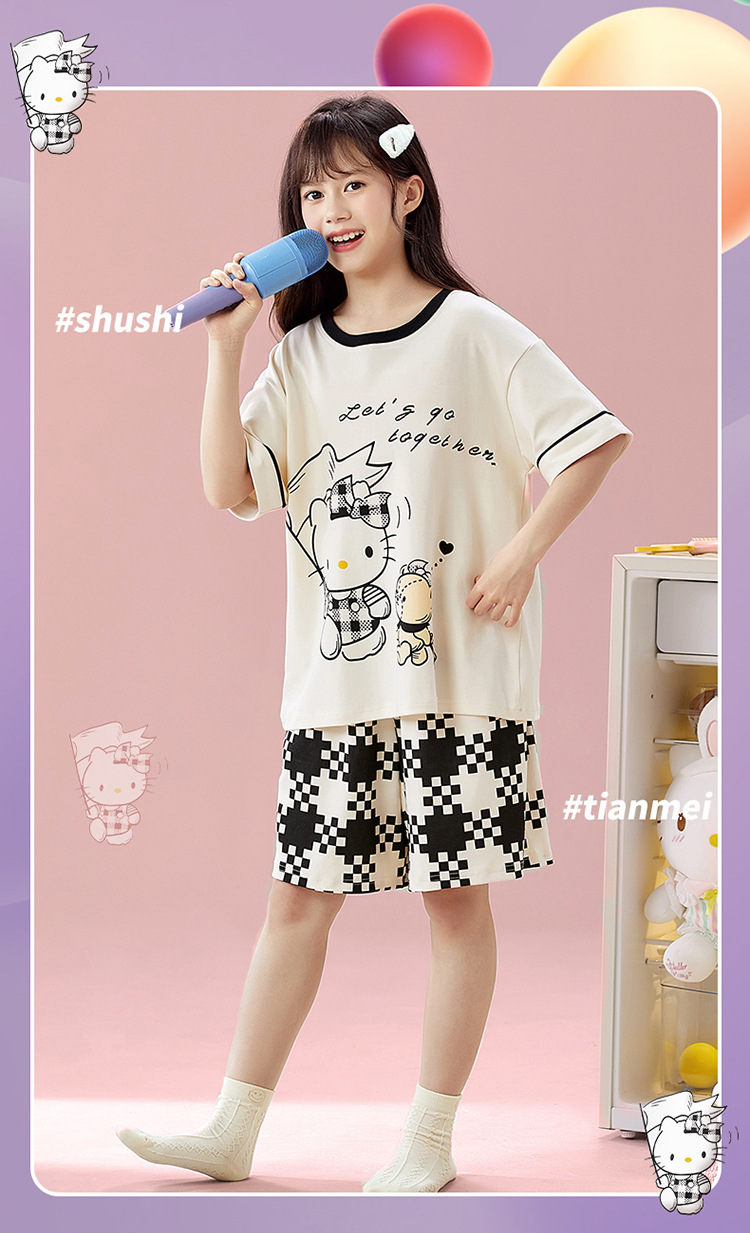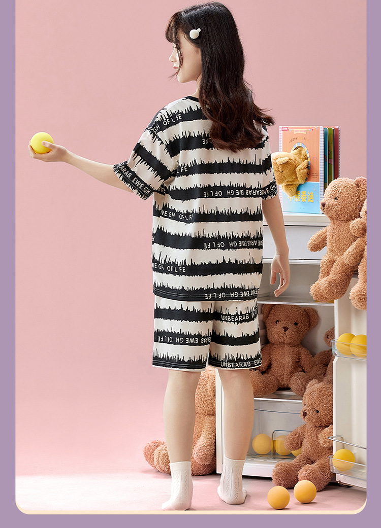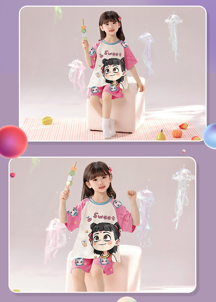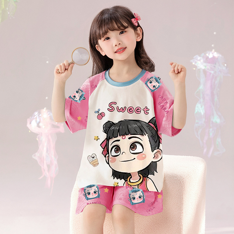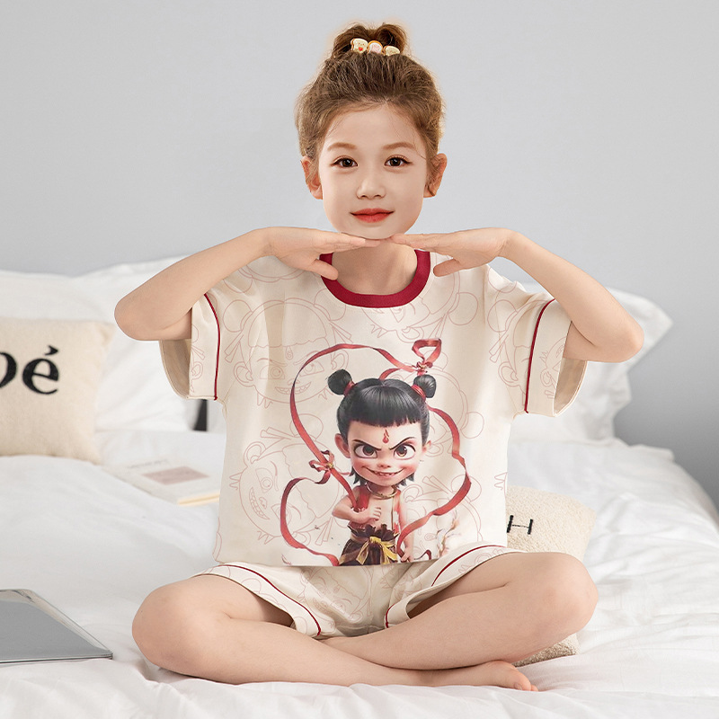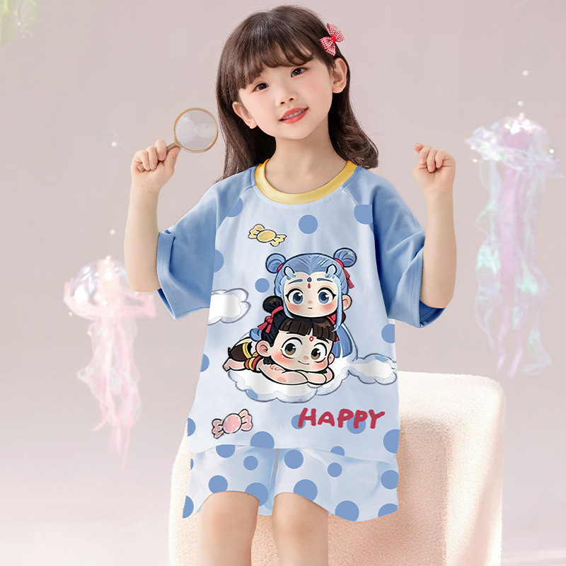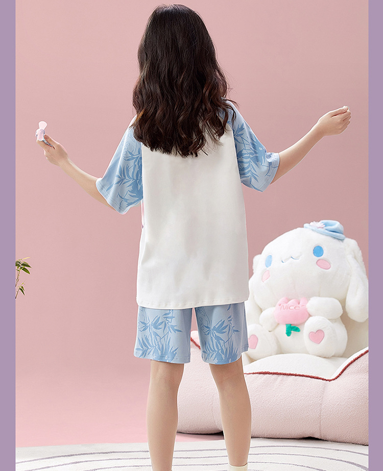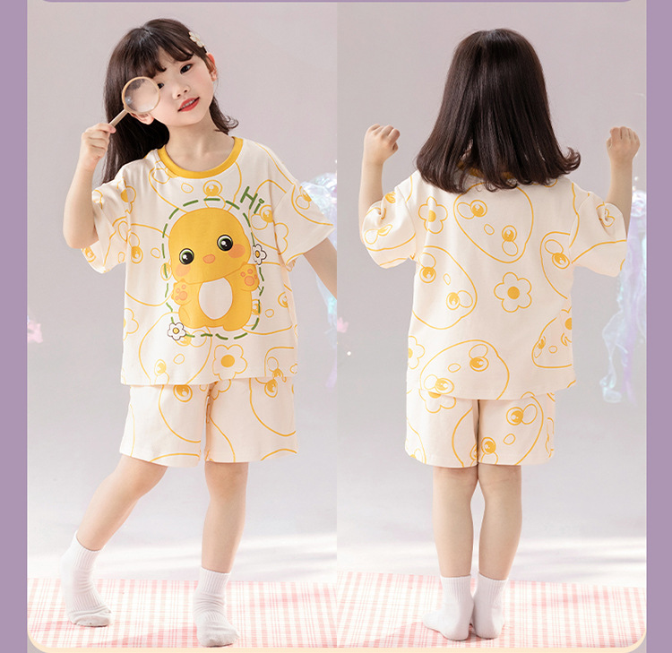2025 새로운 어린이 잠옷 소녀 반팔 순수 코튼 여름 얇은 중대형 어린이 만화 비버 아기 가정 옷스토어 가기