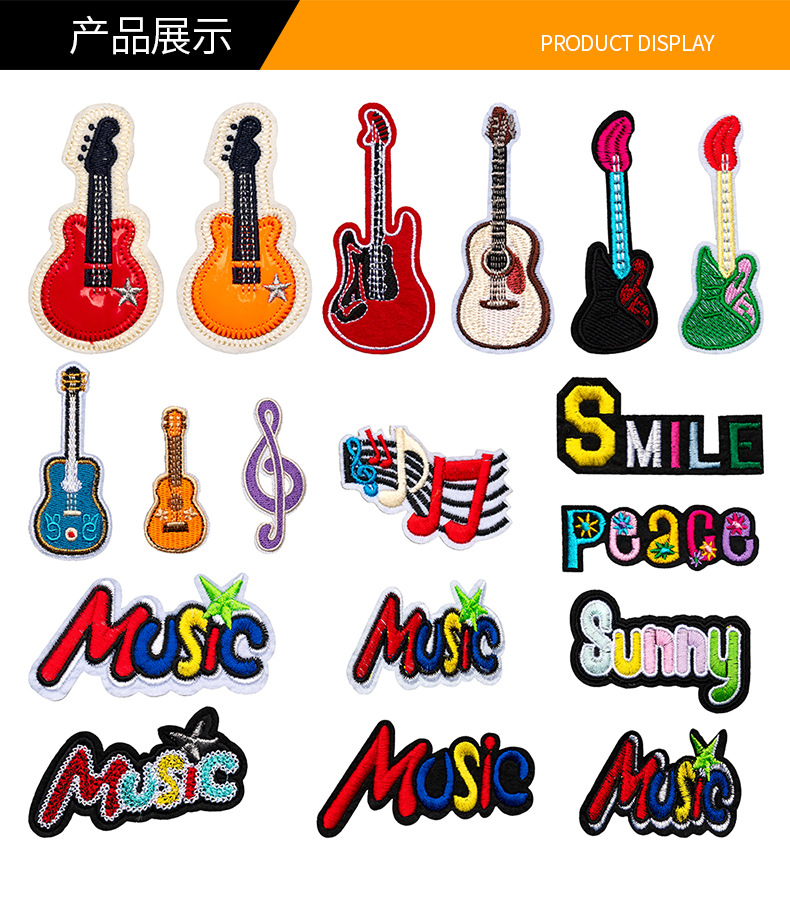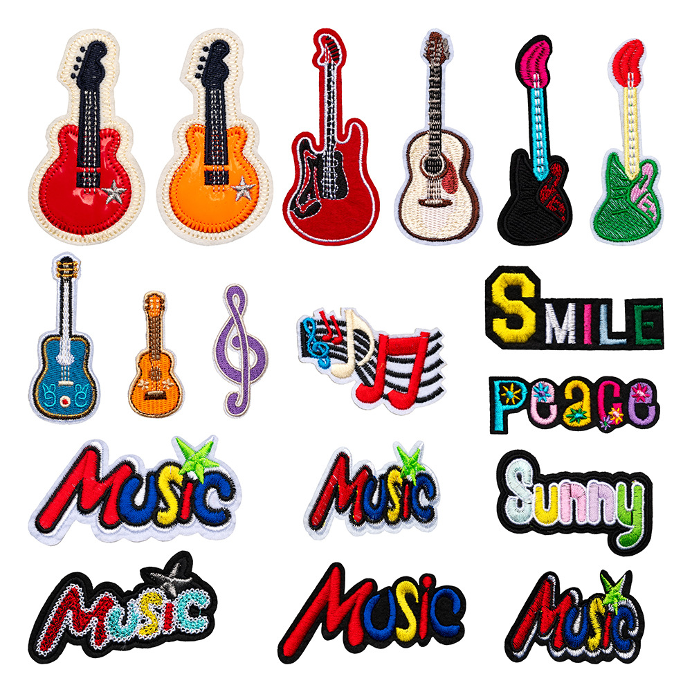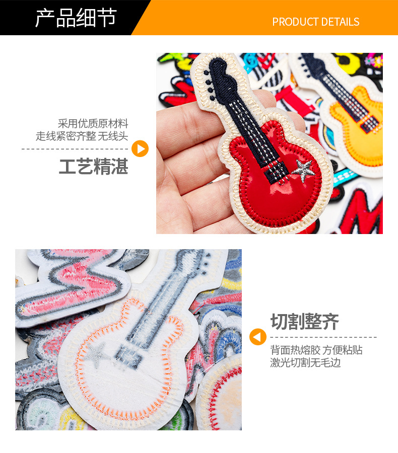 기타 음악 시리즈 컴퓨터 자수 영어 만화 자수 천 스티커 가방 옷 패치 배지 소년의 어머니