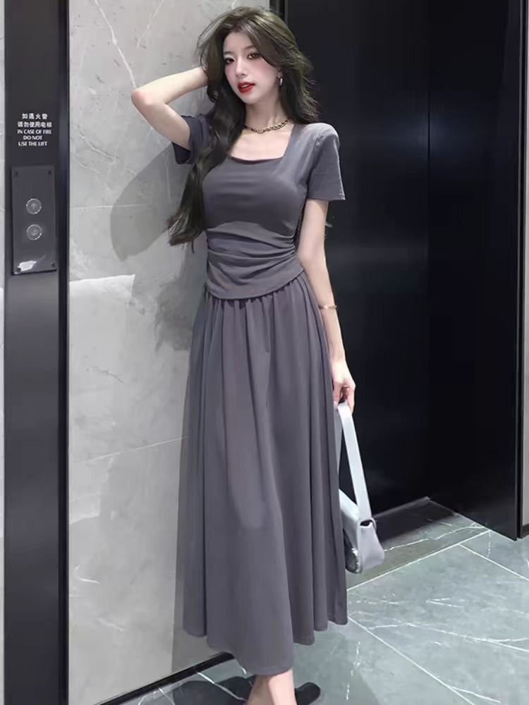 올해 여성을 위한 인기 있는 아름다운 정장 스커트 2025년 여름 신작 반팔 티셔츠 탑 캐주얼 스커트 투피스 세트