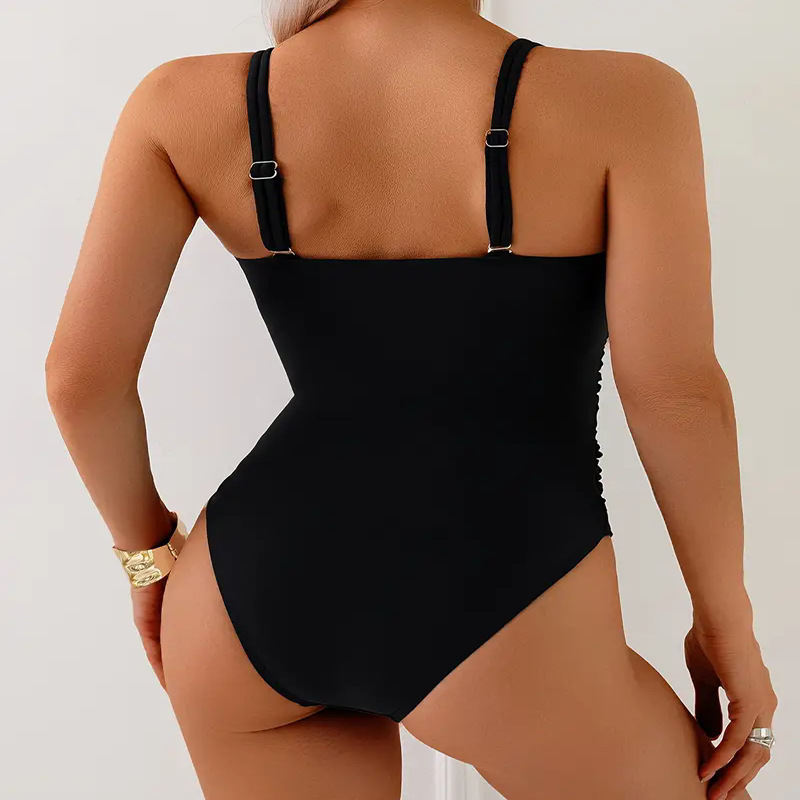 유럽과 미국의 단색 섹시한 중공 어깨 끈 원피스 수영복 여성 비키니 입체 꽃 국경 간 대외 무역 2025 새로운 스타일