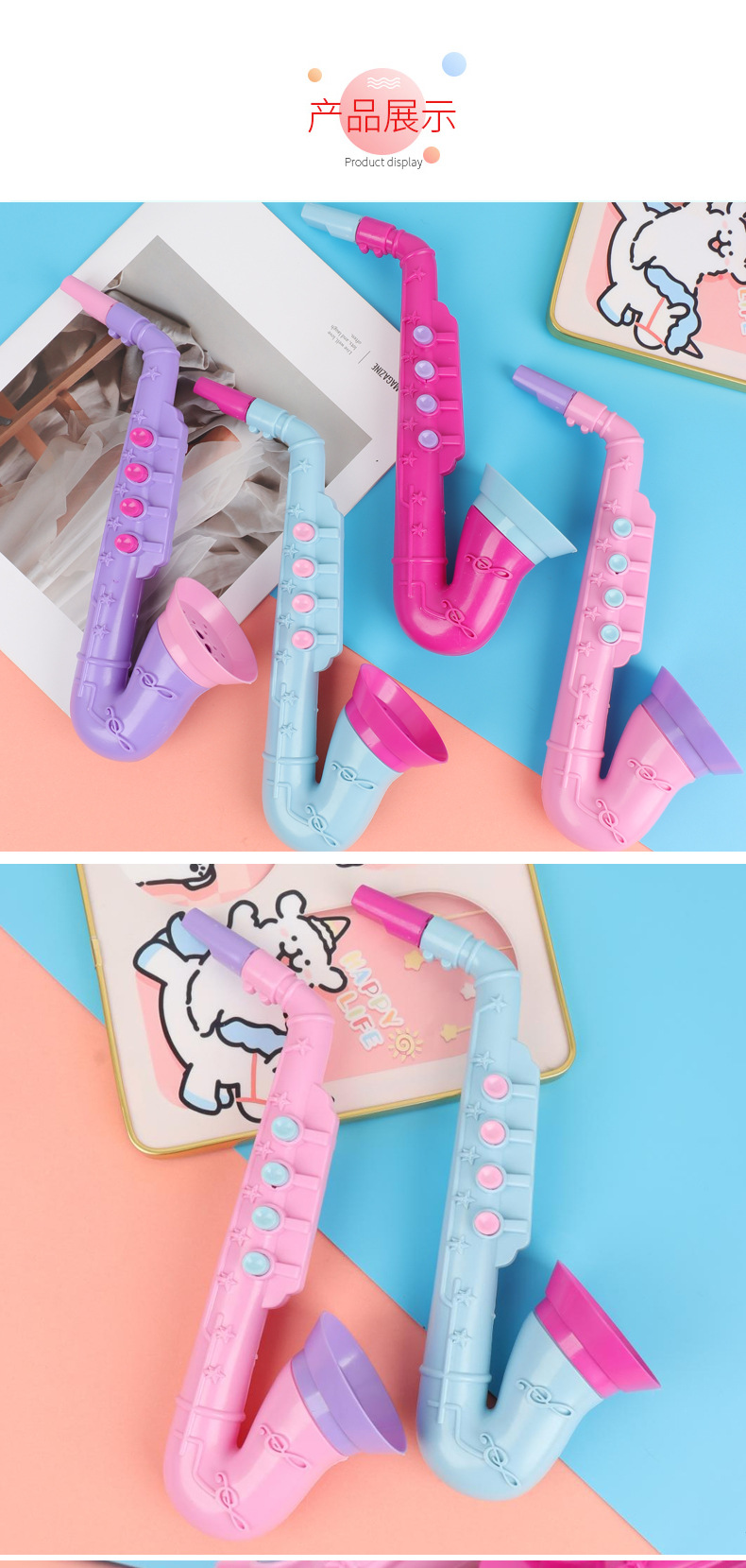 시뮬레이션 어린이 색소폰 트럼펫 장난감 플라스틱 수직 플루트 장난감 작은 호른 트럼펫 부는 악기 도매