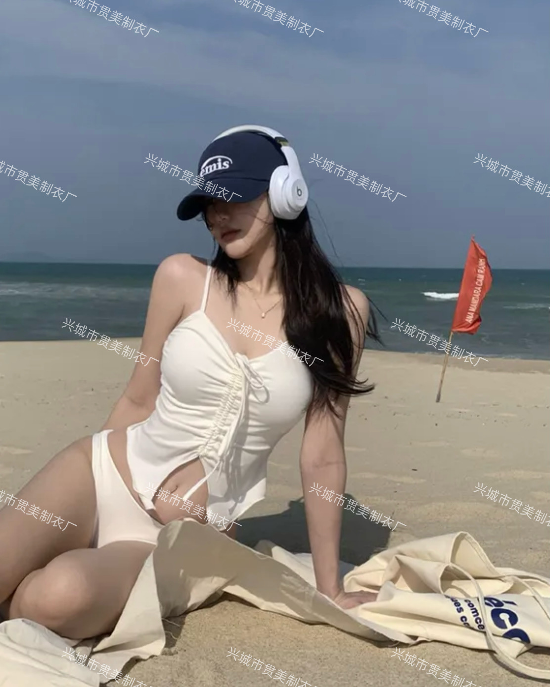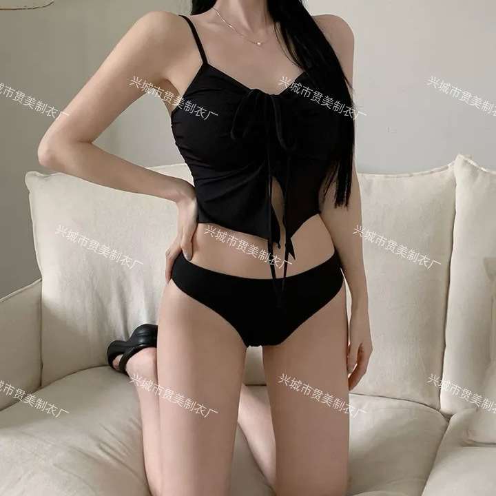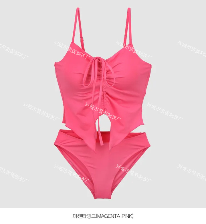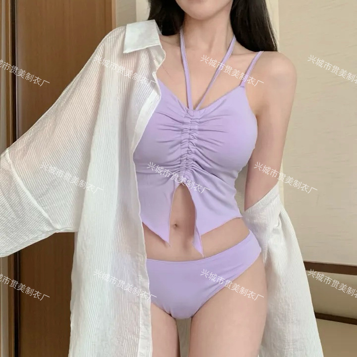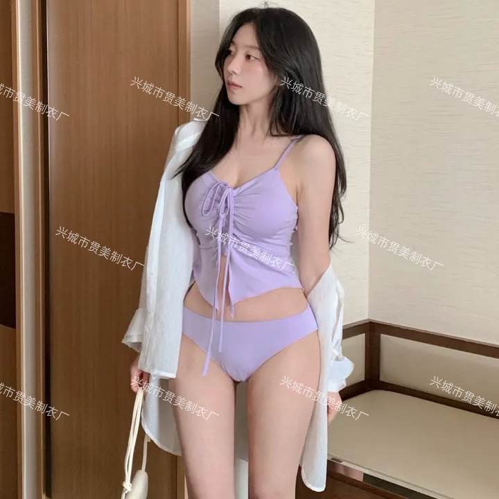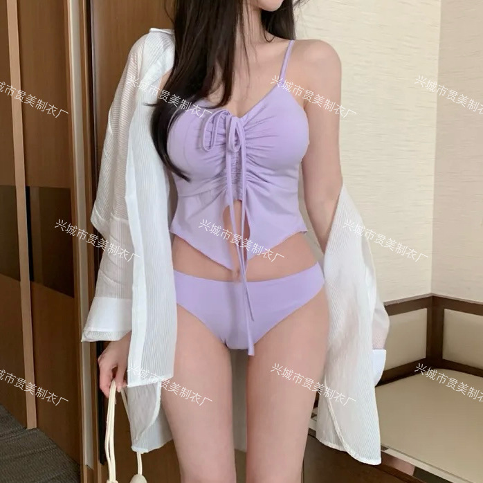 새로운 한국 휴가 ins 소녀 섹시한 스트랩 drawstring 뜨거운 소녀 솔리드 컬러 비키니 여성용 온천 휴가 수영복스토어 가기