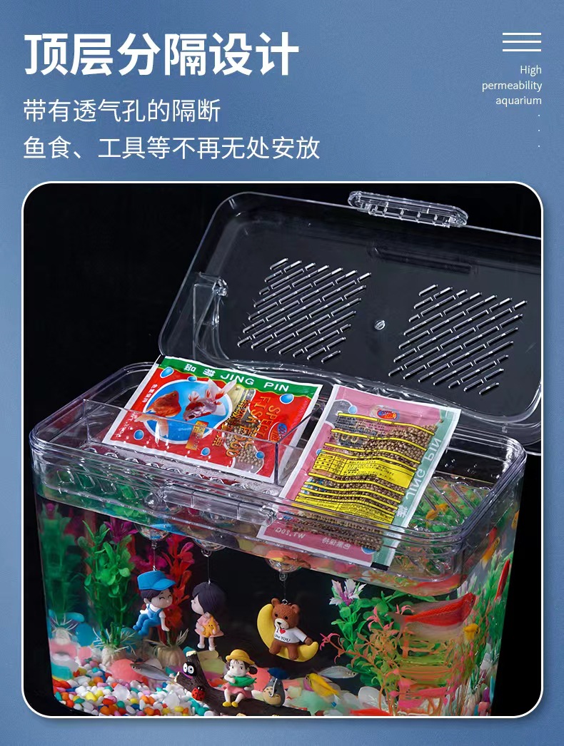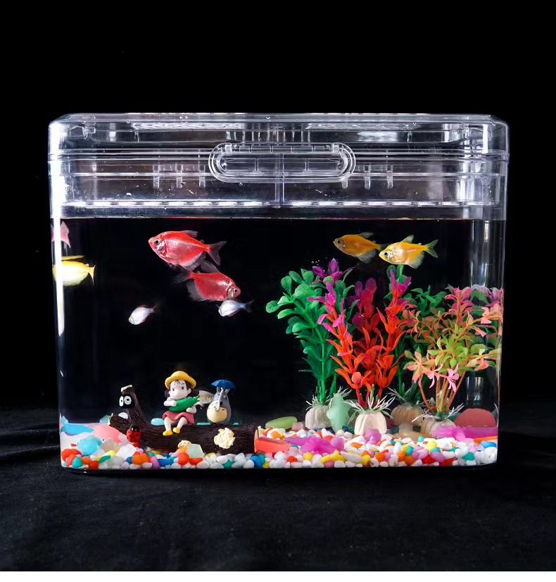 고투명 고화질 애완 동물 휴대용 수조 가정용 소형 물고기 및 거북이 생태 조경 상자 거실 데스크탑 장식 상자