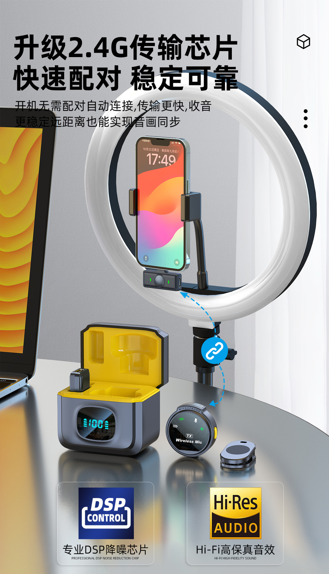 J6 개인 맞춤형 버튼형 무선 라발리에 마이크 야외 라이브 스트리밍 지능형 소음 감소 마이크스토어 가기