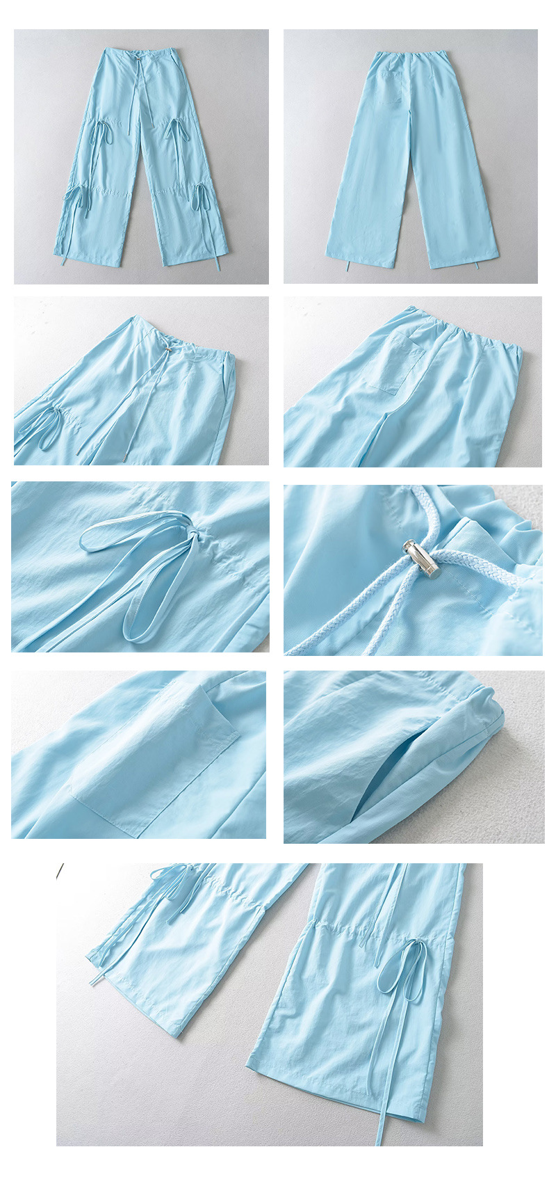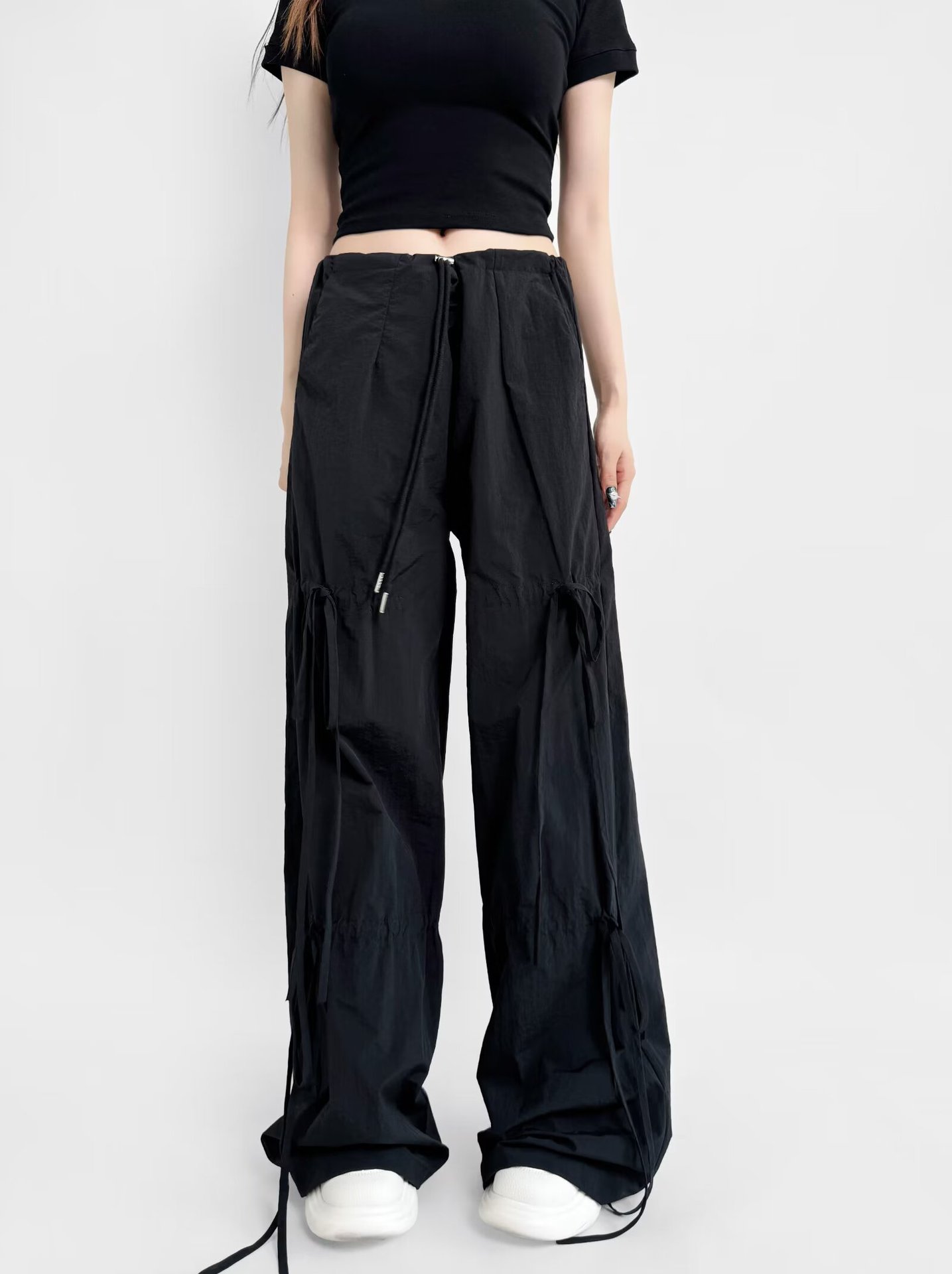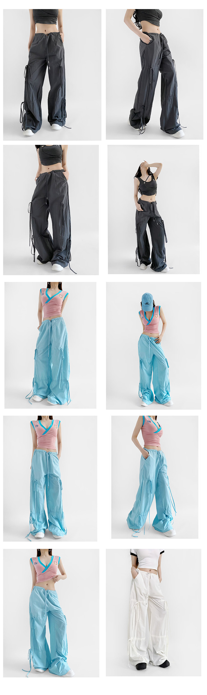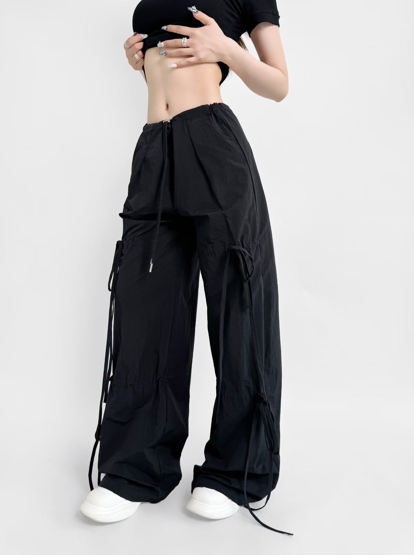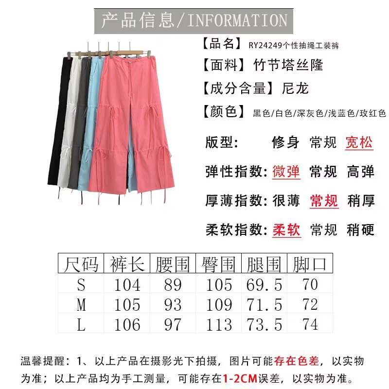 2025 새로운 Taslan 작업 바지 봄과 여름 스포츠 스타일 Drawstring 높은 허리 조절 바지 사이클링 등산 여성 의류스토어 가기