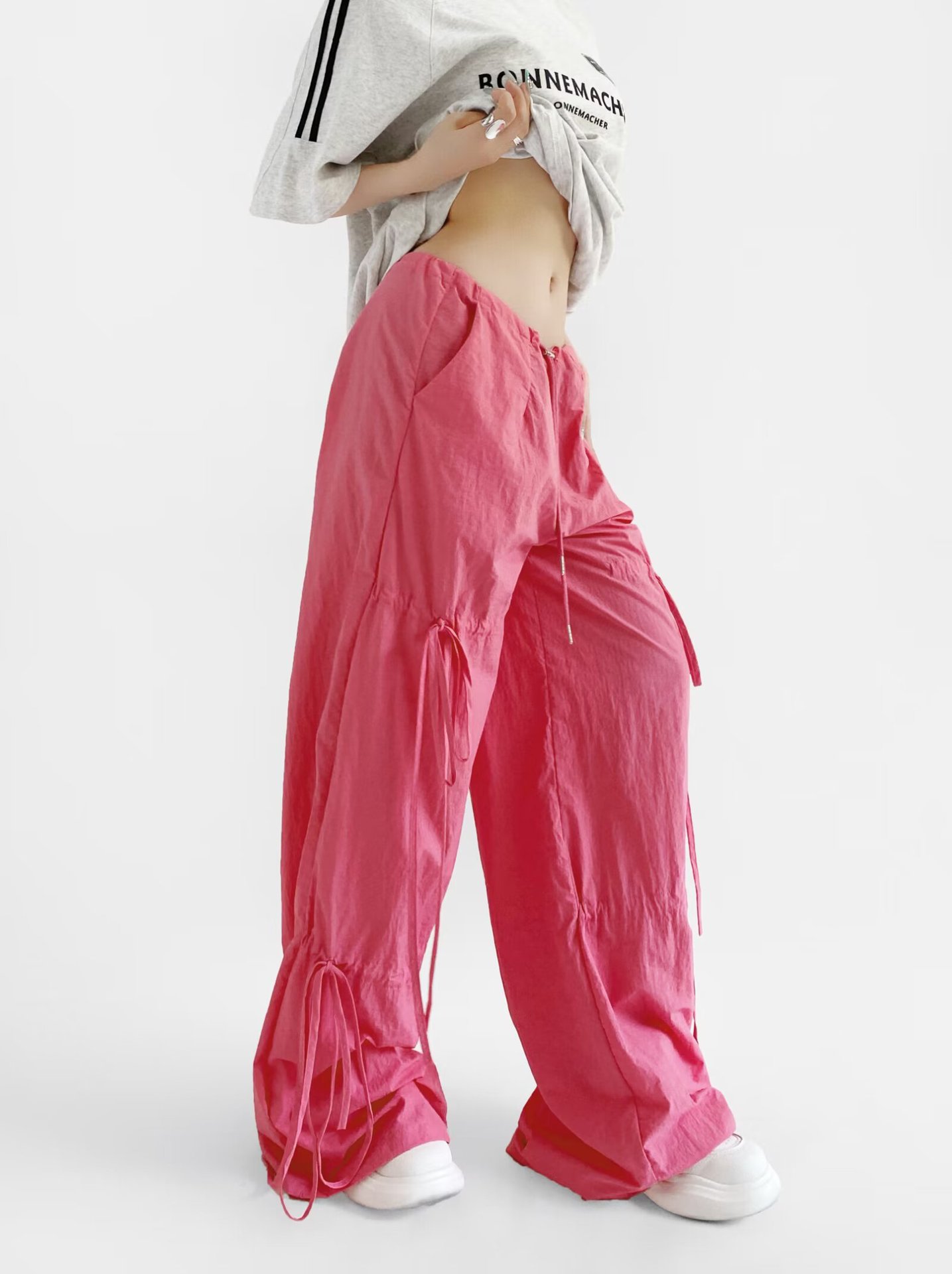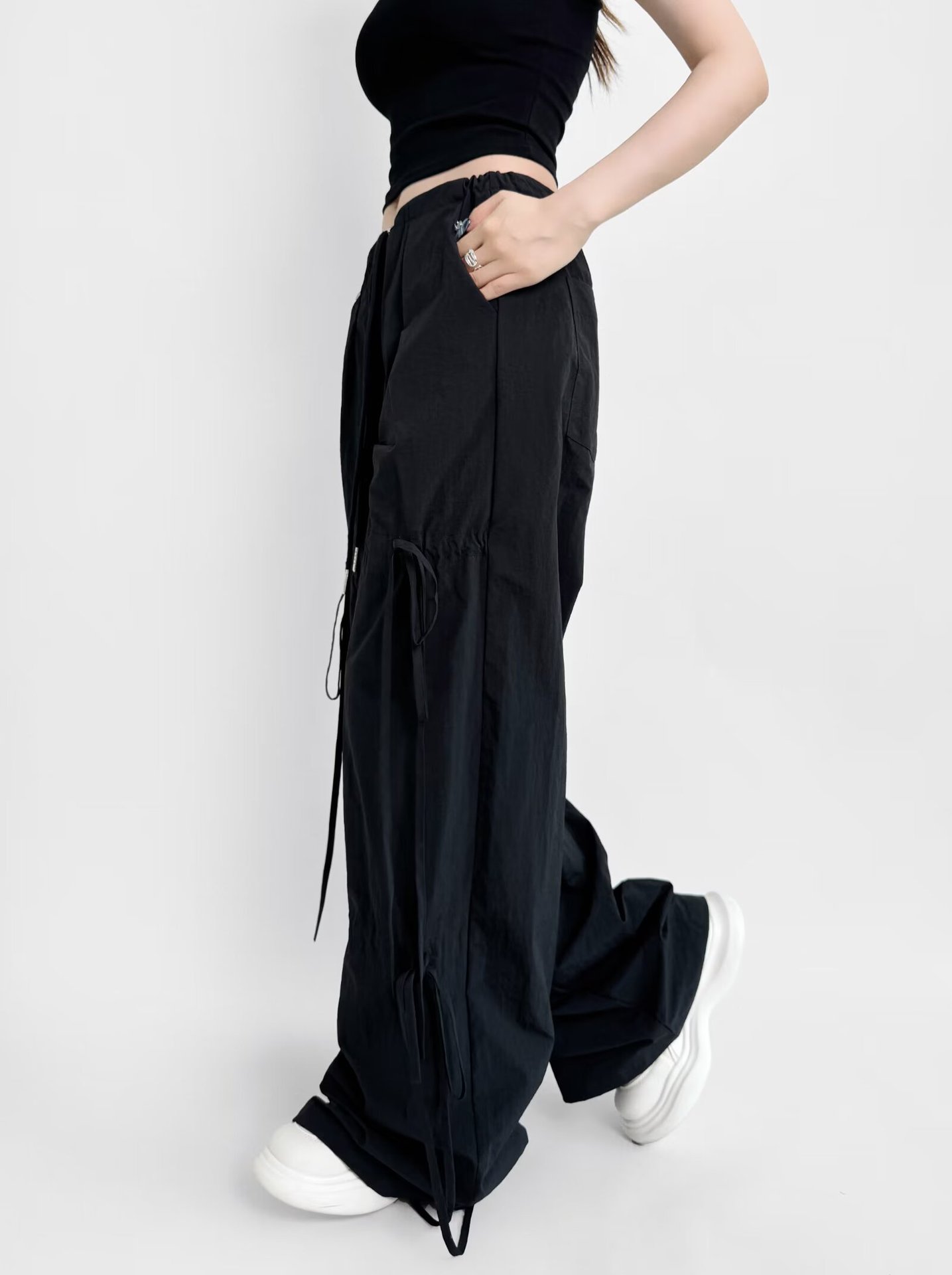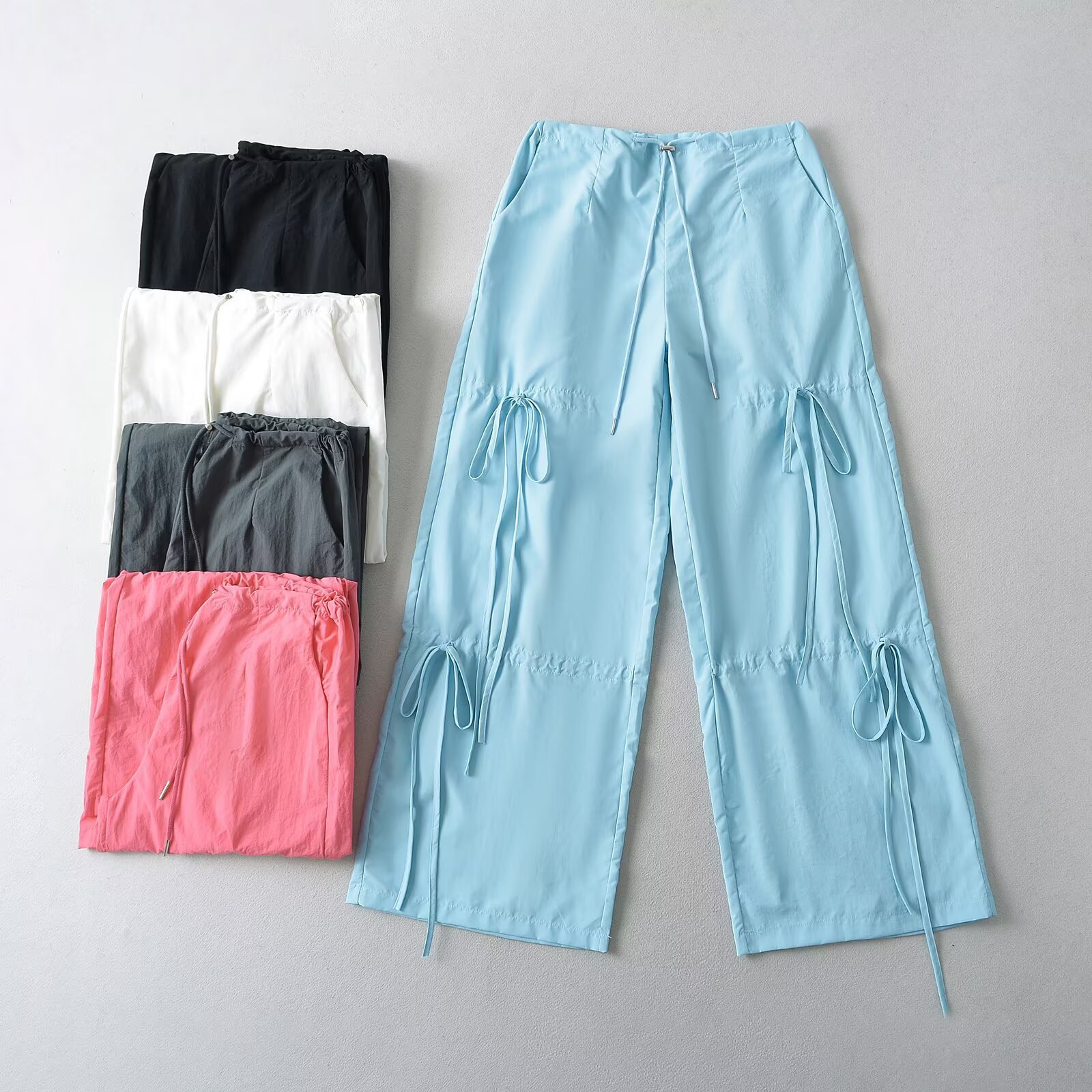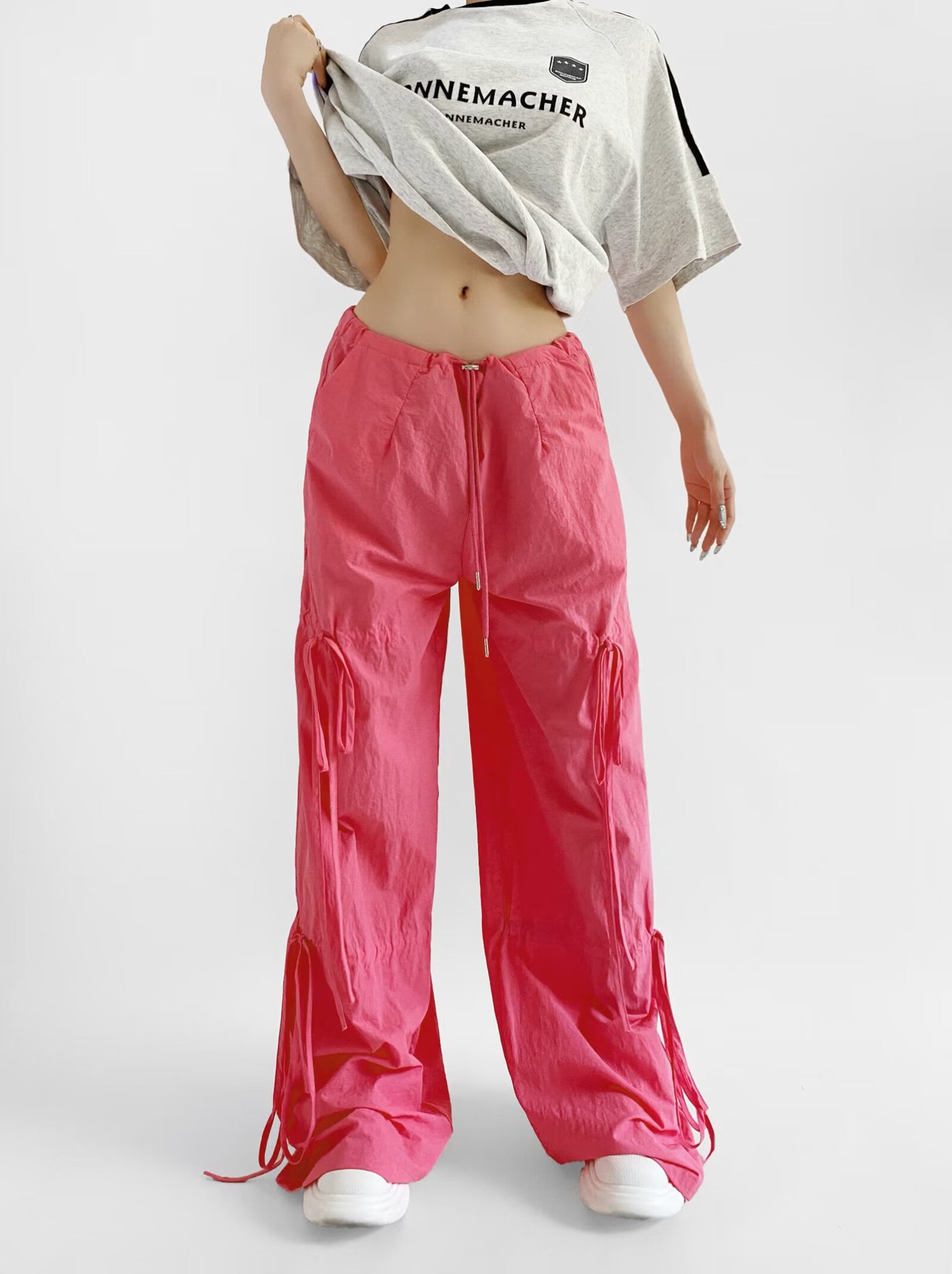 2025 새로운 Taslan 작업 바지 봄과 여름 스포츠 스타일 Drawstring 높은 허리 조절 바지 사이클링 등산 여성 의류스토어 가기