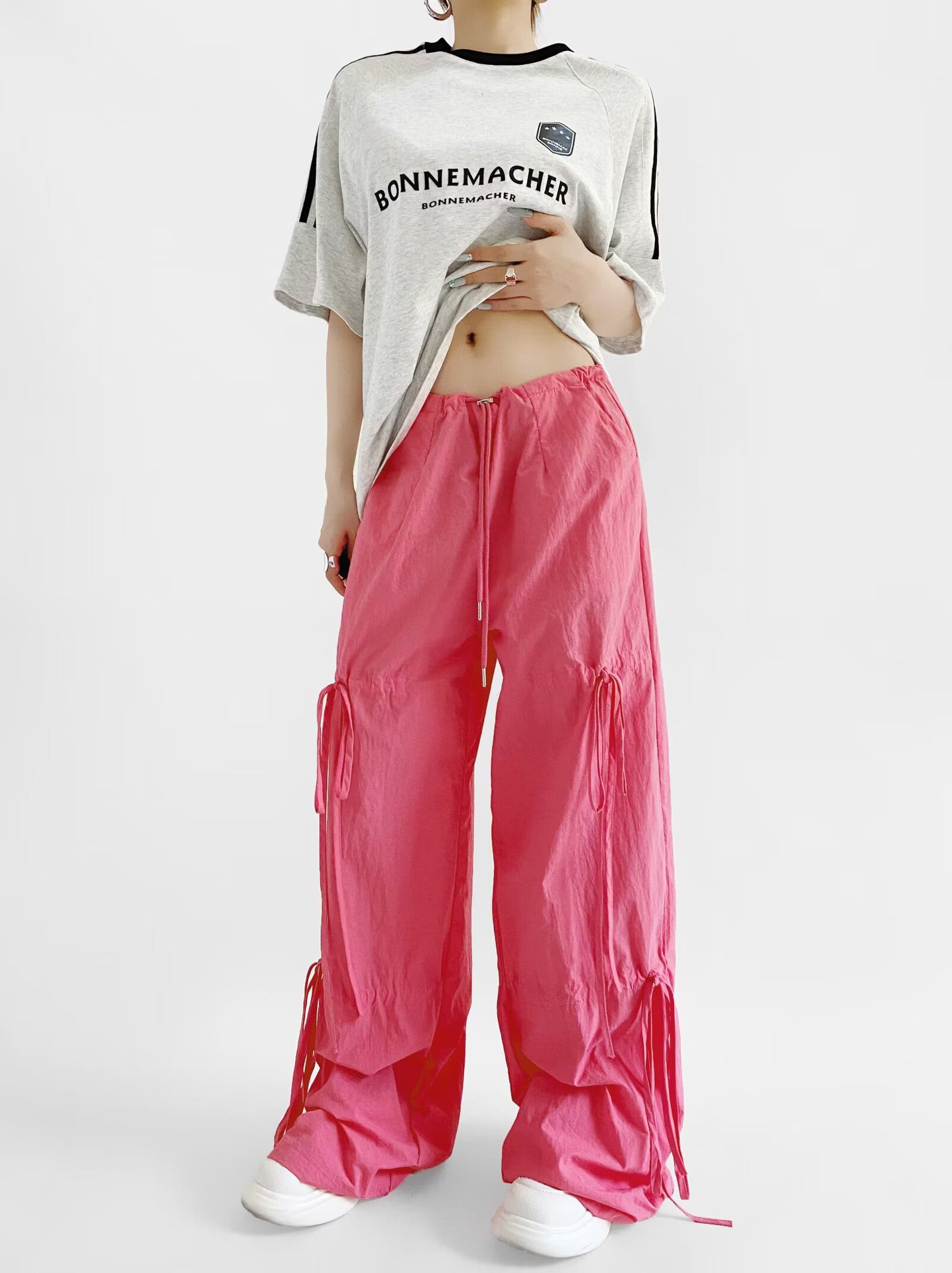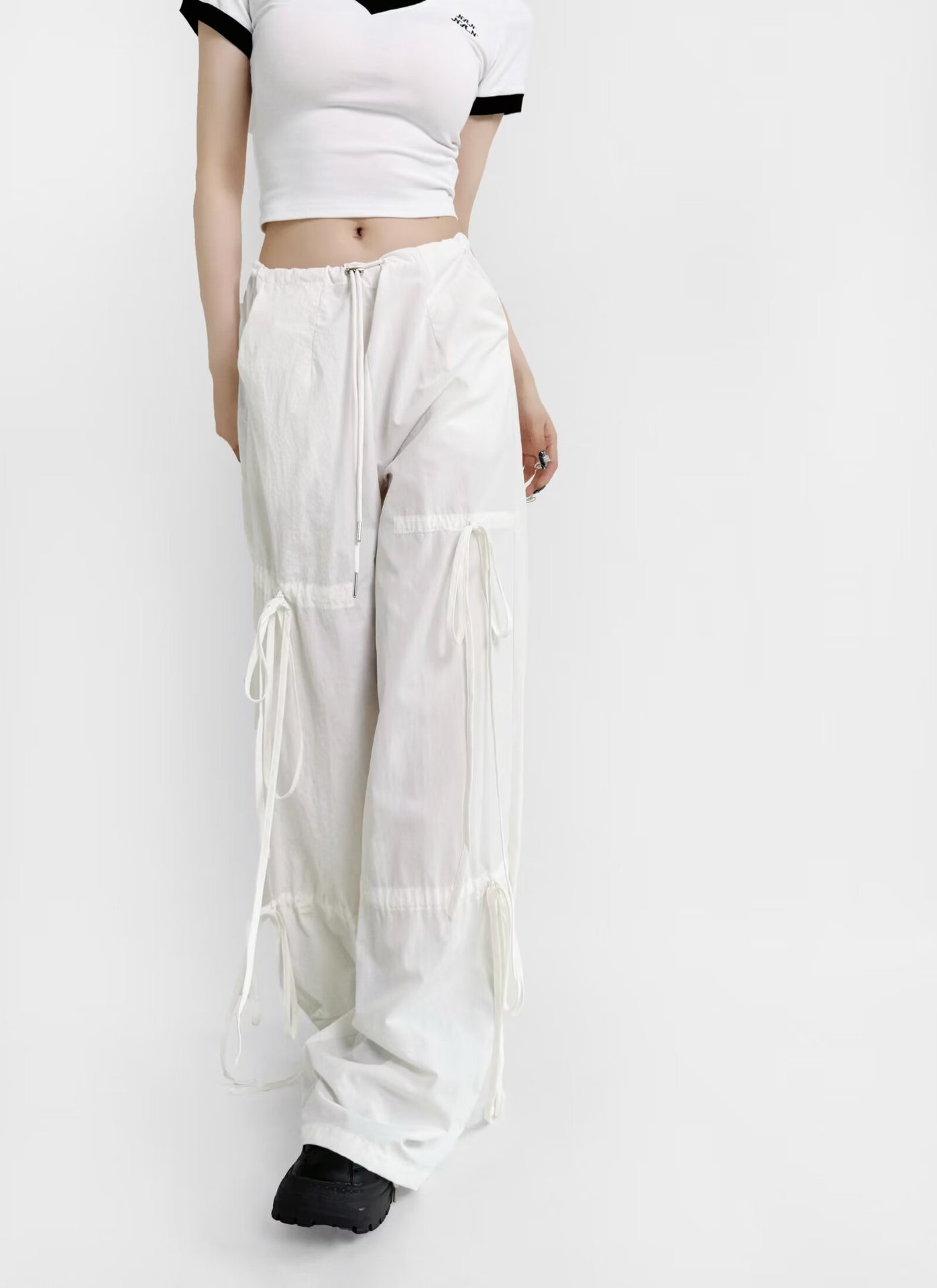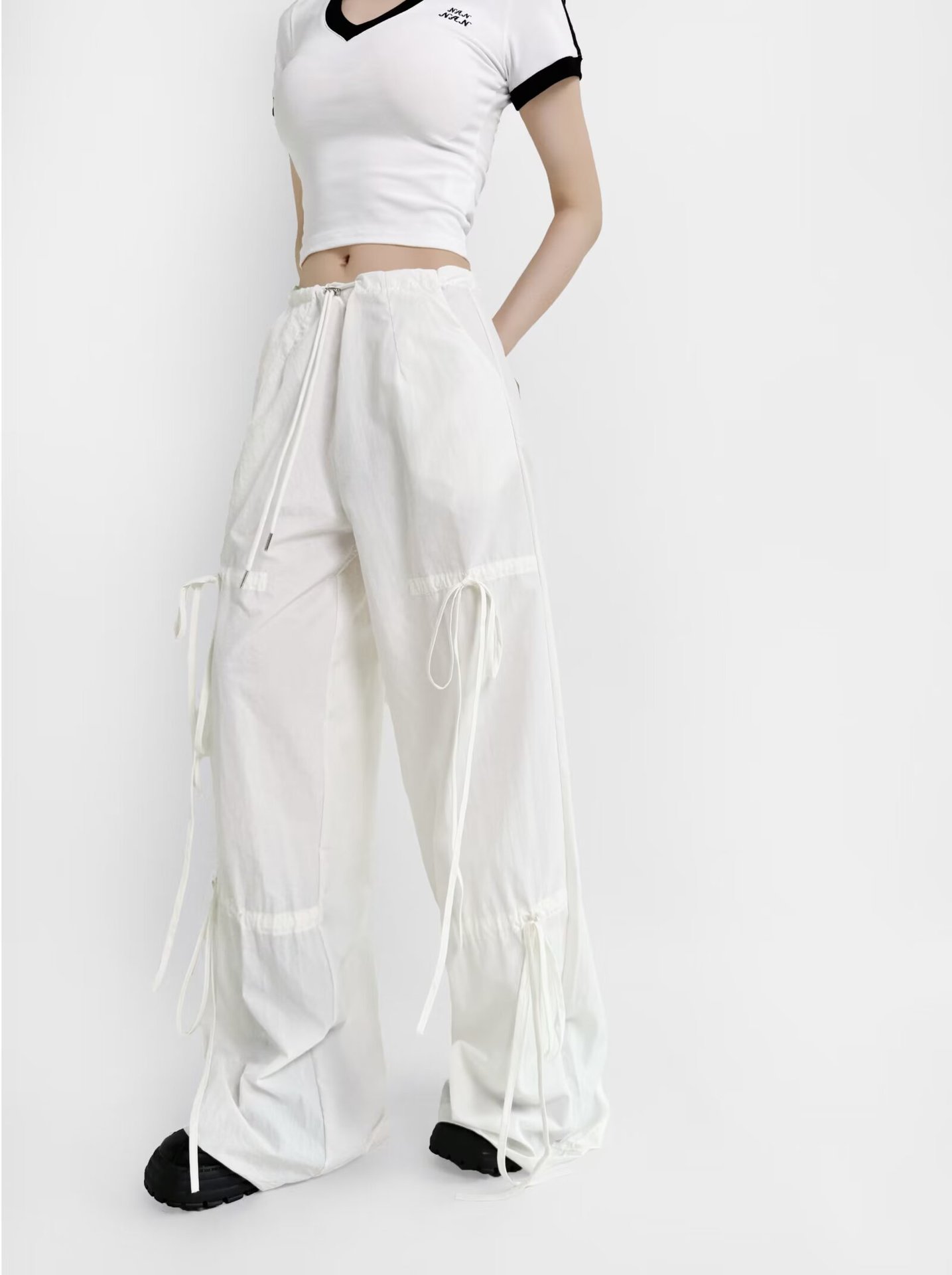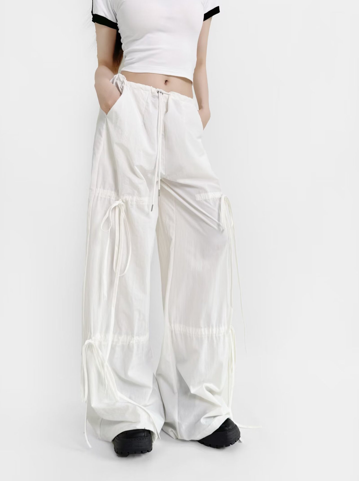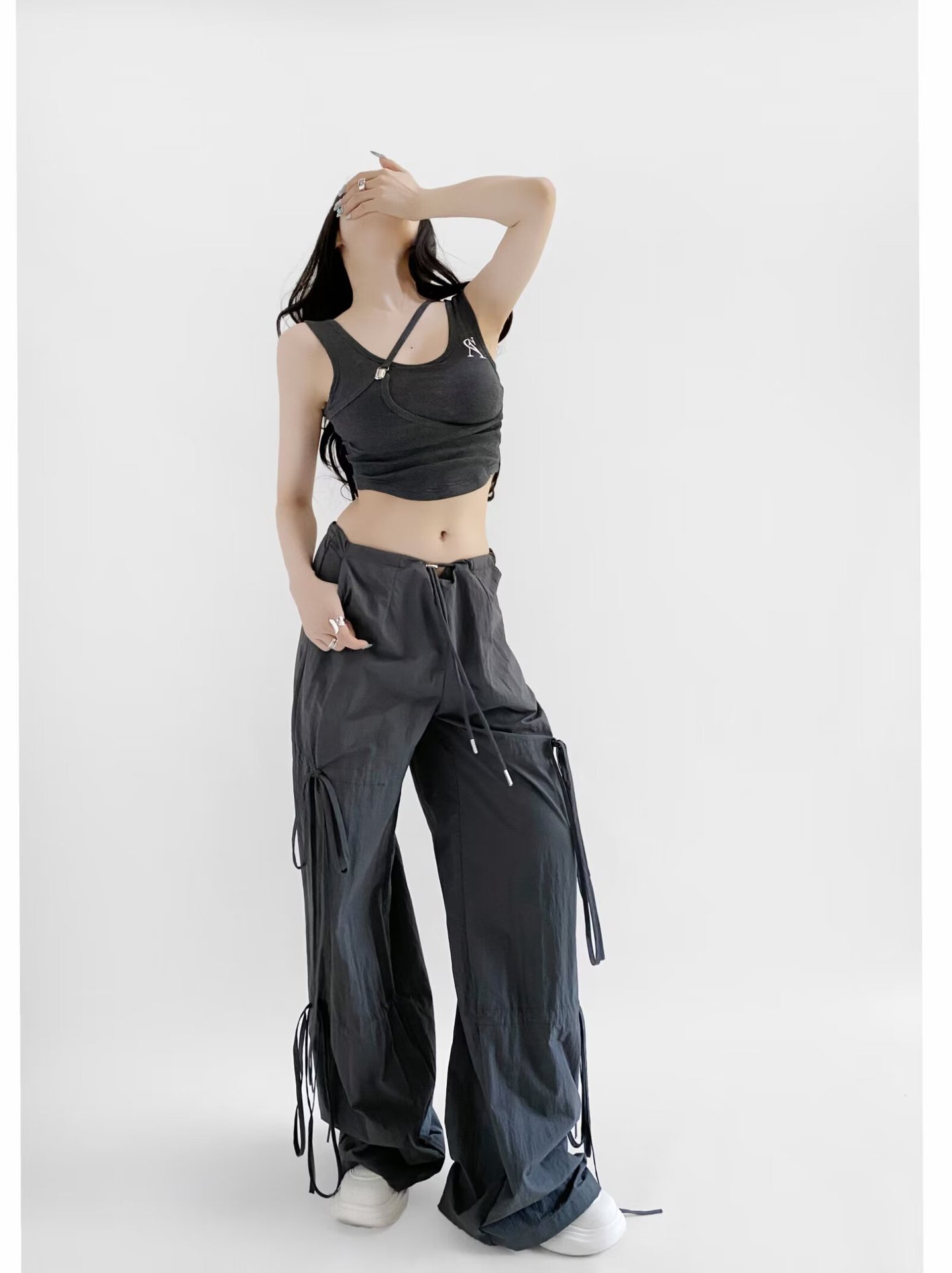 2025 새로운 Taslan 작업 바지 봄과 여름 스포츠 스타일 Drawstring 높은 허리 조절 바지 사이클링 등산 여성 의류스토어 가기
