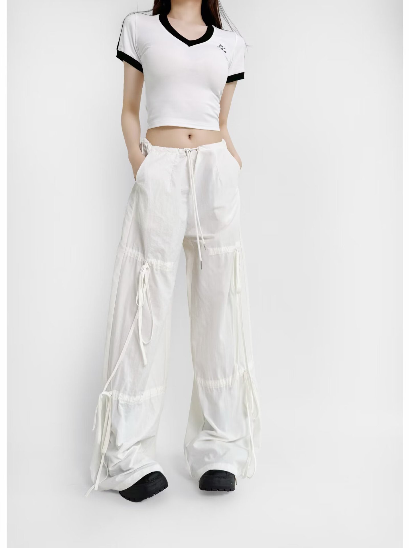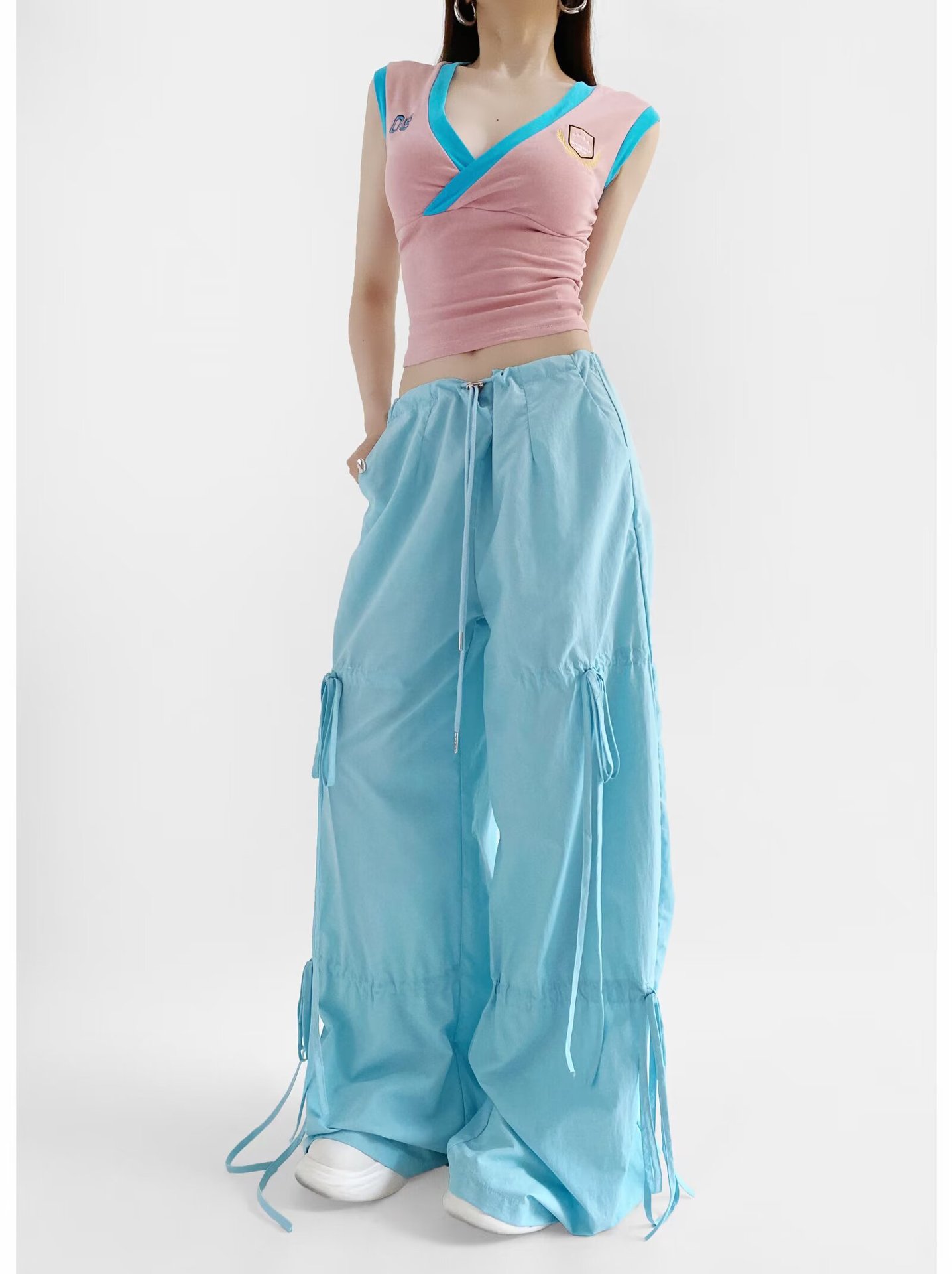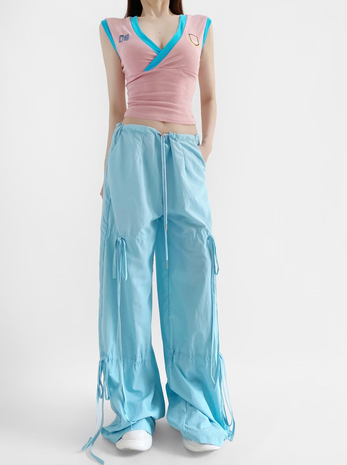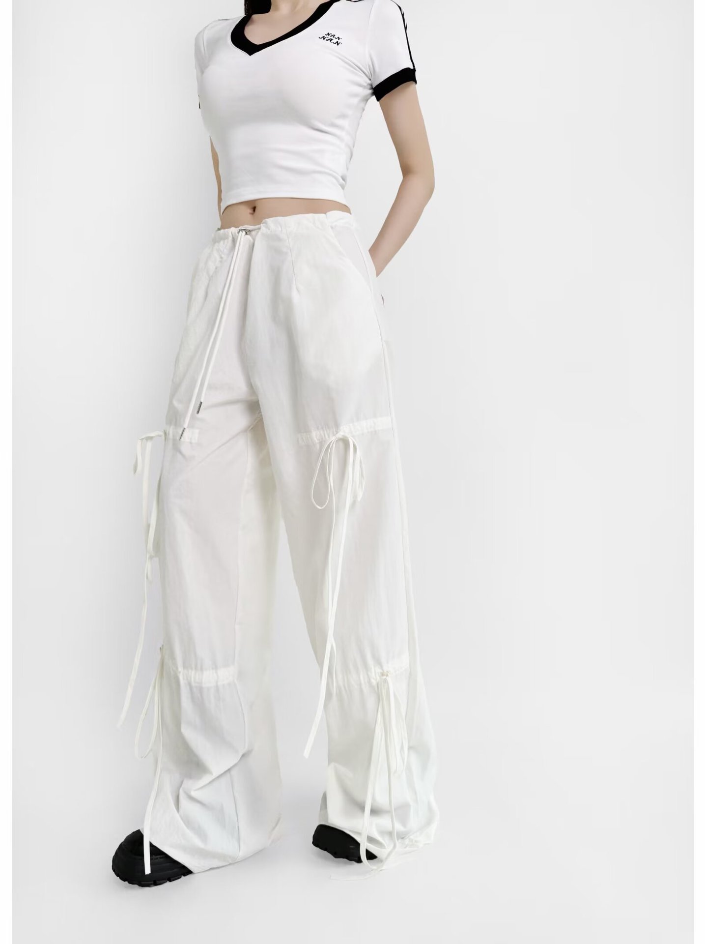 2025 새로운 Taslan 작업 바지 봄과 여름 스포츠 스타일 Drawstring 높은 허리 조절 바지 사이클링 등산 여성 의류스토어 가기