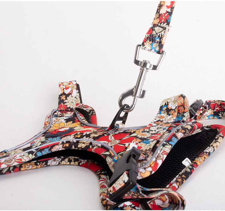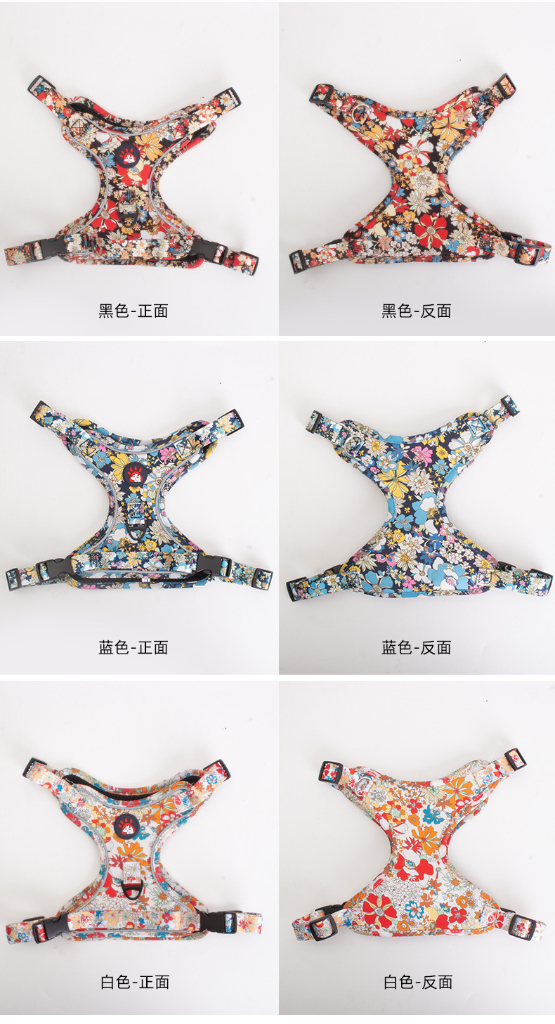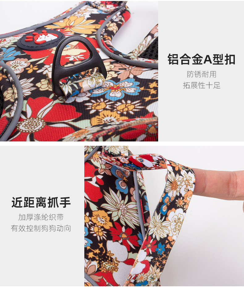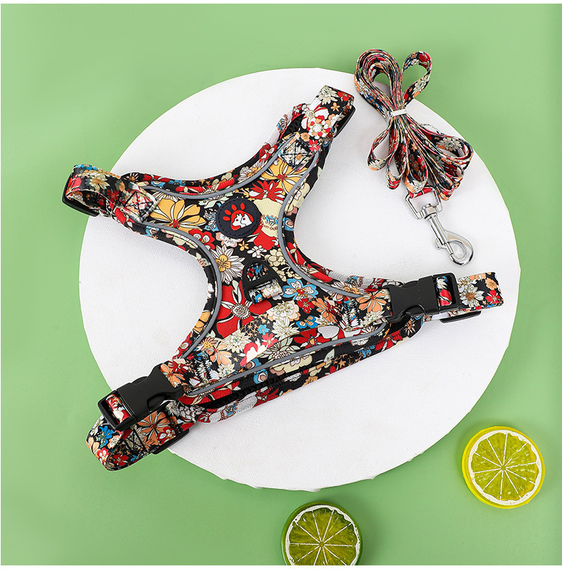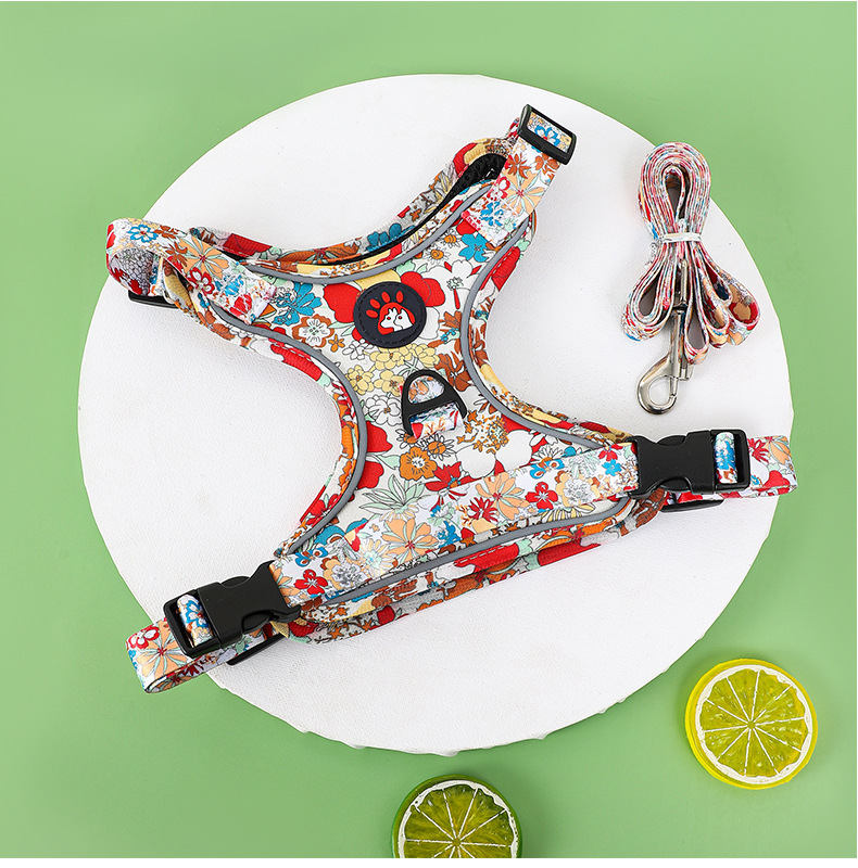 애완 동물의 새로운 꽃무늬 하네스 개가 밤에 도로를 건너는 안전 반사 하네스와 같은 작은 데이지 견인 세트스토어 가기