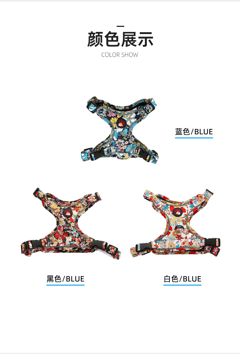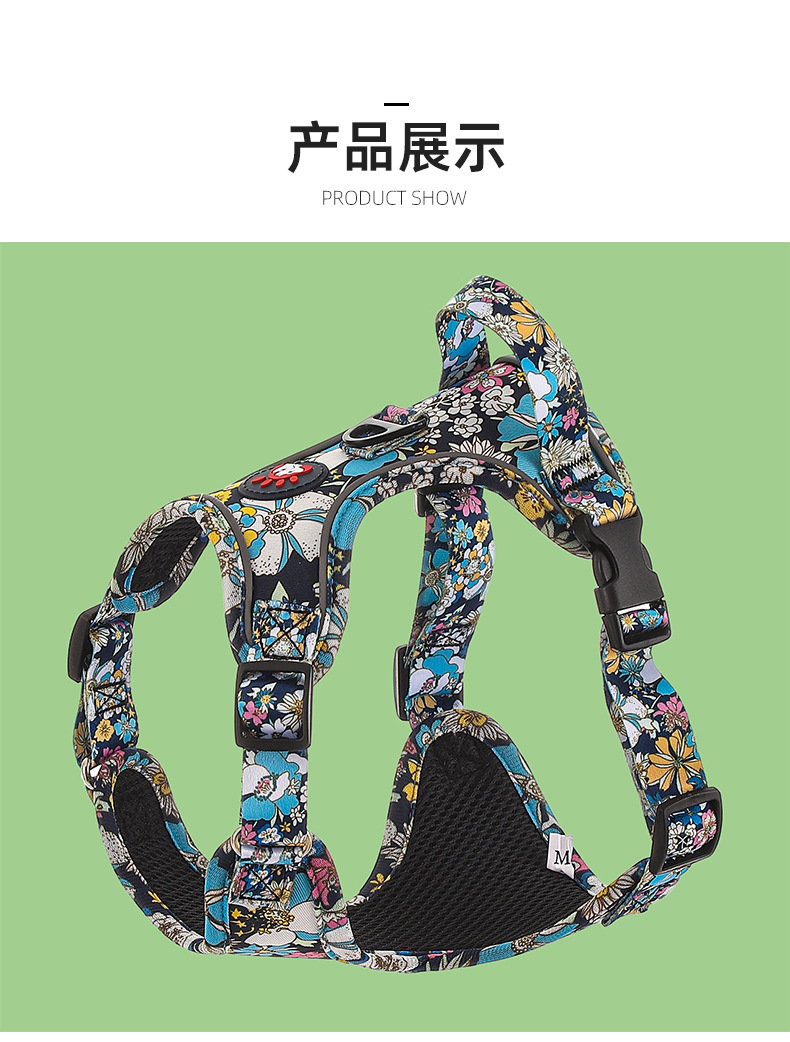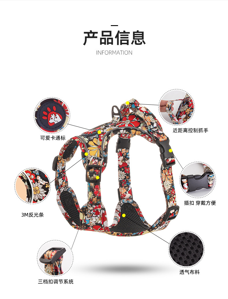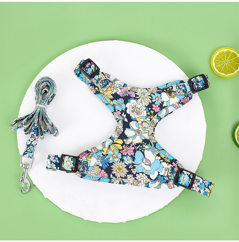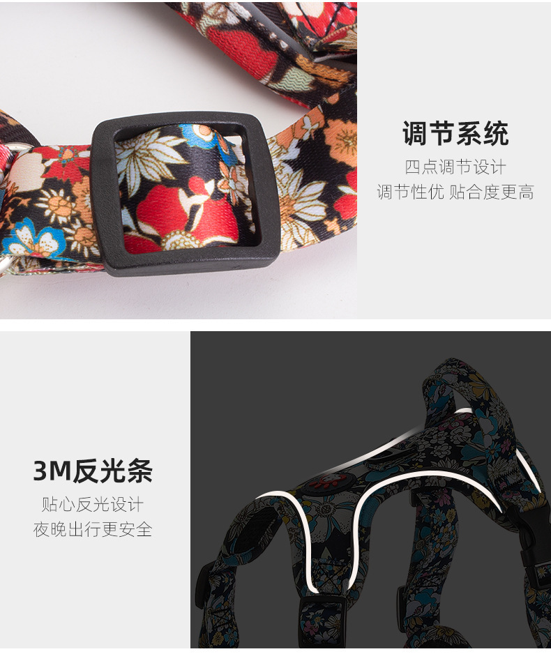 애완 동물의 새로운 꽃무늬 하네스 개가 밤에 도로를 건너는 안전 반사 하네스와 같은 작은 데이지 견인 세트스토어 가기