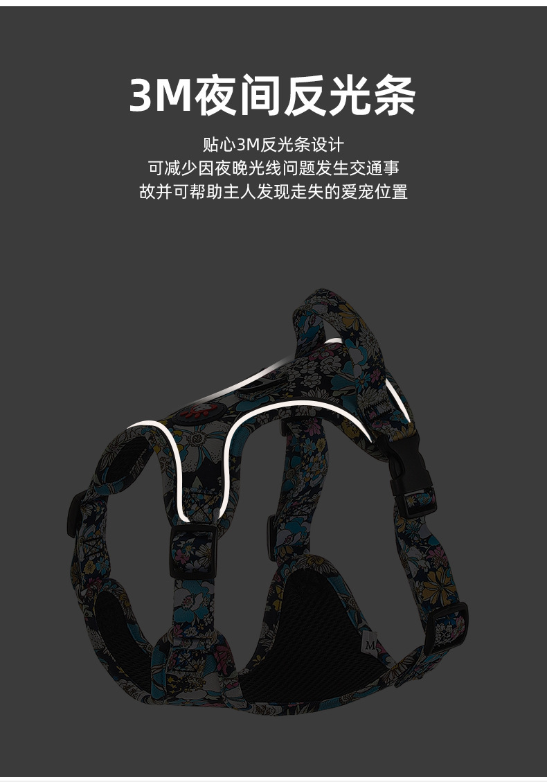 애완 동물의 새로운 꽃무늬 하네스 개가 밤에 도로를 건너는 안전 반사 하네스와 같은 작은 데이지 견인 세트