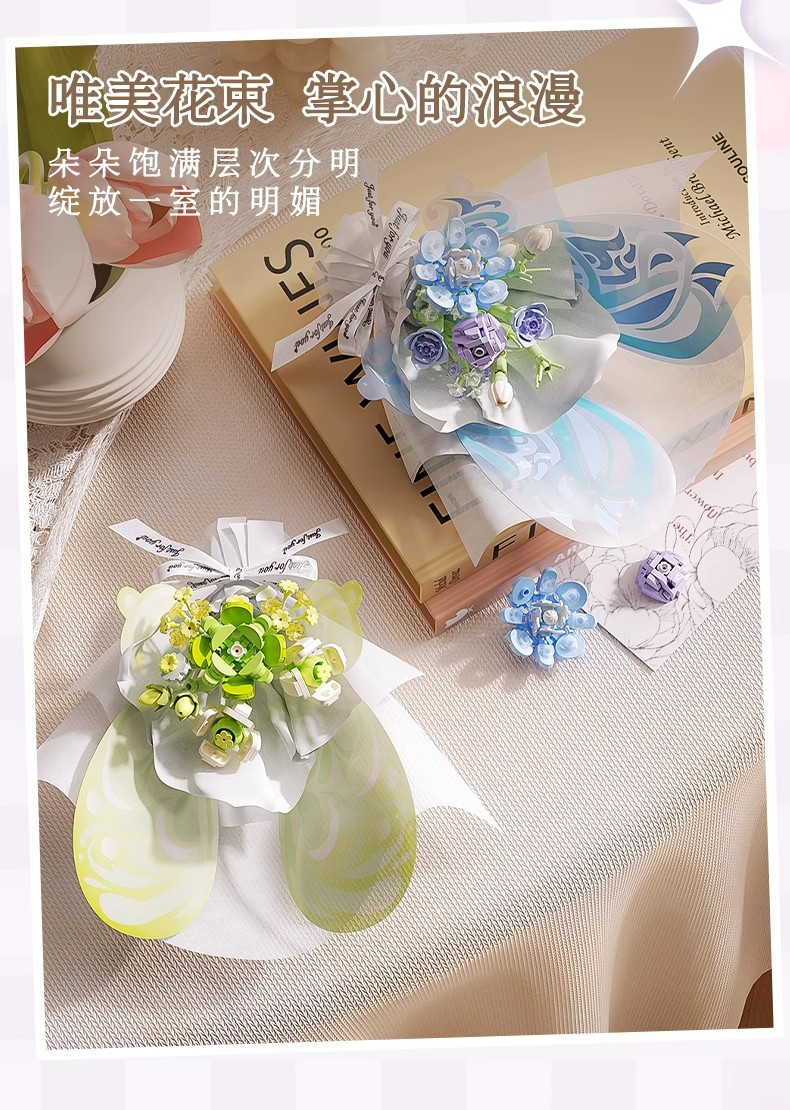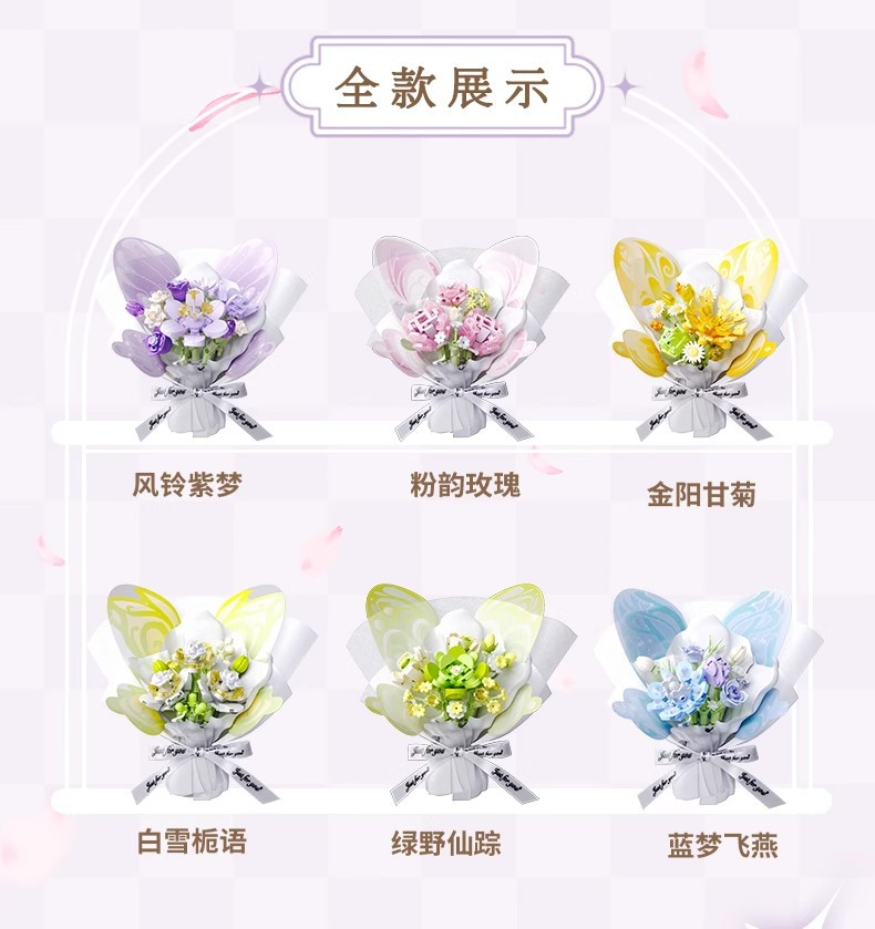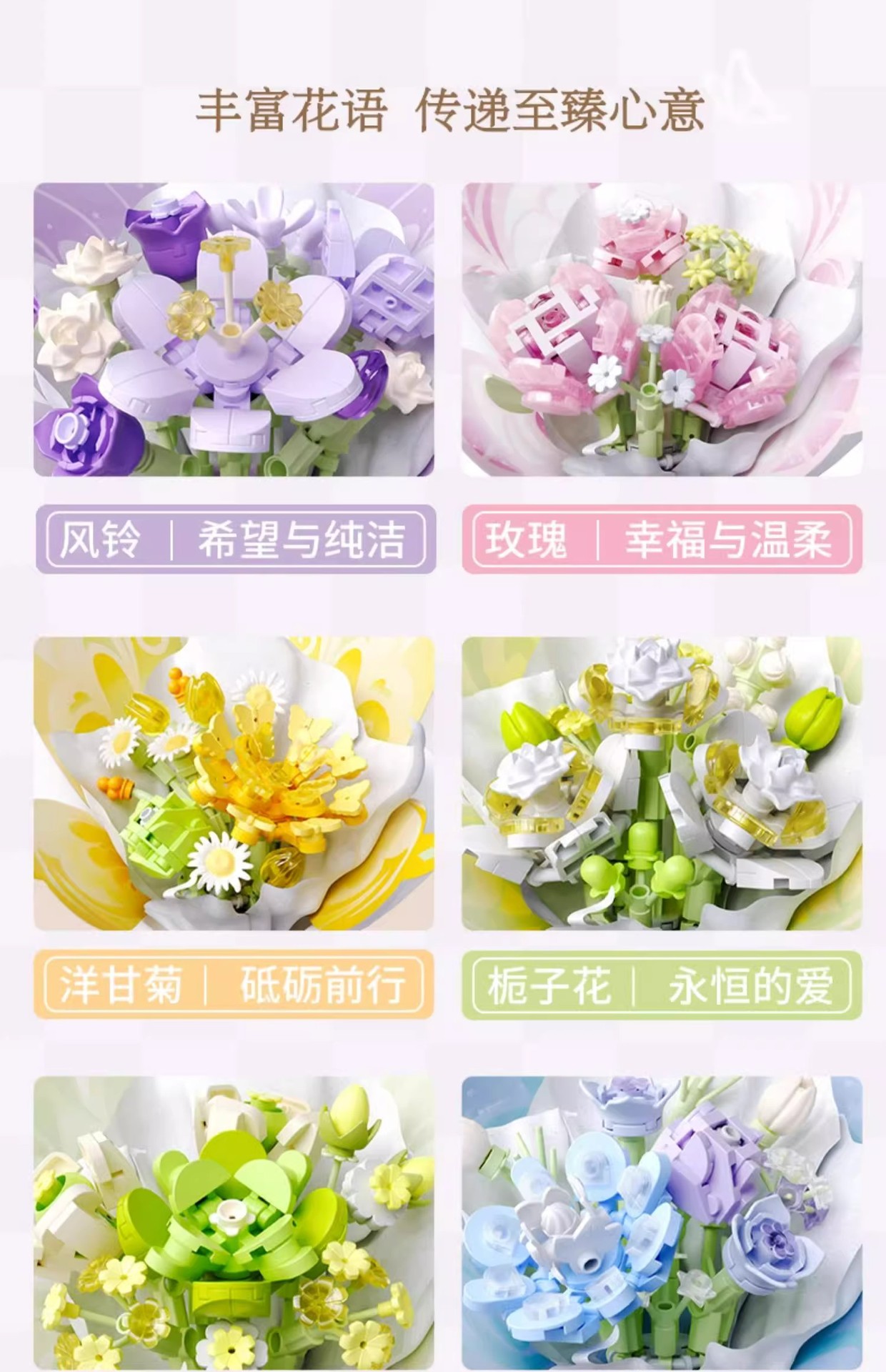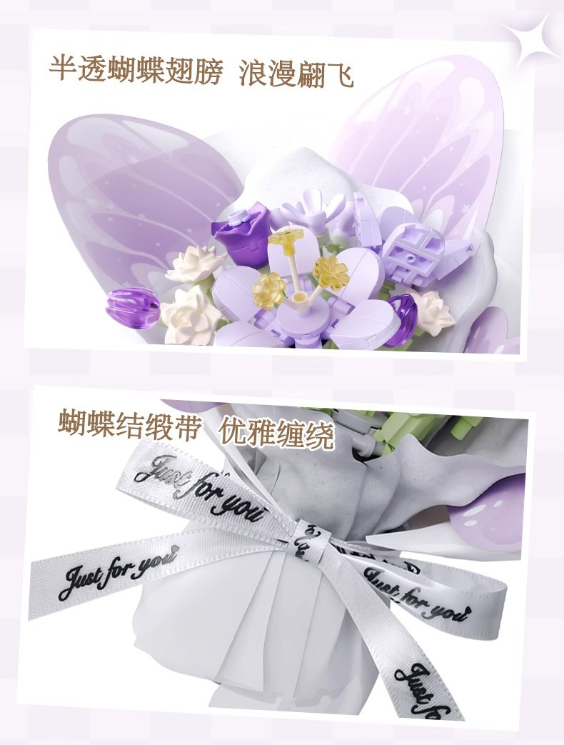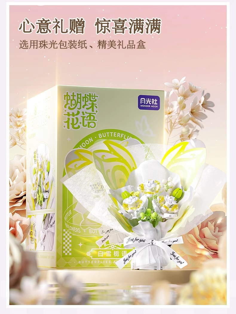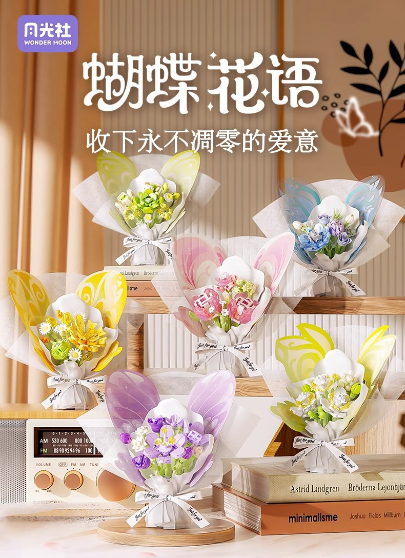 달빛 클럽 802049-54 나비 꽃 언어 건물 블록 어린이 조립 장난감 교육 DIY 창조적 인 모델 소녀스토어 가기