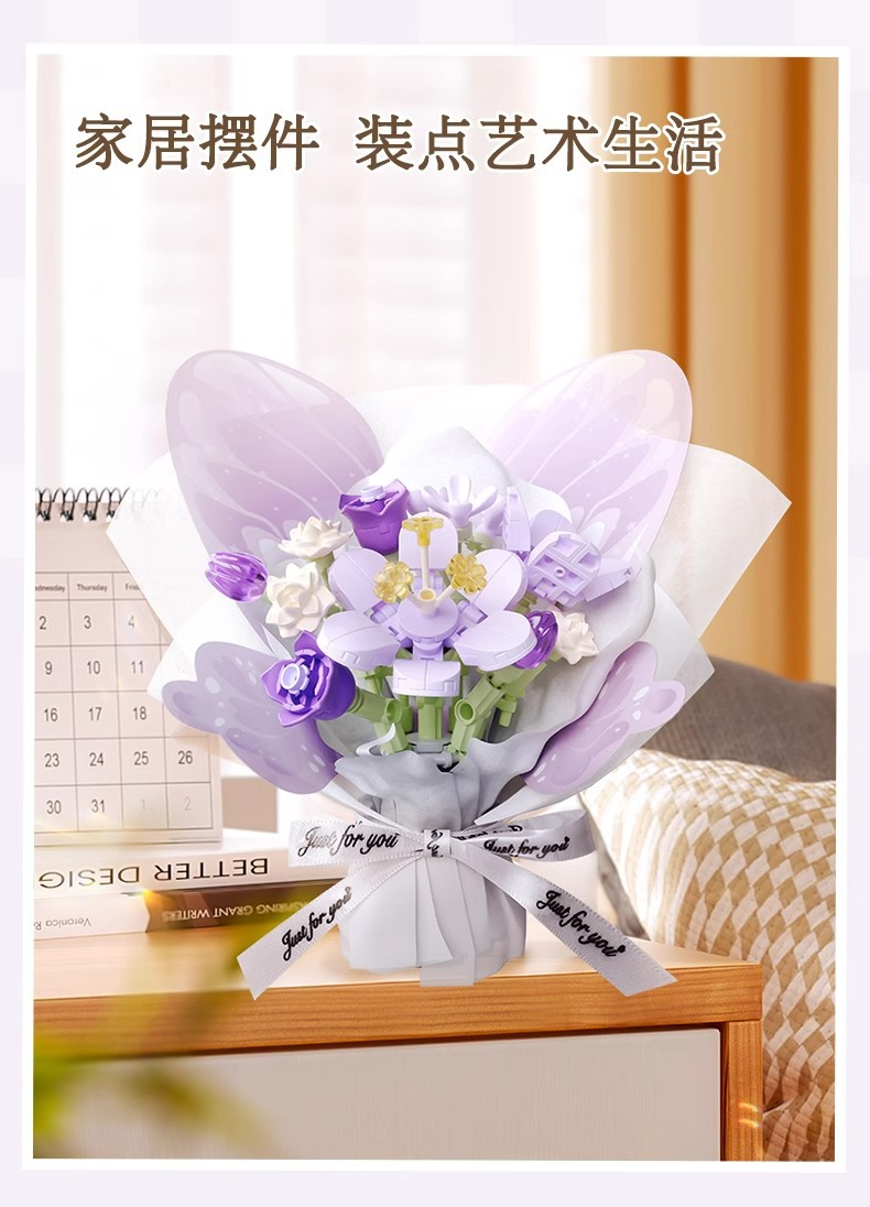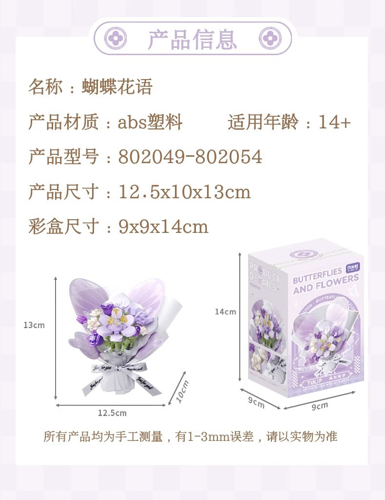 달빛 클럽 802049-54 나비 꽃 언어 건물 블록 어린이 조립 장난감 교육 DIY 창조적 인 모델 소녀