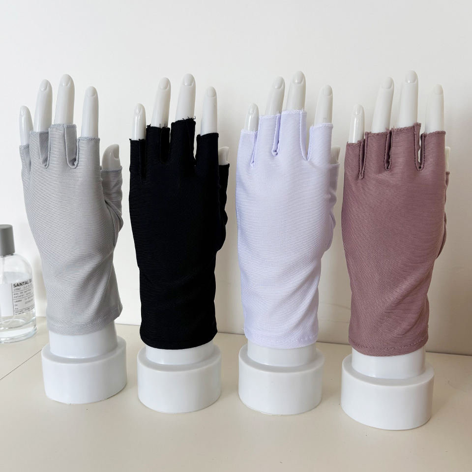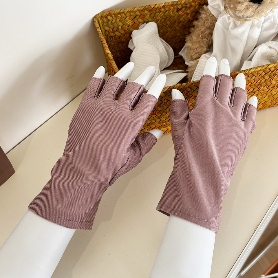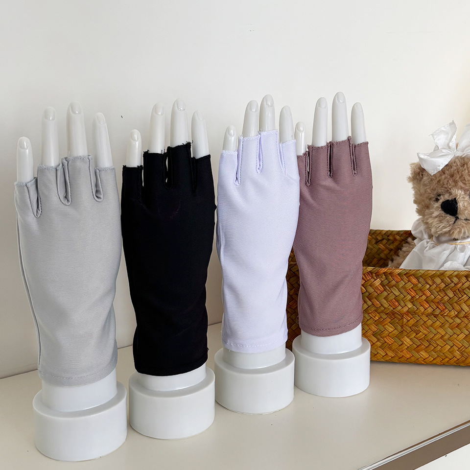 찻잎 따기 작업 반 손가락 스판덱스 고탄성 여성용 장갑 봄 여름 자외선 차단 얇은 통기성 단색 짧은 스타일스토어 가기