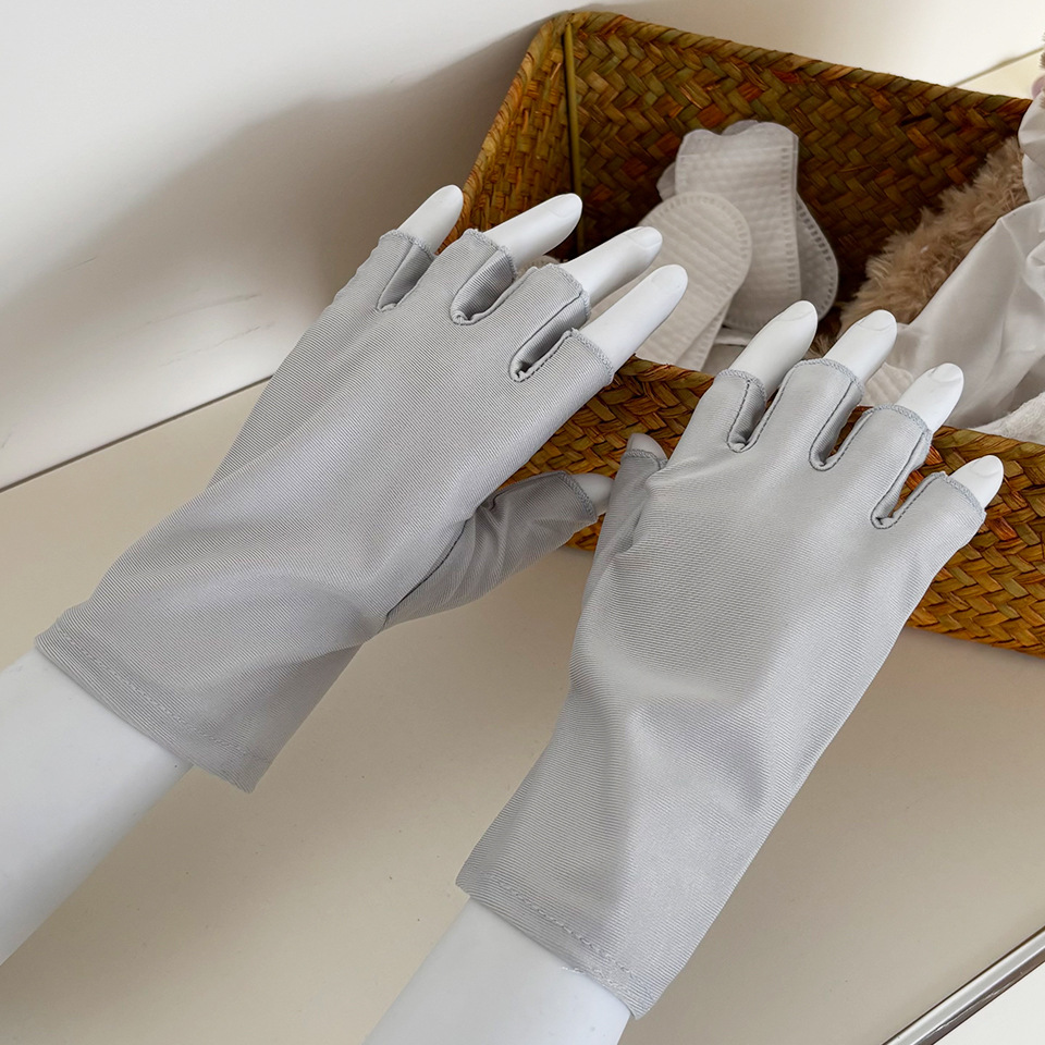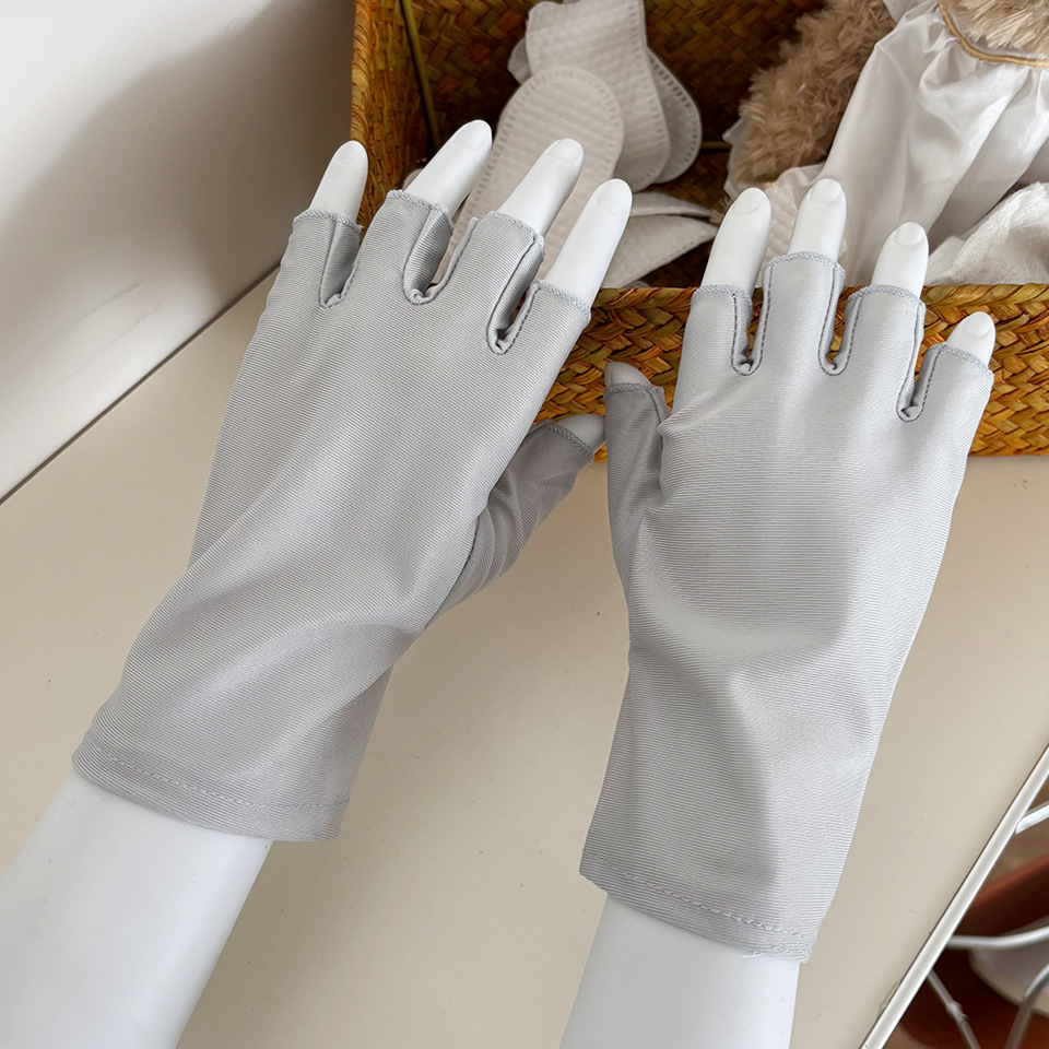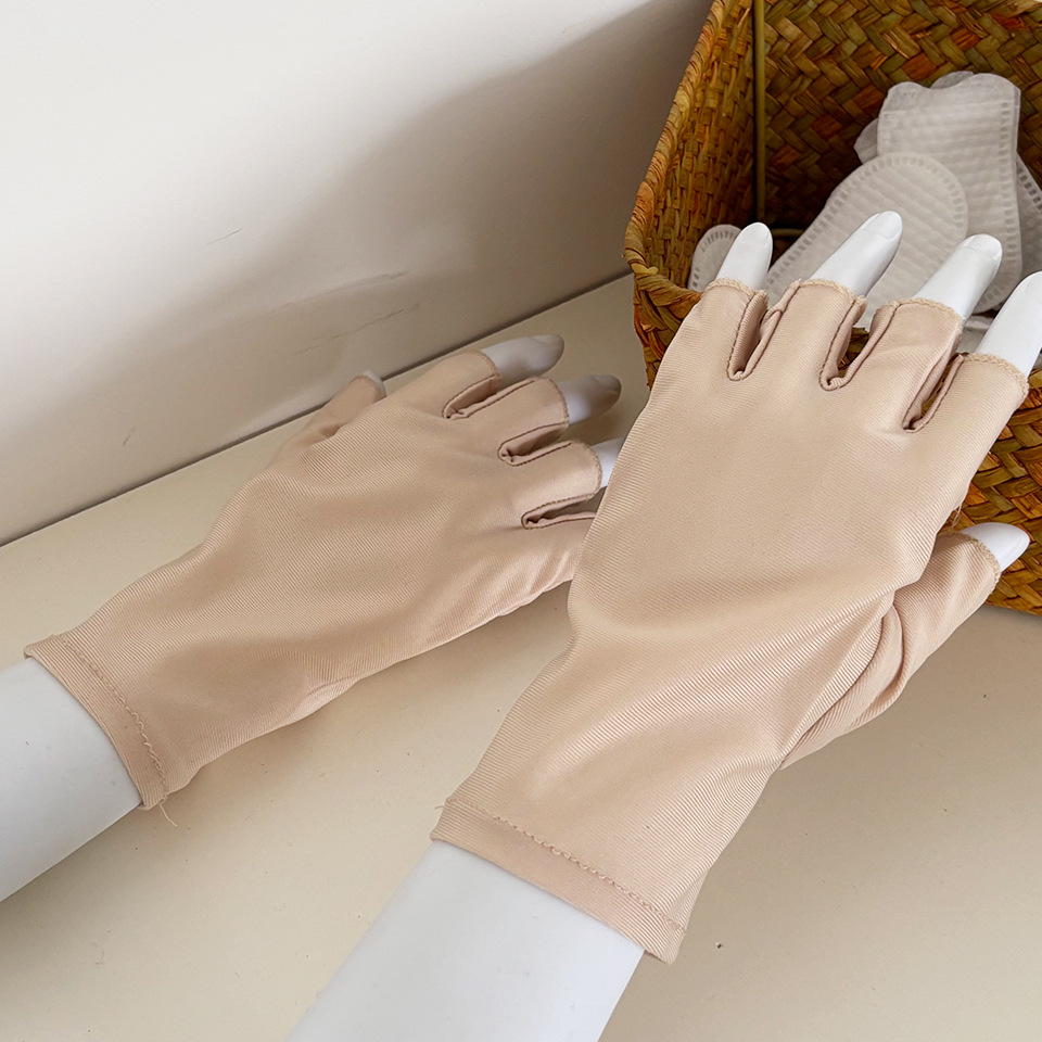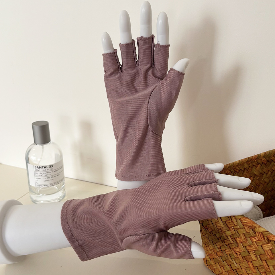 찻잎 따기 작업 반 손가락 스판덱스 고탄성 여성용 장갑 봄 여름 자외선 차단 얇은 통기성 단색 짧은 스타일스토어 가기