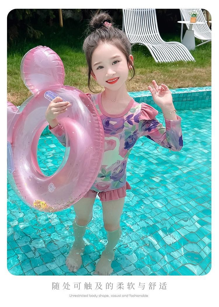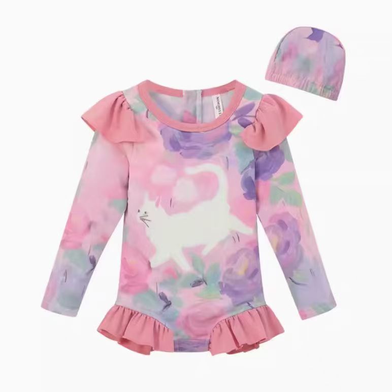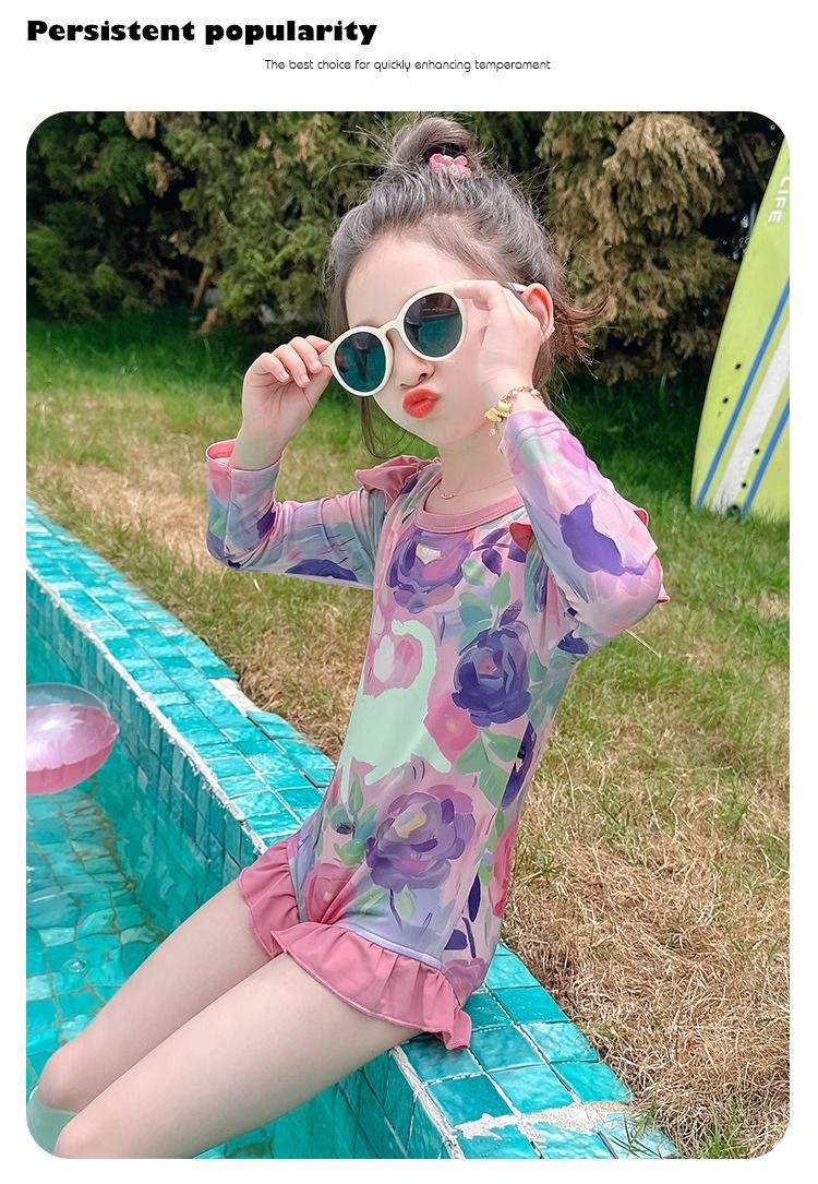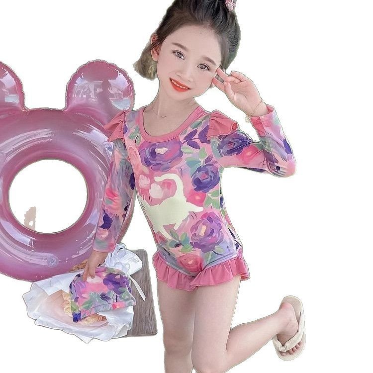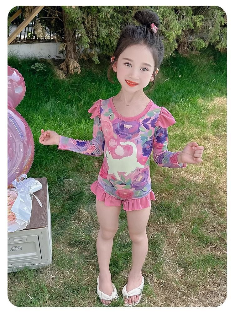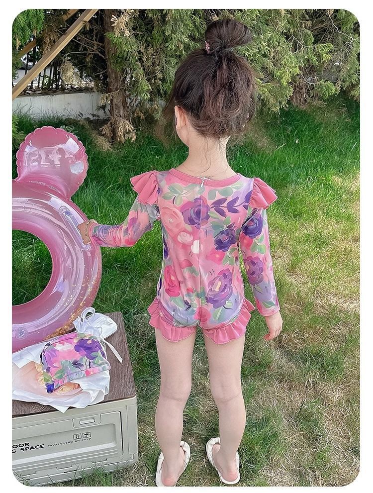 여아 원피스 수영복 여름옷 2026년 신상 스타일리쉬한 아동용 긴팔 자외선 차단 비치 수영복 어린 소녀 수영복
