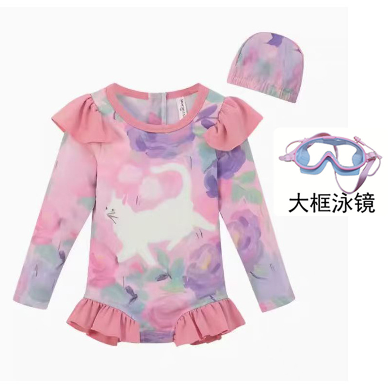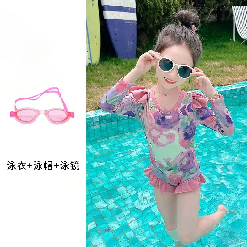 • 6041#유성 꽃무늬 수영복 + 수영모 + 대형 프레임 수영 고글