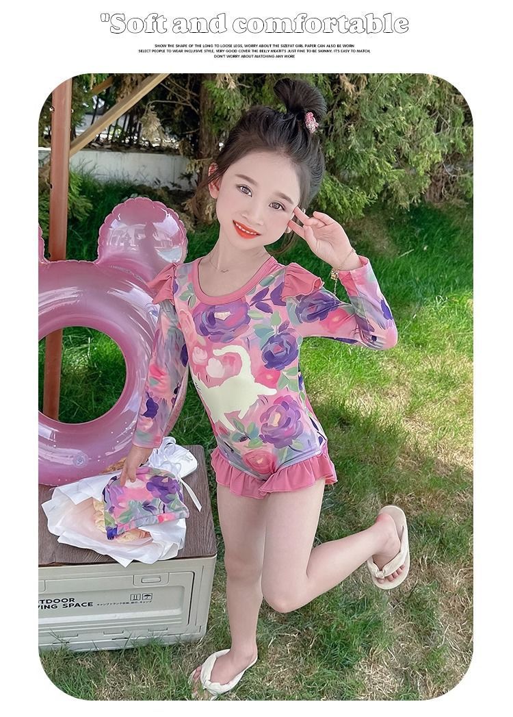 여아 원피스 수영복 여름옷 2026년 신상 스타일리쉬한 아동용 긴팔 자외선 차단 비치 수영복 어린 소녀 수영복스토어 가기