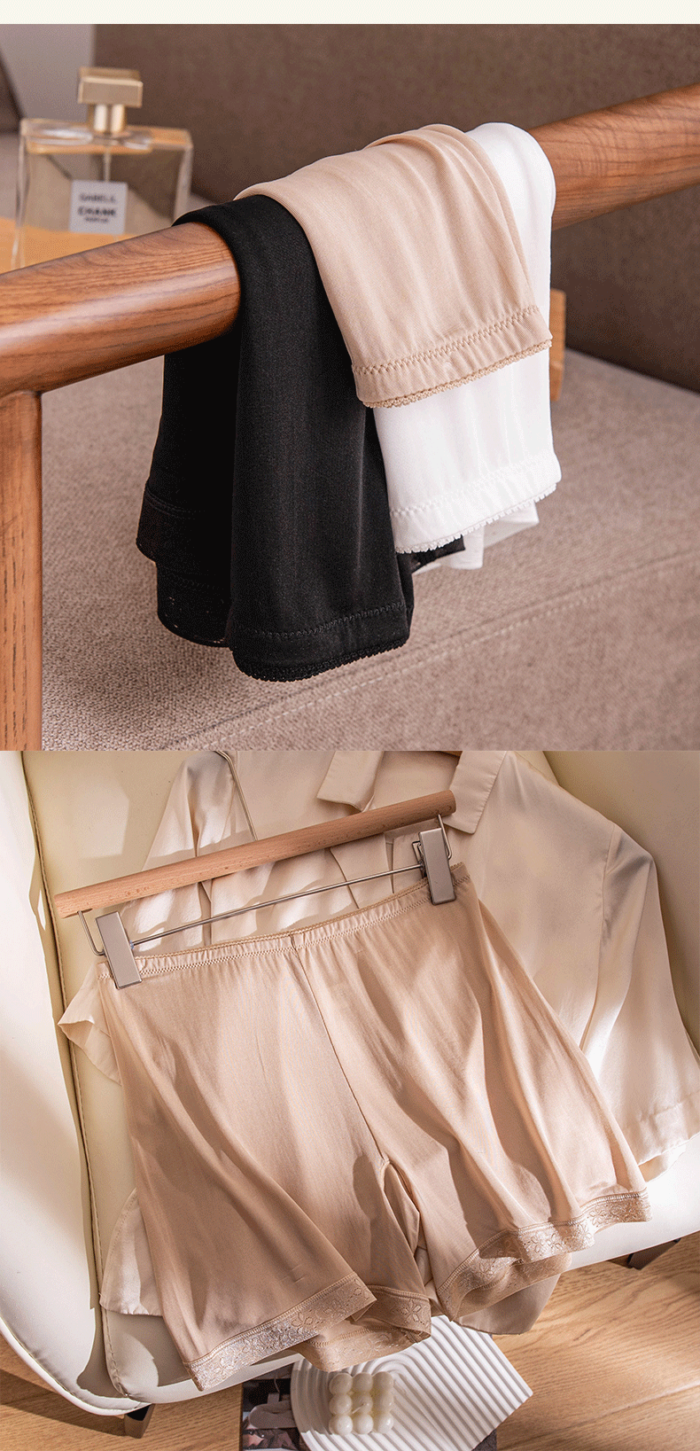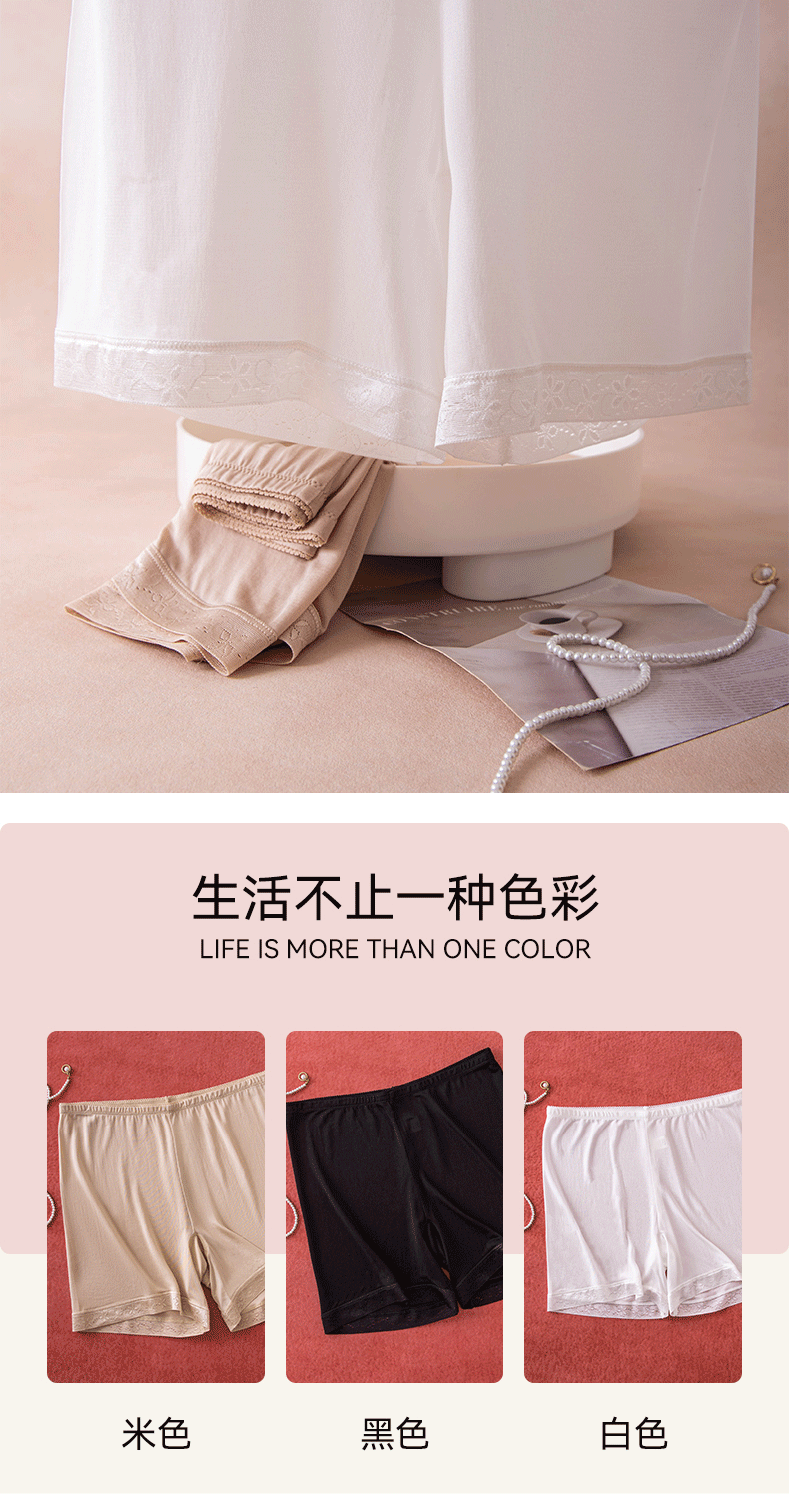 멀버리 실크 항균 레깅스 미드 웨이스트 스커트 노출 방지 3점 레깅스 실크 안전 바지 파자마