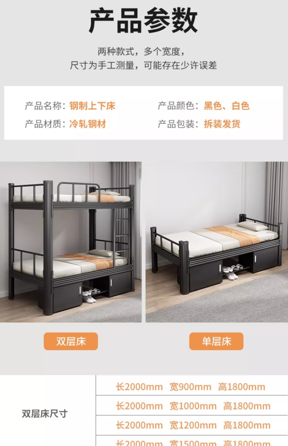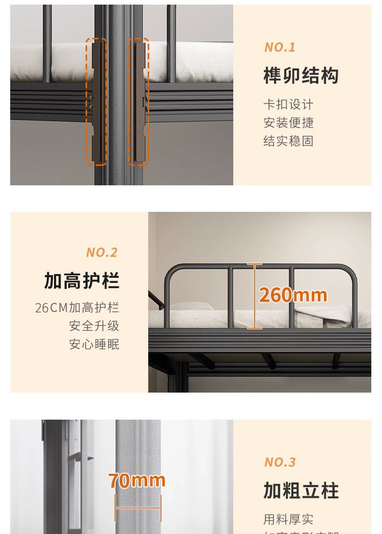 상하 이층 침대 철제 프레임 철제 침대 학생 직원 기숙사 두꺼운 더블 침실 높고 낮은 침대