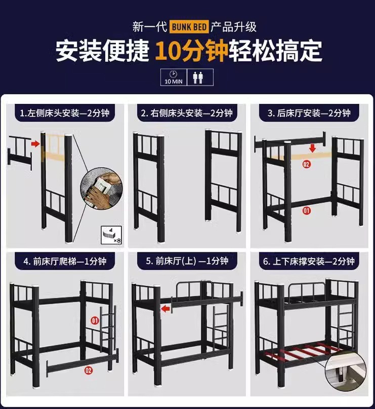 상하 이층 침대 철제 프레임 철제 침대 학생 직원 기숙사 두꺼운 더블 침실 높고 낮은 침대스토어 가기