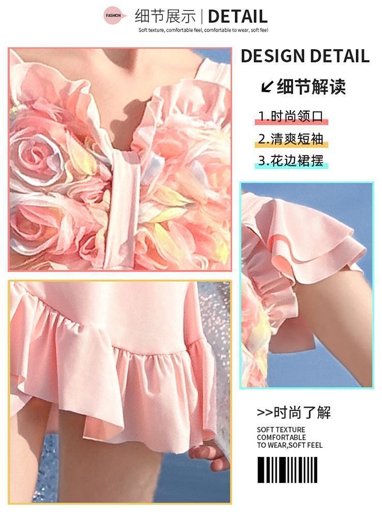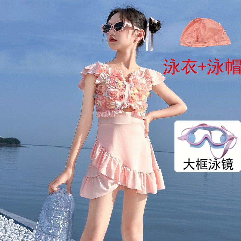 • 6036#상큼한 플라워 핑크 + 수영모 + 소형 수영 고글
