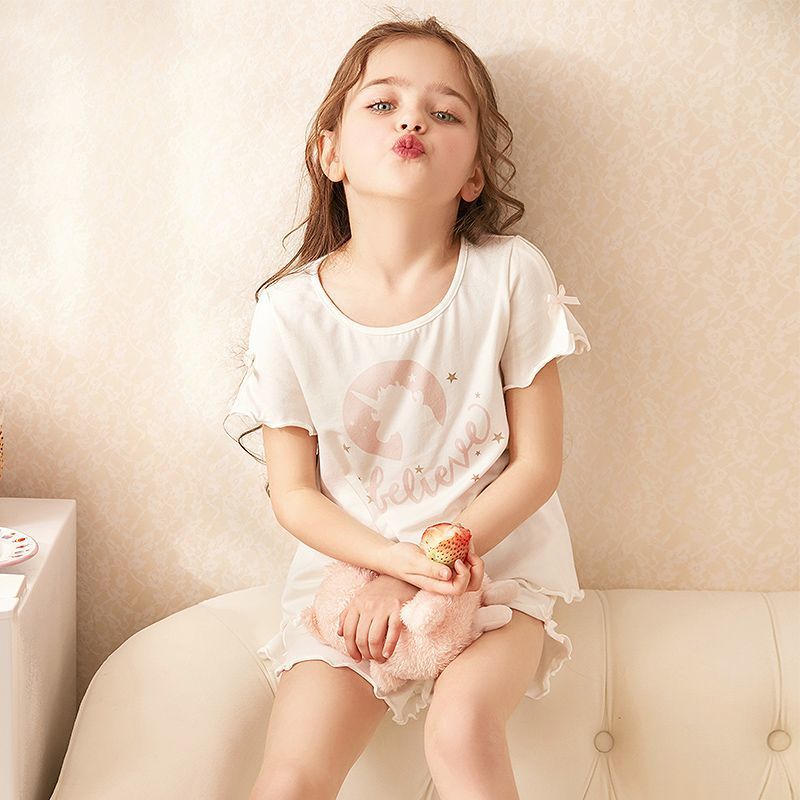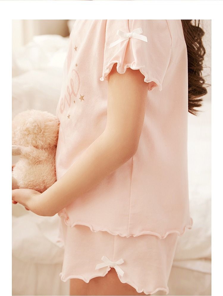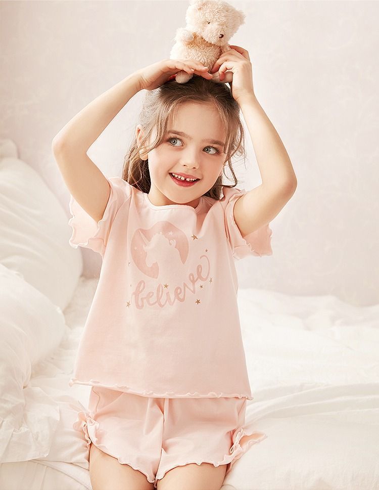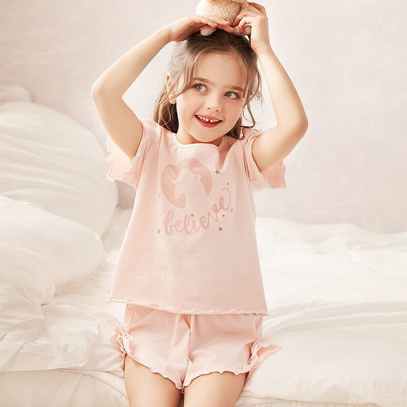 여자 잠옷 여름 면화 얇은 2025 새로운 어린이 반팔 양복 어린 소녀 공주 아기 가정 의류스토어 가기