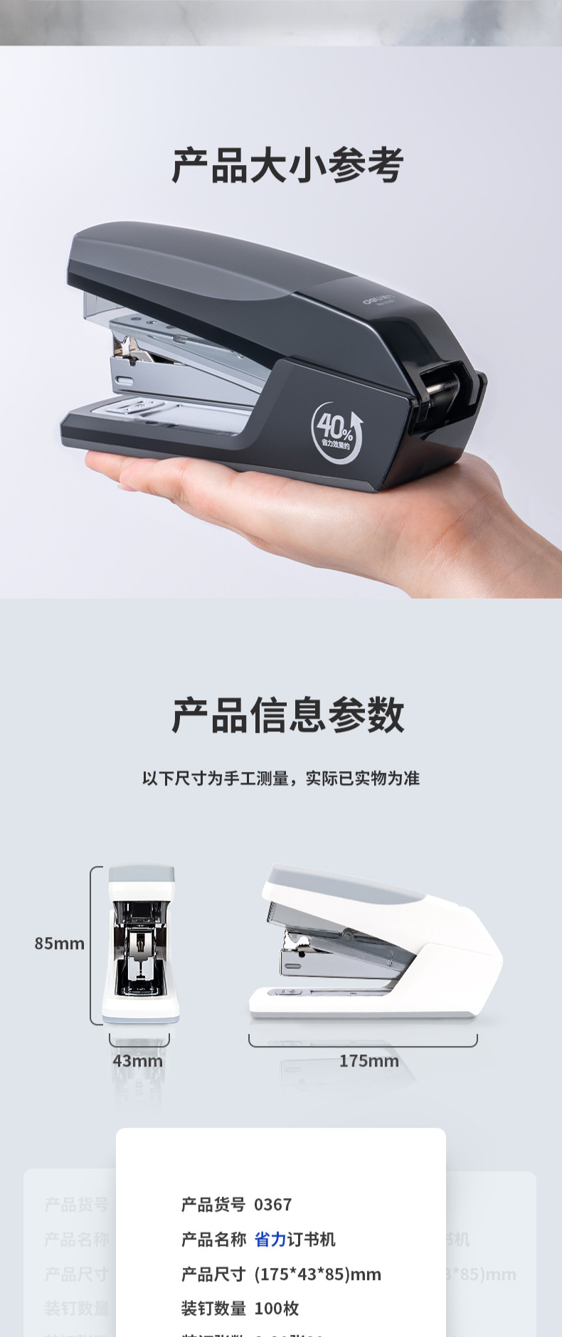 델리 0367 노동 절약형 스테이플러 2색 옵션 스테이플러 휴대용 스테이플러 스테이플러 혼합 색상스토어 가기