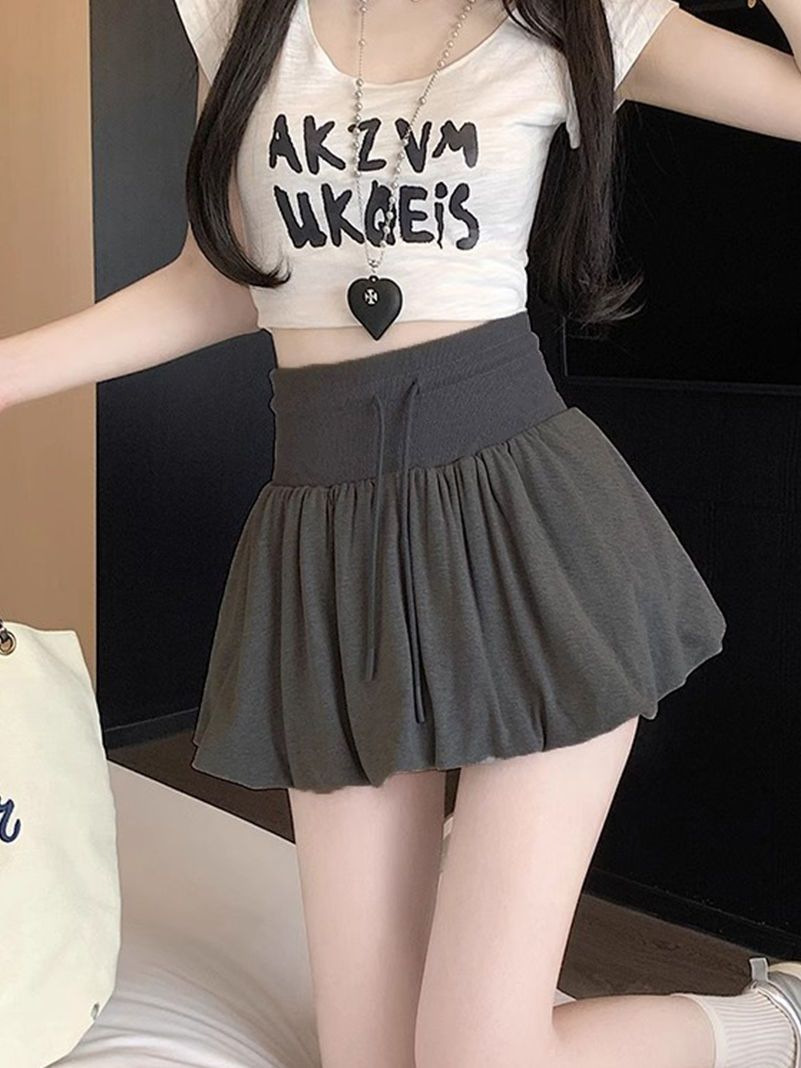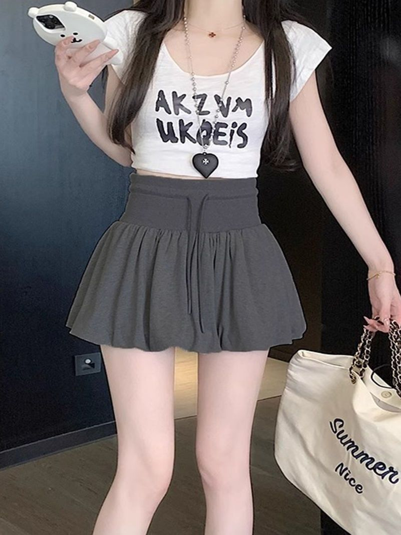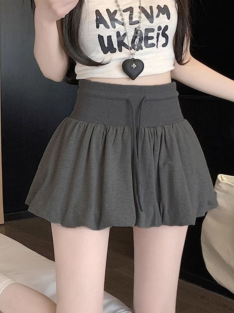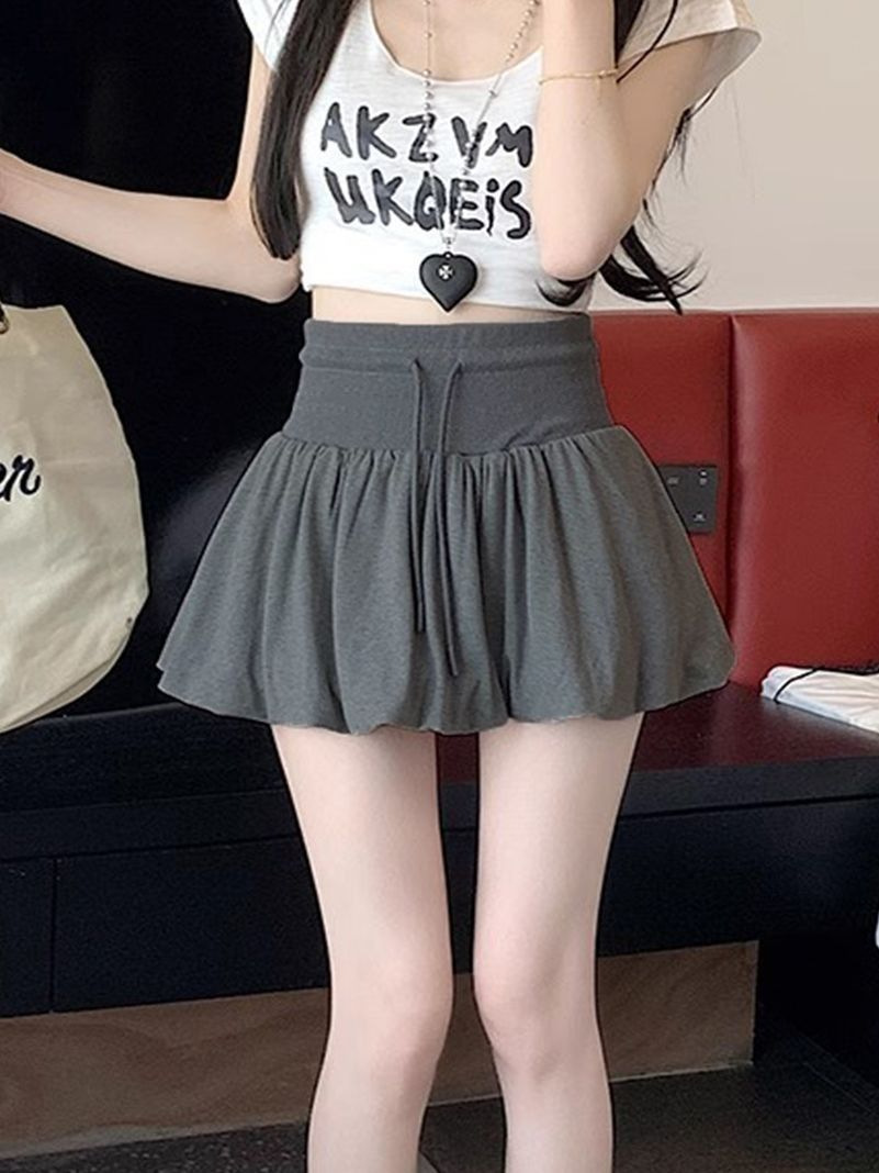 미국 스타일 높은 허리 스포츠 꽃 번 스커트 치마 여자 여름 안티 워킹 그레이 테니스 가드 스커트 푹신한 미니 스커트 바지