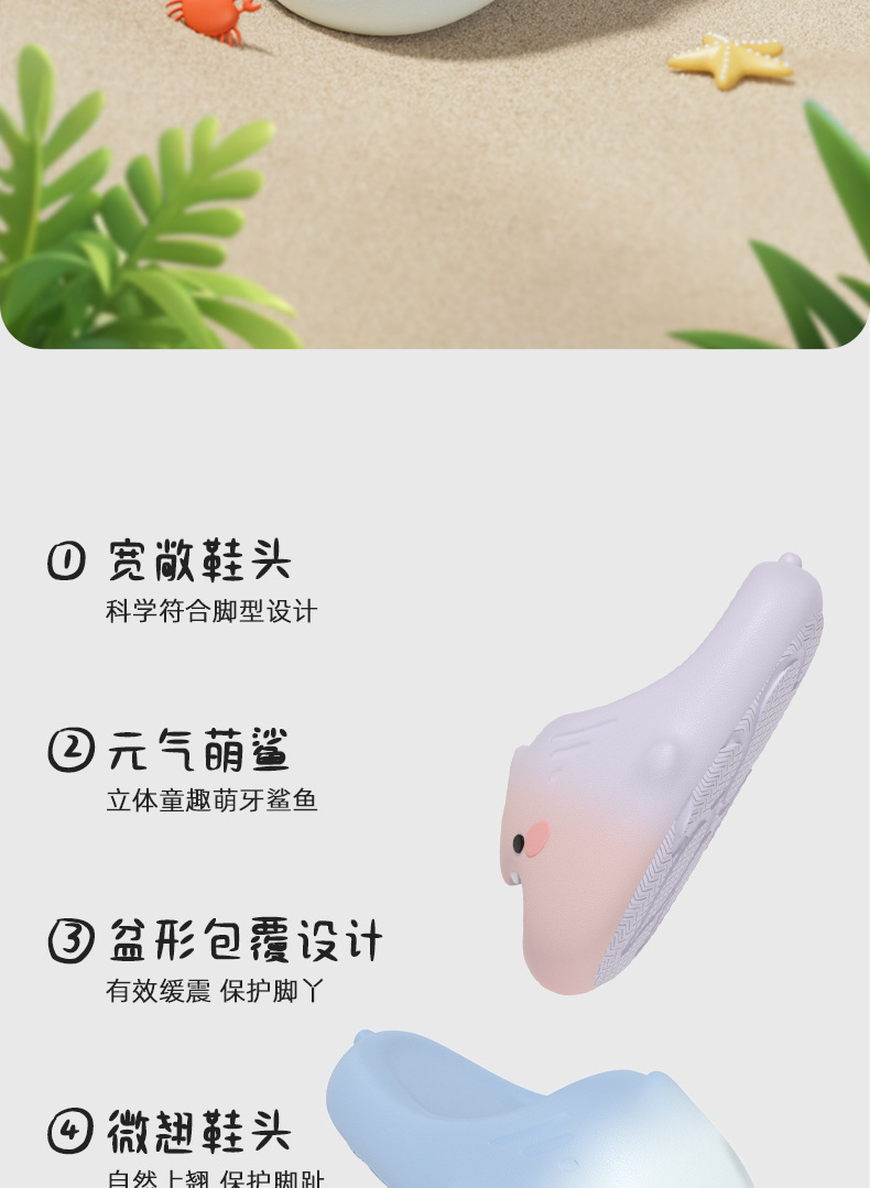 귀여운 만화 Macey 상어 어린이 슬리퍼 2025 여름 새로운 소년과 소녀 실내 홈 아기 샌들