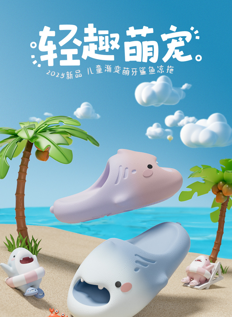 귀여운 만화 Macey 상어 어린이 슬리퍼 2025 여름 새로운 소년과 소녀 실내 홈 아기 샌들스토어 가기