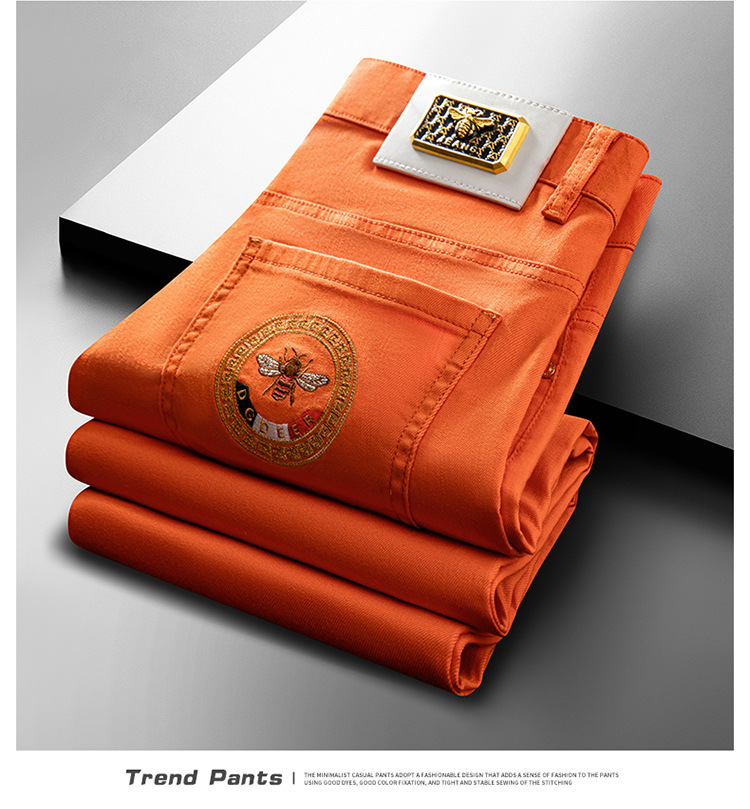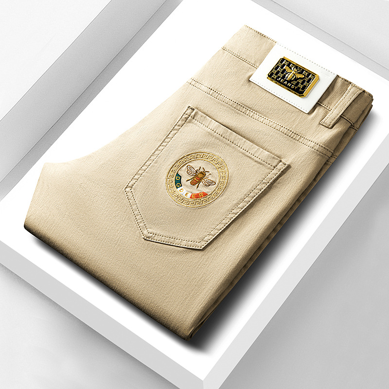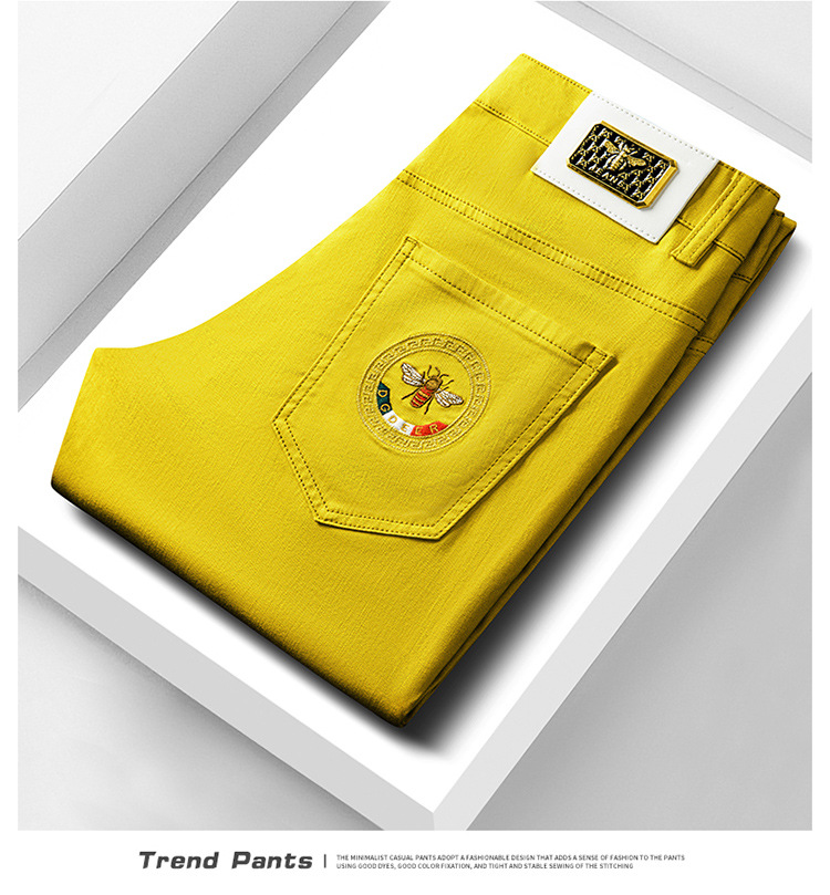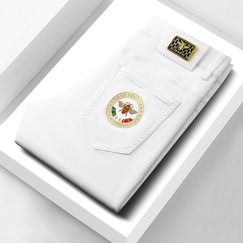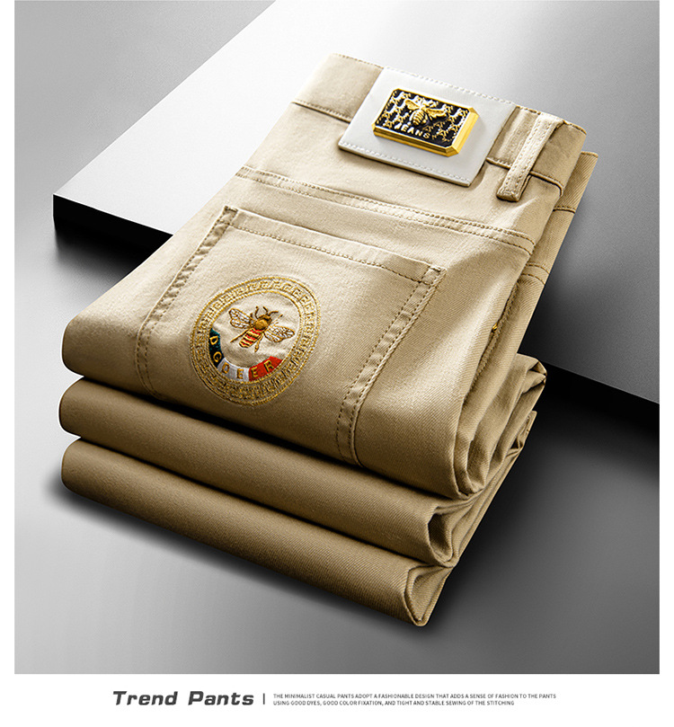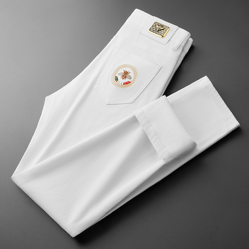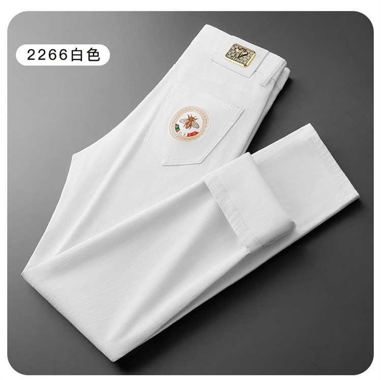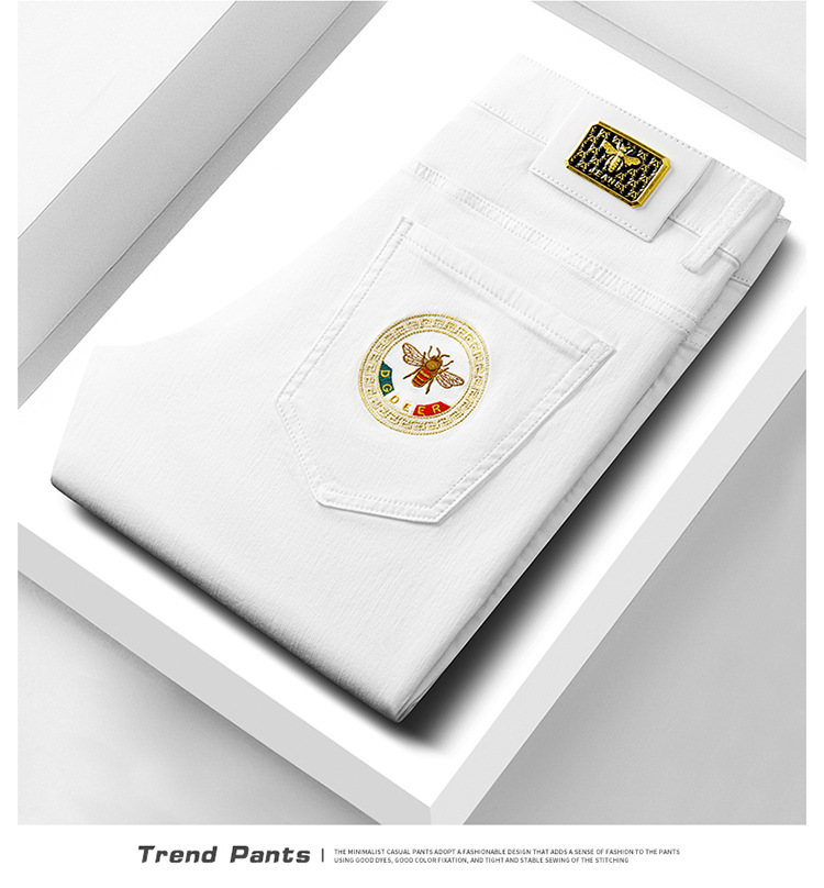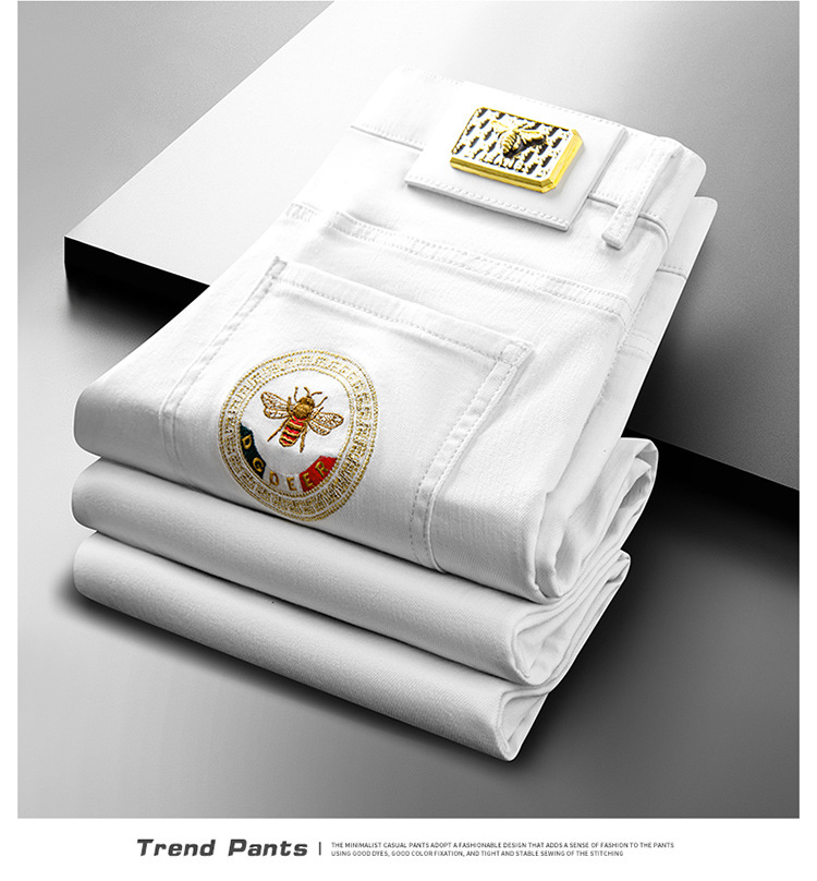 【유럽 스타일】고급 유럽 제품 데님 팬츠 사계절용 화이트 남성 바지 봄 가을 패션 자수 남성 캐주얼 바지