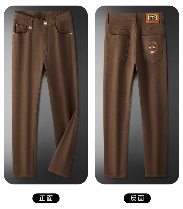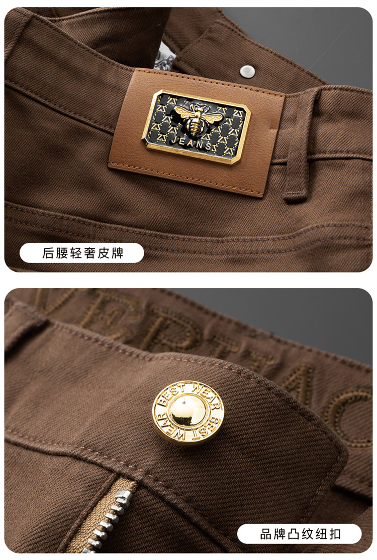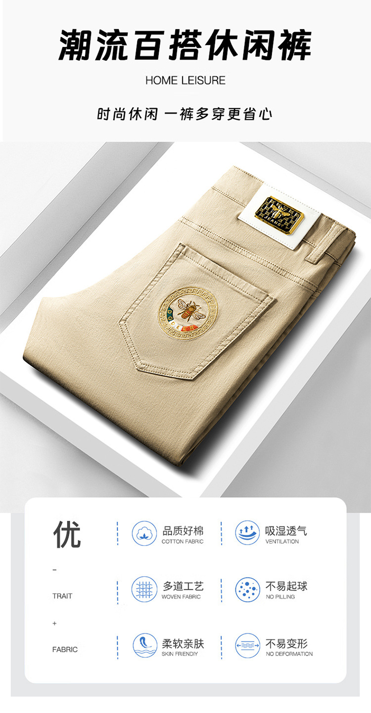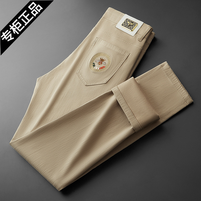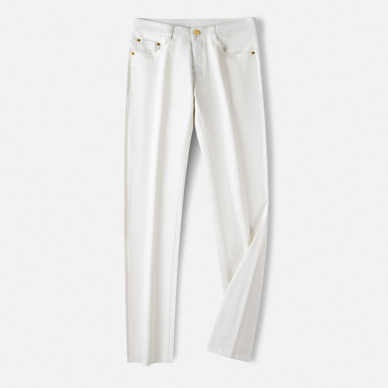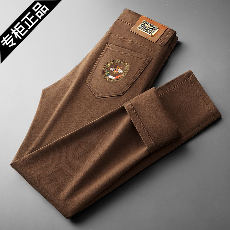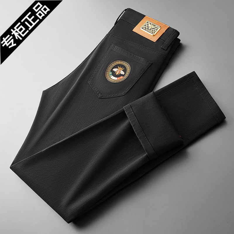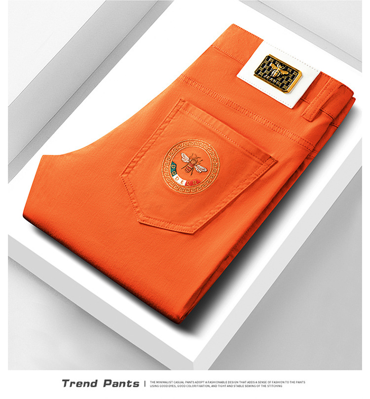【유럽 스타일】고급 유럽 제품 데님 팬츠 사계절용 화이트 남성 바지 봄 가을 패션 자수 남성 캐주얼 바지