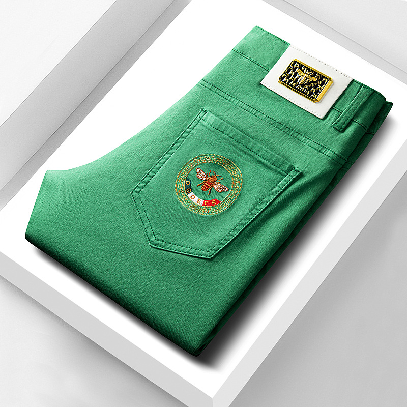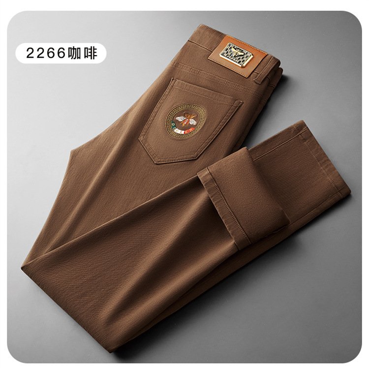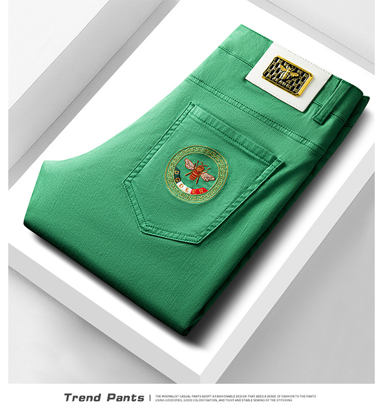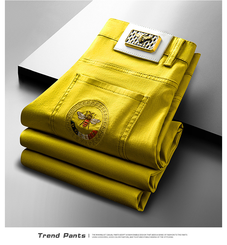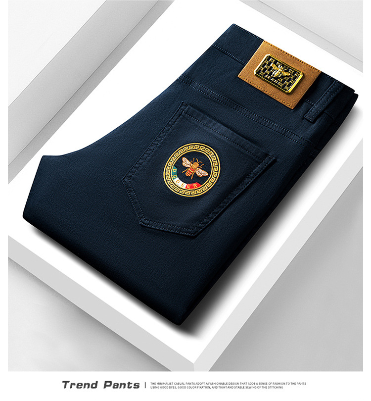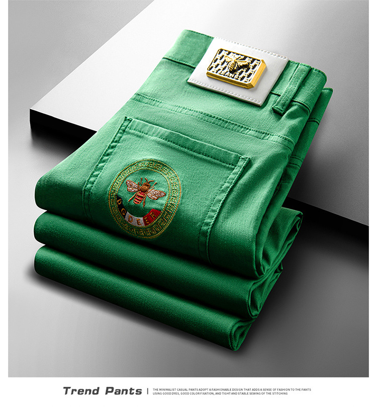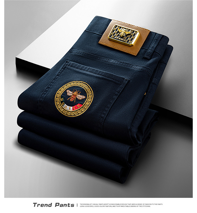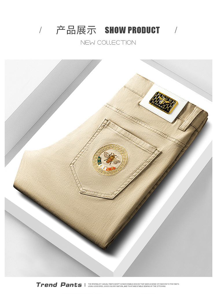 【유럽 스타일】고급 유럽 제품 데님 팬츠 사계절용 화이트 남성 바지 봄 가을 패션 자수 남성 캐주얼 바지스토어 가기