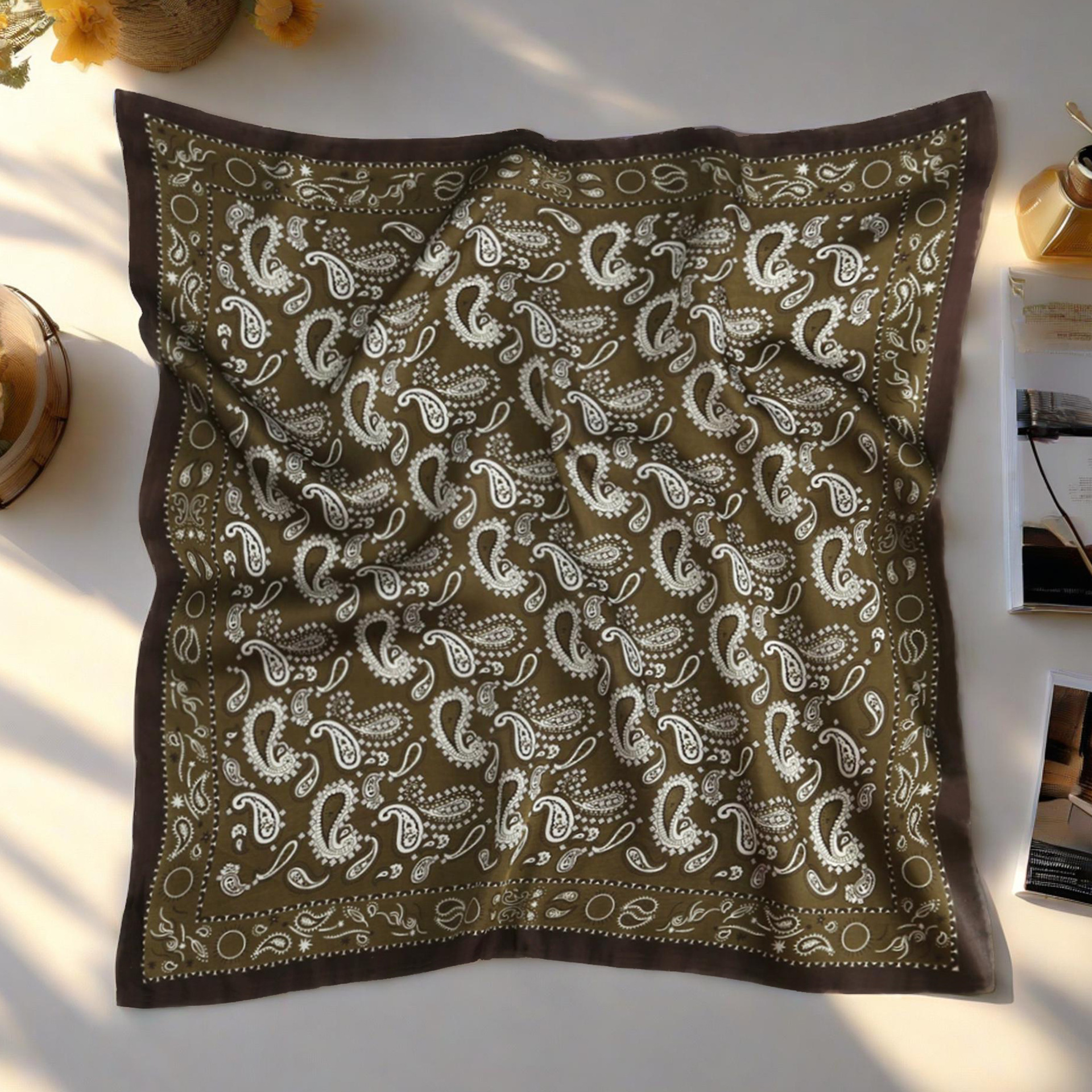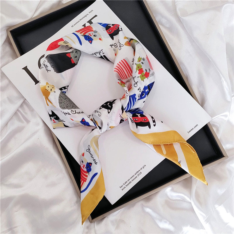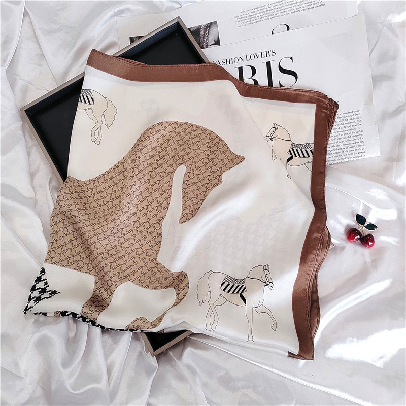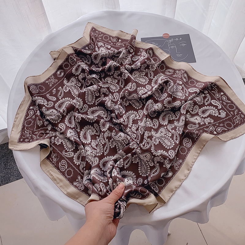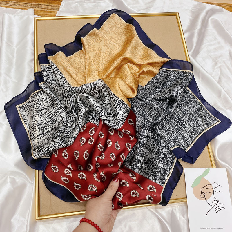 실크 스카프, 작은 사각형 스카프, 여성용 다용도 장식 스카프, 의류 매장 가을 의류, 셔츠, 캐슈 스카프, 재고 있음