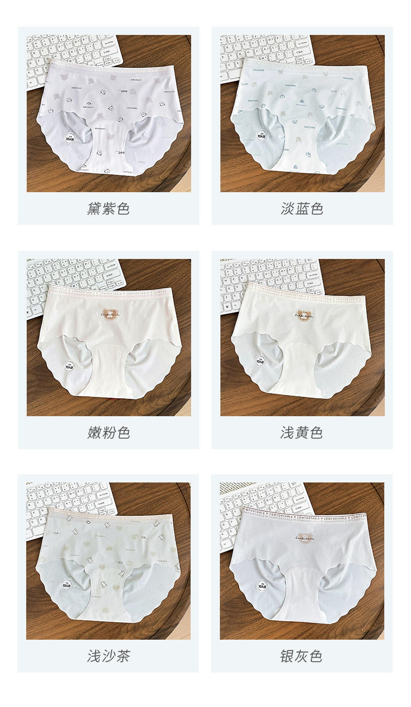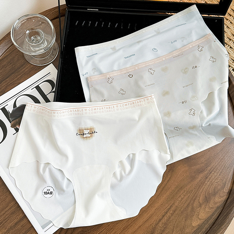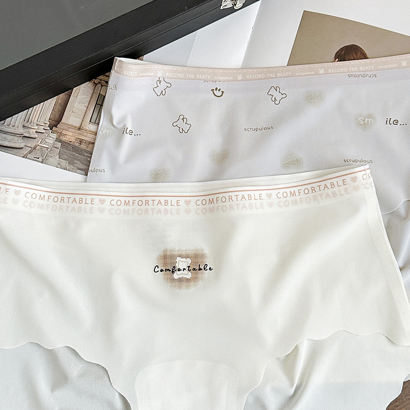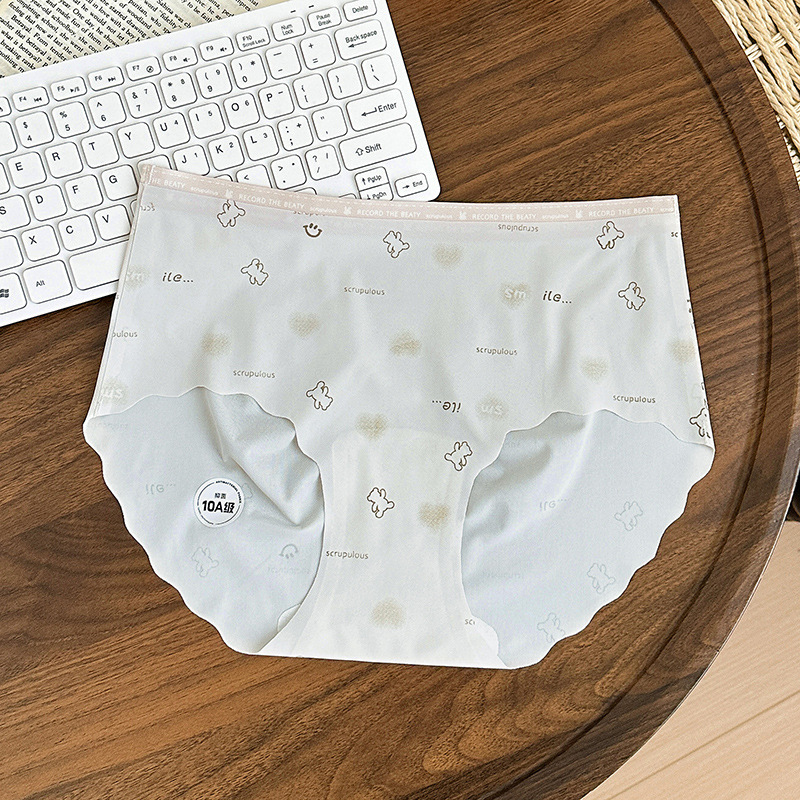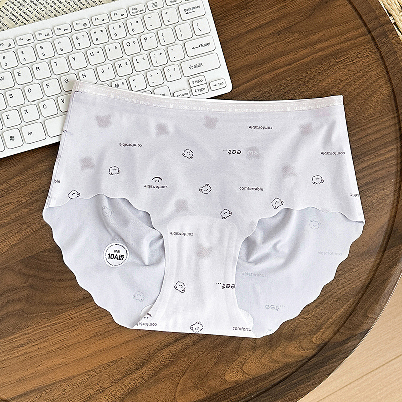 5274 # 10A 항균 아이스 실크 tracless 속옷 여성의 편안한 통기성 귀여운 인쇄 소녀의 웨이브 엣지 여행스토어 가기