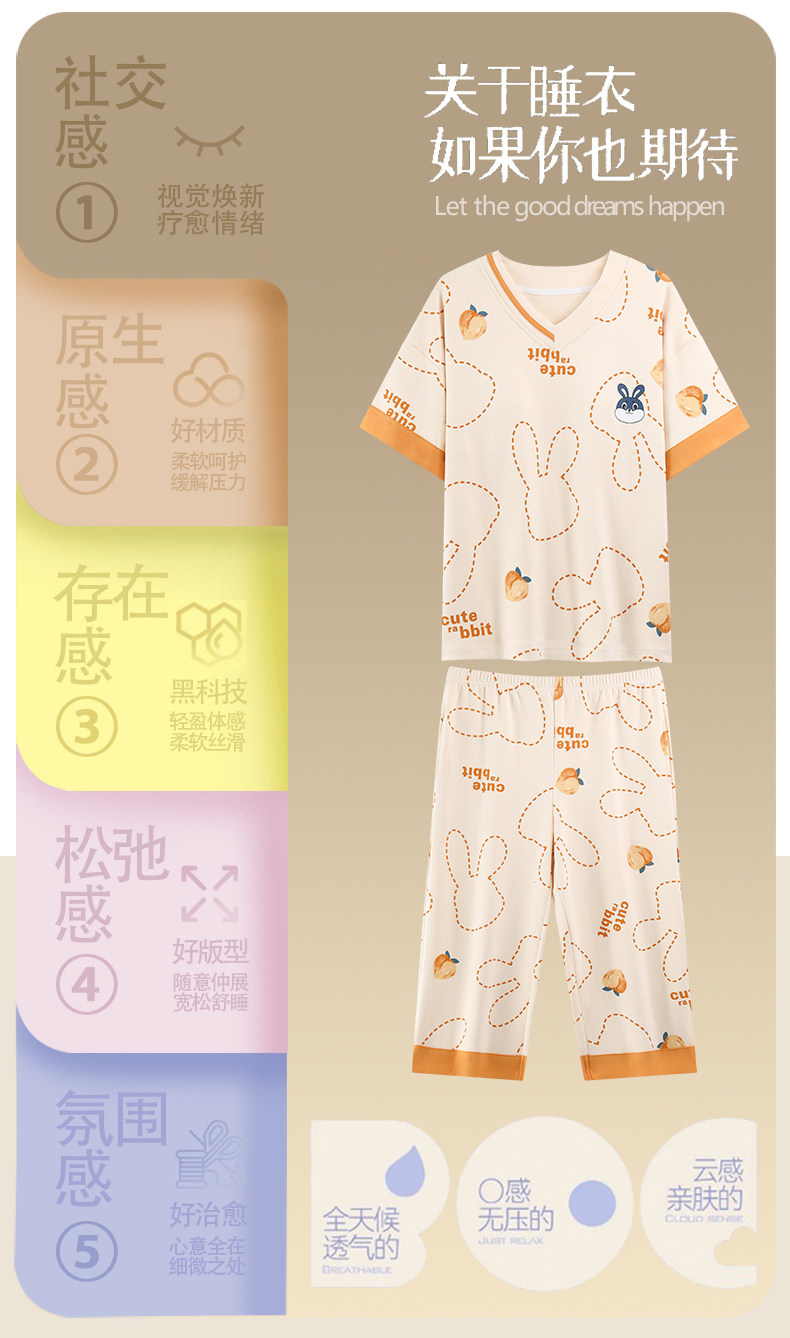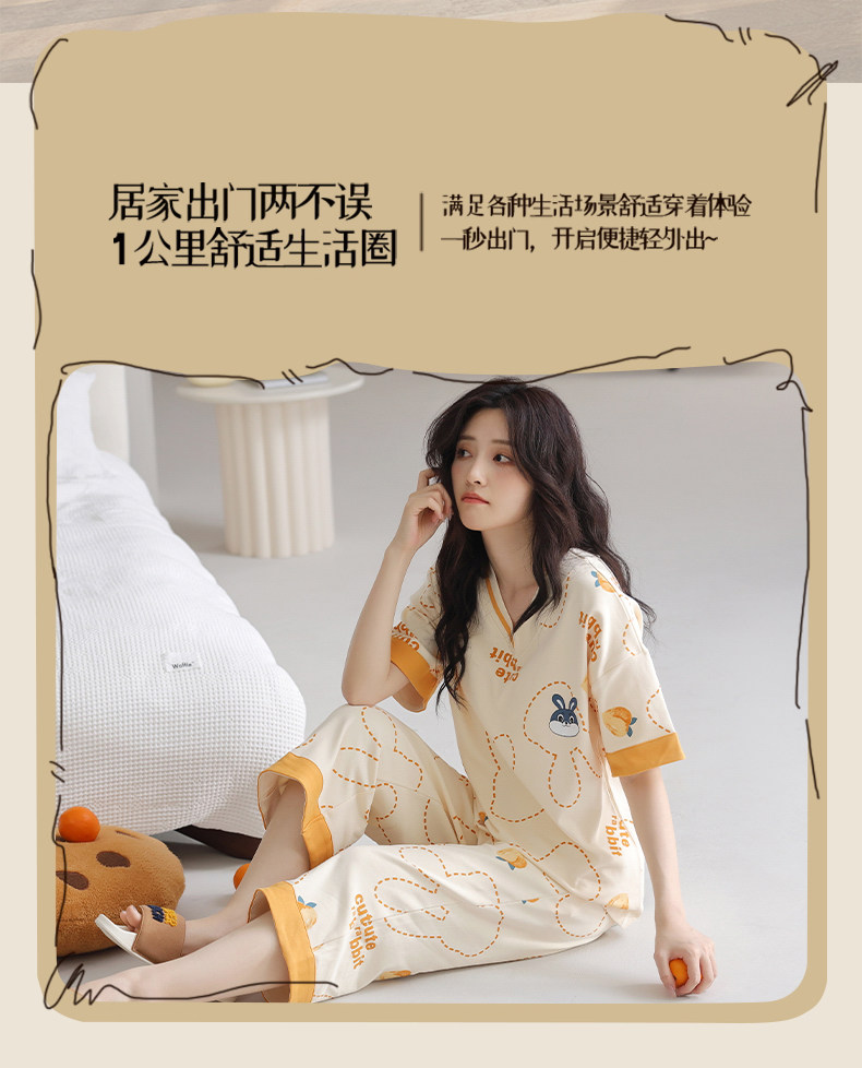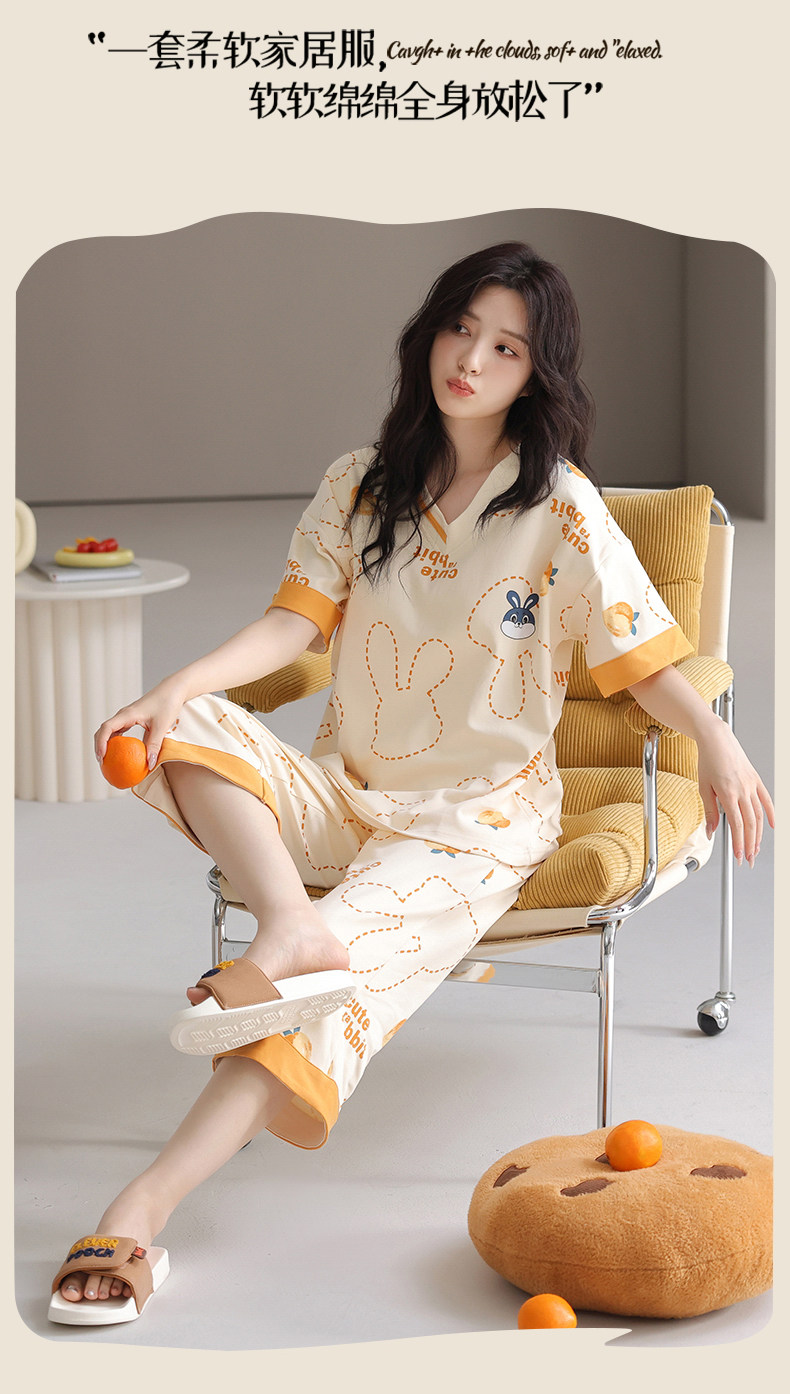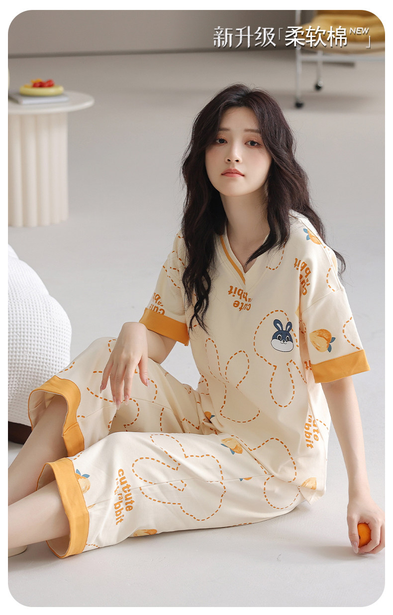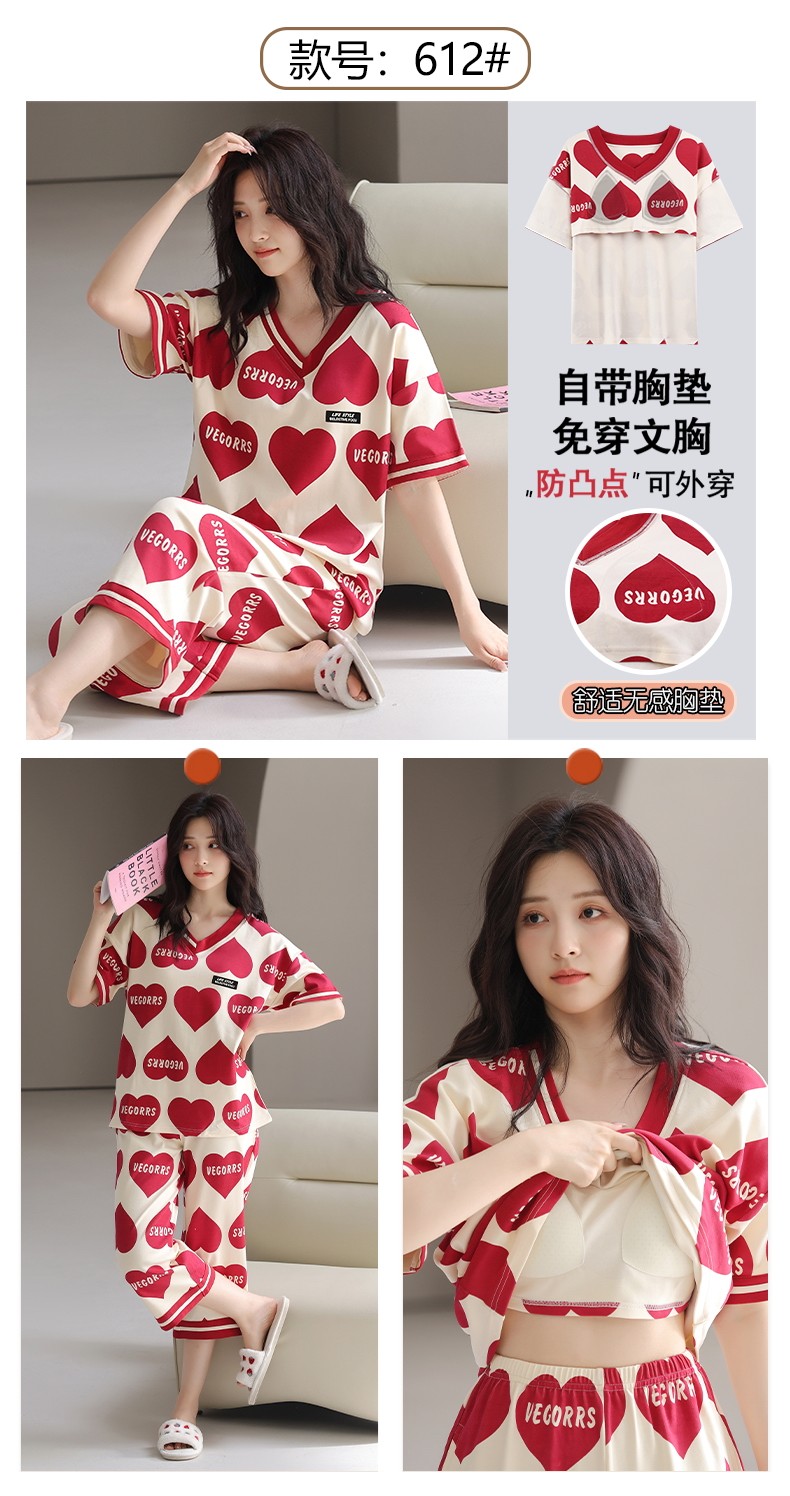 잠옷 여성의 여름 새로운 반팔 카프리 바지 가슴 패드 귀여운 만화 학생 느슨한 플러스 사이즈 홈 의류 세트스토어 가기