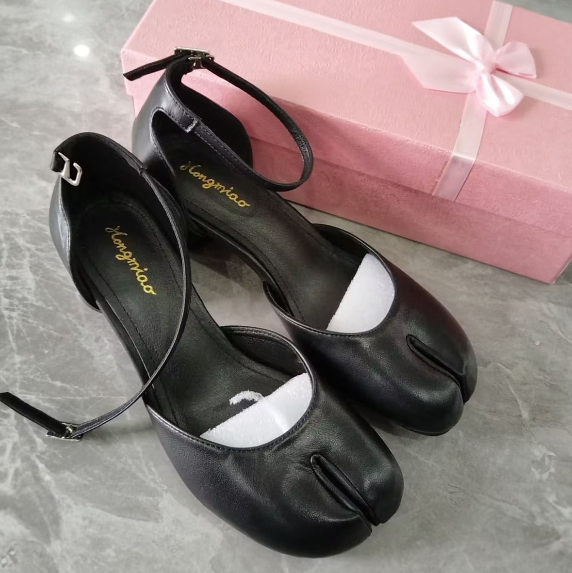 두꺼운 힐 빈티지 주름 올 매치 서브 토 발가락 샌들 여자 2025 년 여름 새 스타일 돼지의 후프 말굽 얕은 입 신발 여성