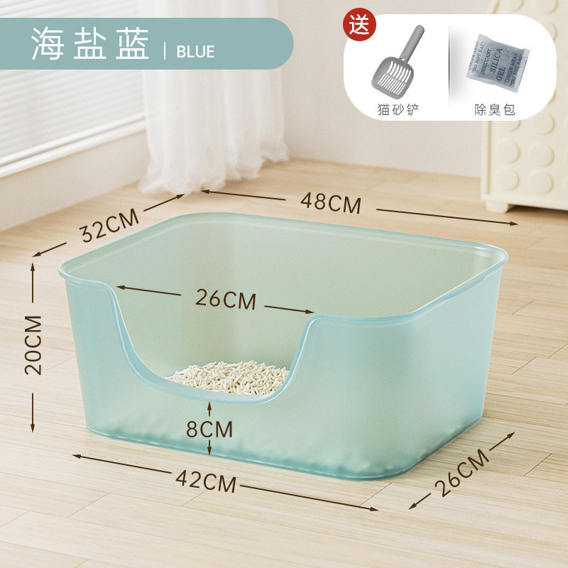 • 중간 바다 소금 파란색 투명 젖빛 젤리 고양이 쓰레기통 - 고양이 쓰레기 삽 + 고양이 쓰레기 매트★⚑