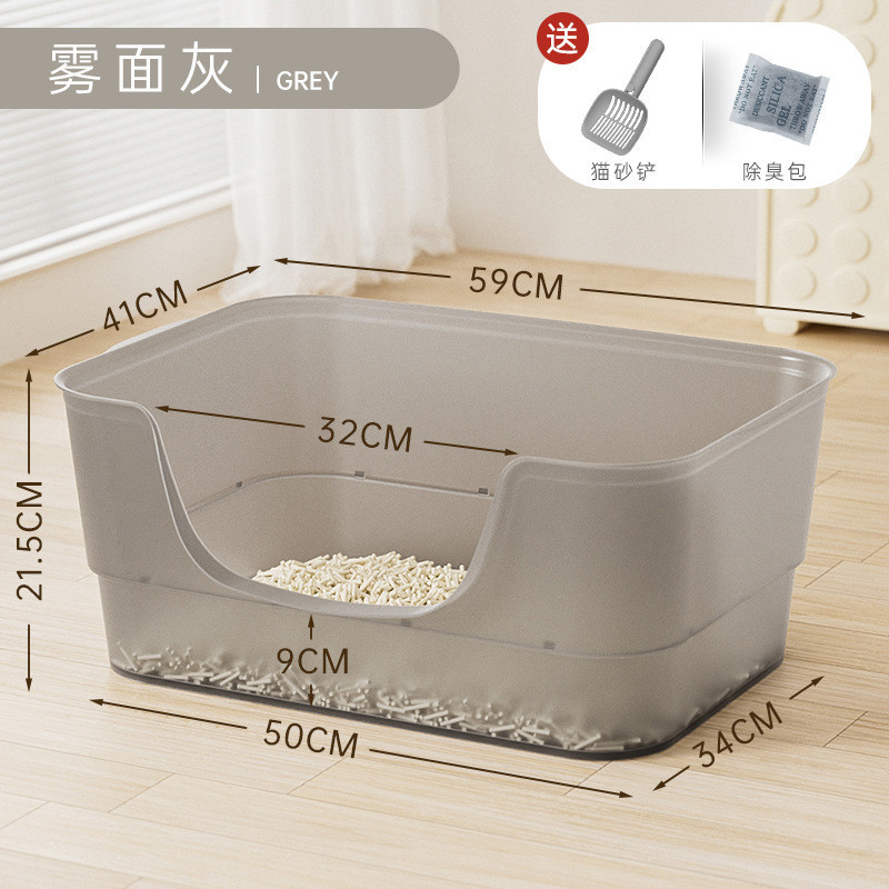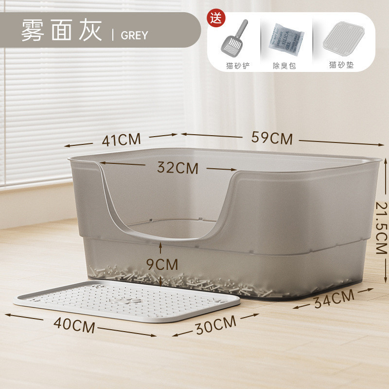 • 대형 무광택 회색 투명 젤리 고양이 화장실 - 고양이 쓰레기 국자 + 고양이 쓰레기 매트★⚑