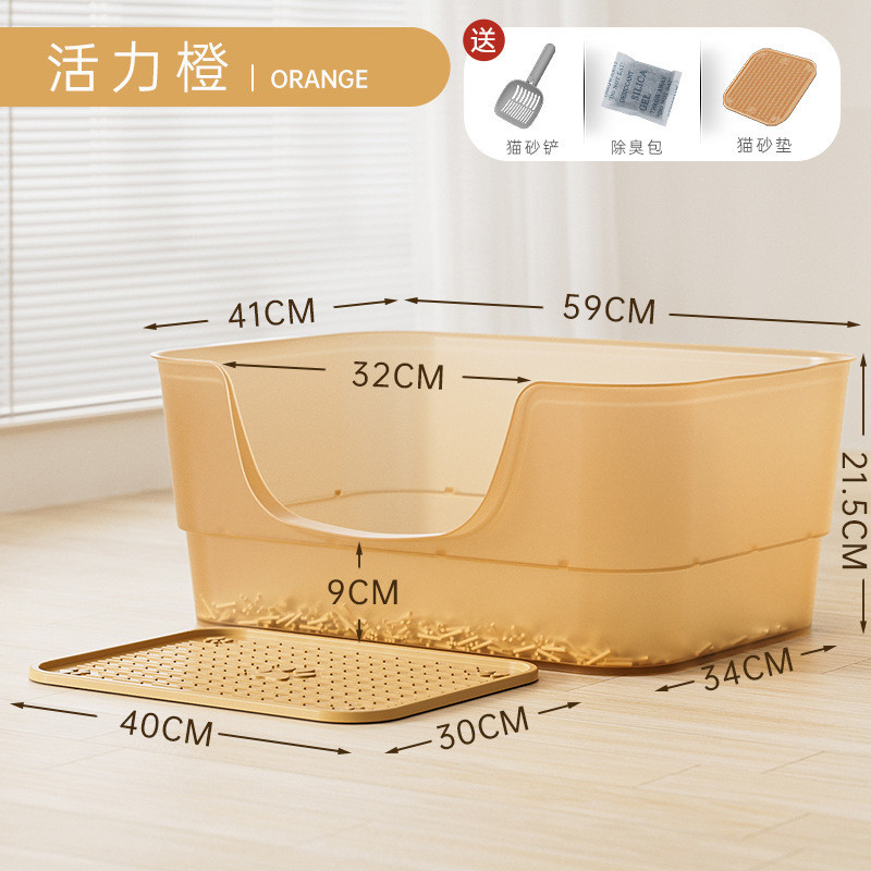 • 대형 생생한 오렌지색 투명 반투명 젤리 고양이 화장실 - 고양이 쓰레기 국자 + 고양이 쓰레기 매트★⚑