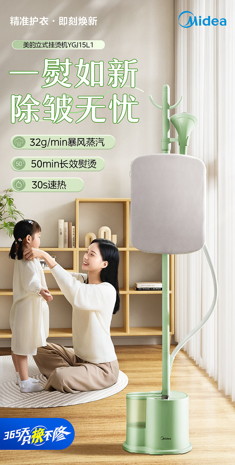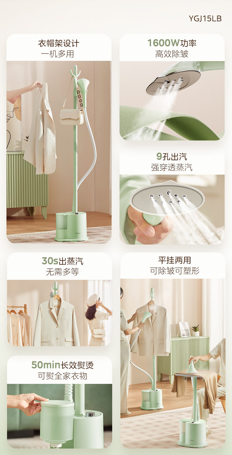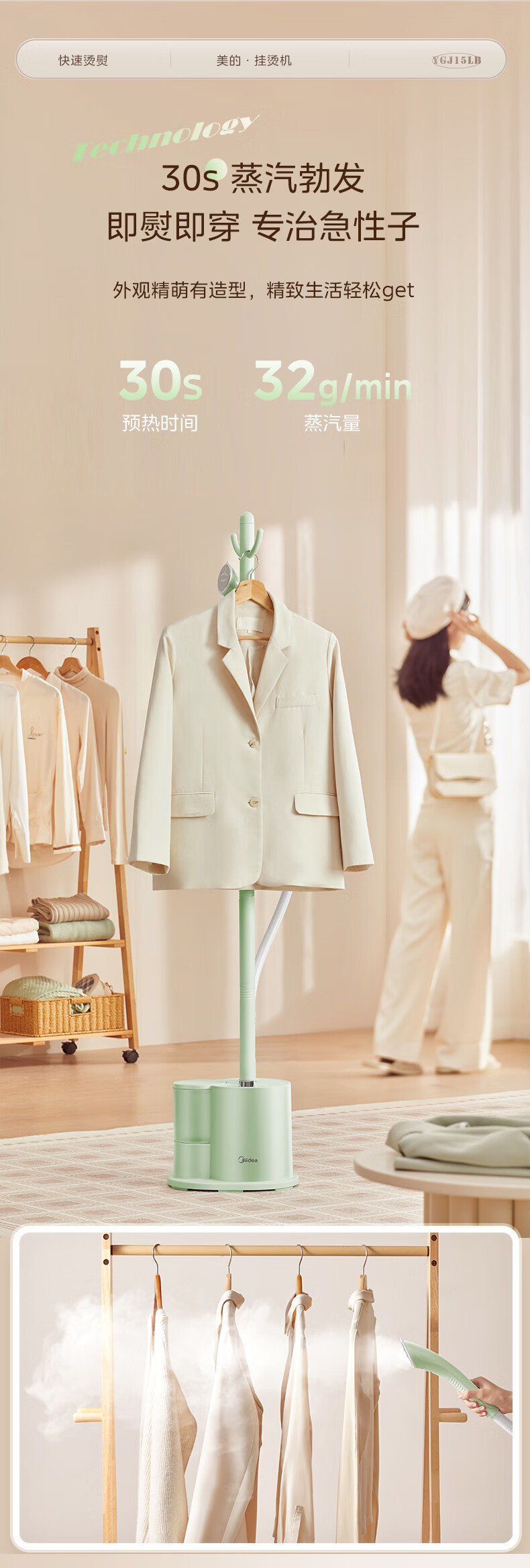 Midea 의류 다림질 기계 스팀 전기 다리미 휴대용 스팀 수직 의류 다림질 기계 다림질 기계 YGJ15LB스토어 가기